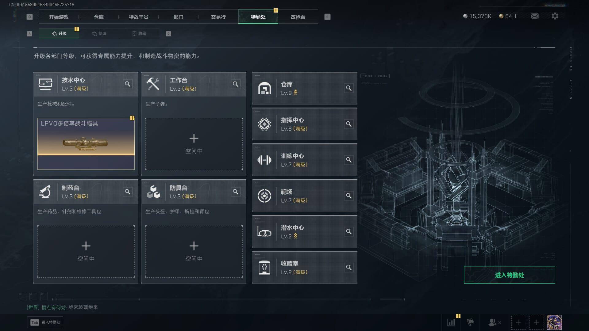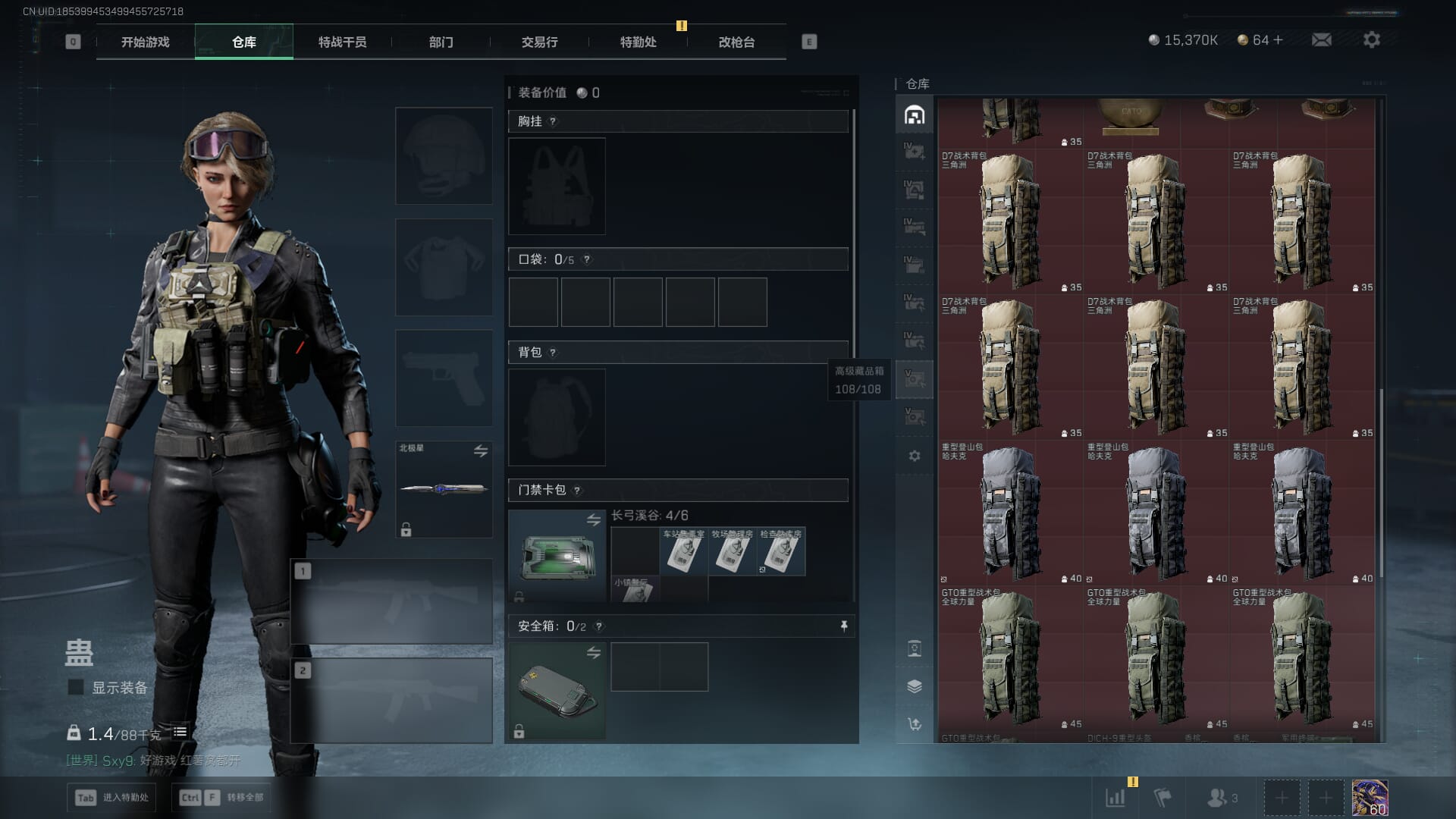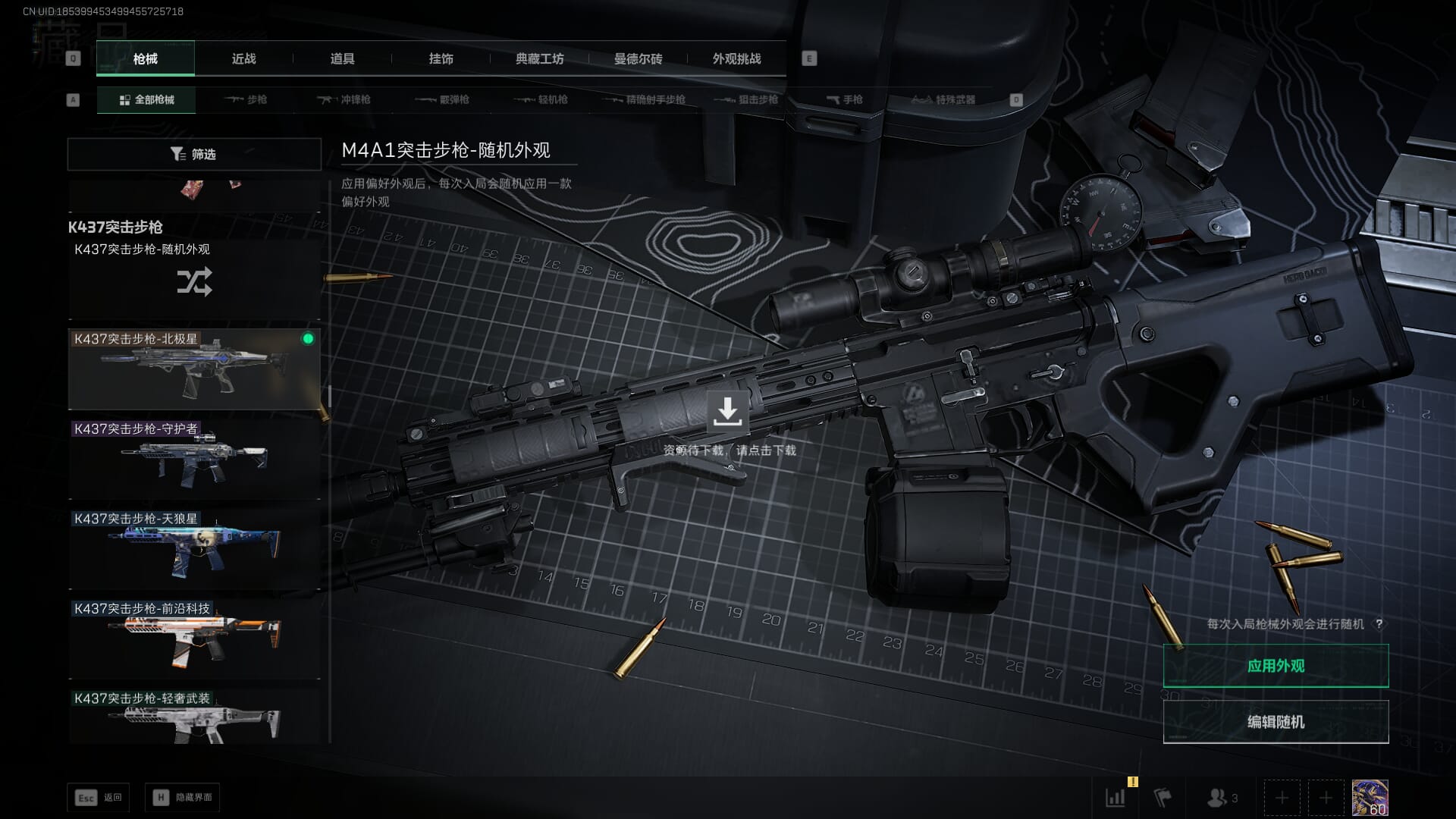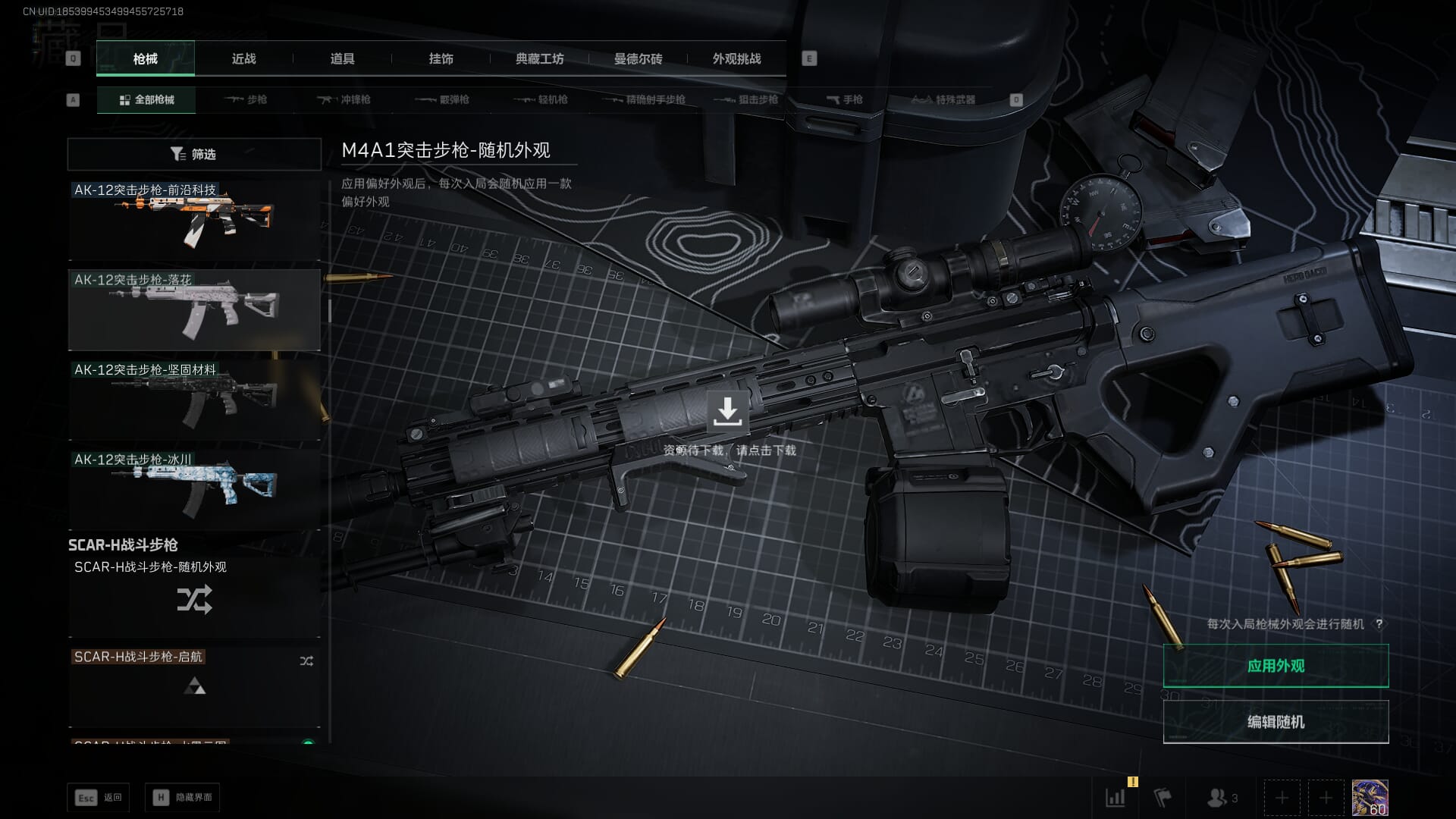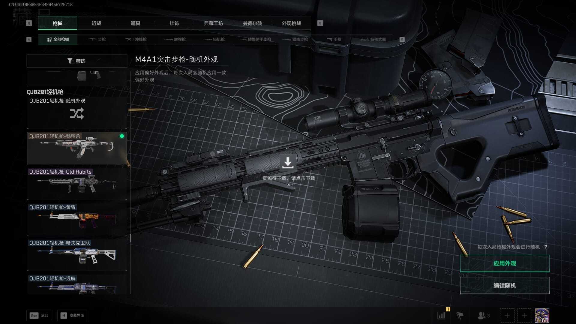总资产:62.2M,哈夫币:84W,武器皮肤:5,黑鹰_,战场60级:列兵,【安全箱】基础安全箱;【特勤处等级】仓库LV.5,靶场LV.4,训练中心LV.4;【干员皮肤】骇爪维什戴尔,红狼电锯惊魂;【近战武器】近战武器-黑鹰;【步枪皮肤】M4A1突击步枪-阿米娅,SCAR-H战斗步枪-启航,KC17突击步枪-电锯惊魂;【狙击步枪皮肤】R93狙击步枪-维什戴尔;