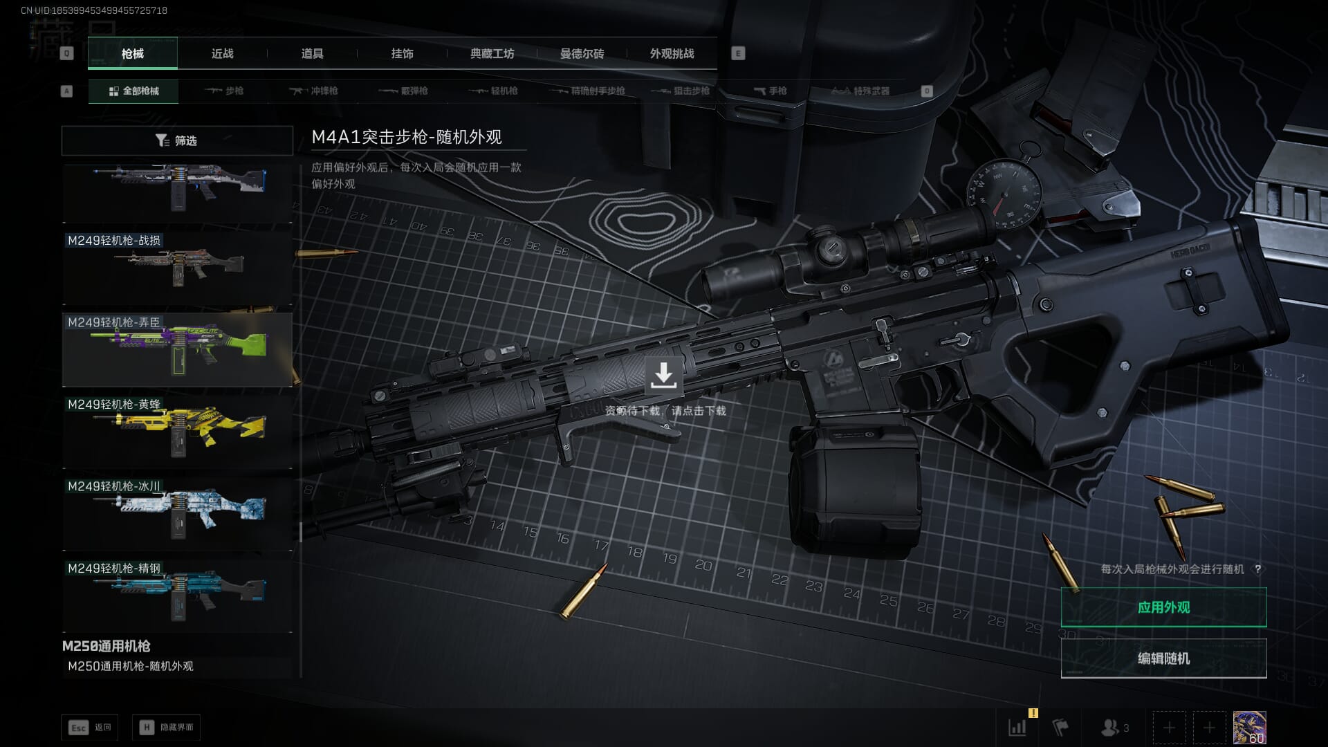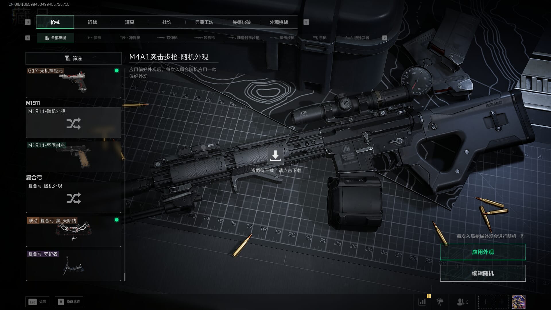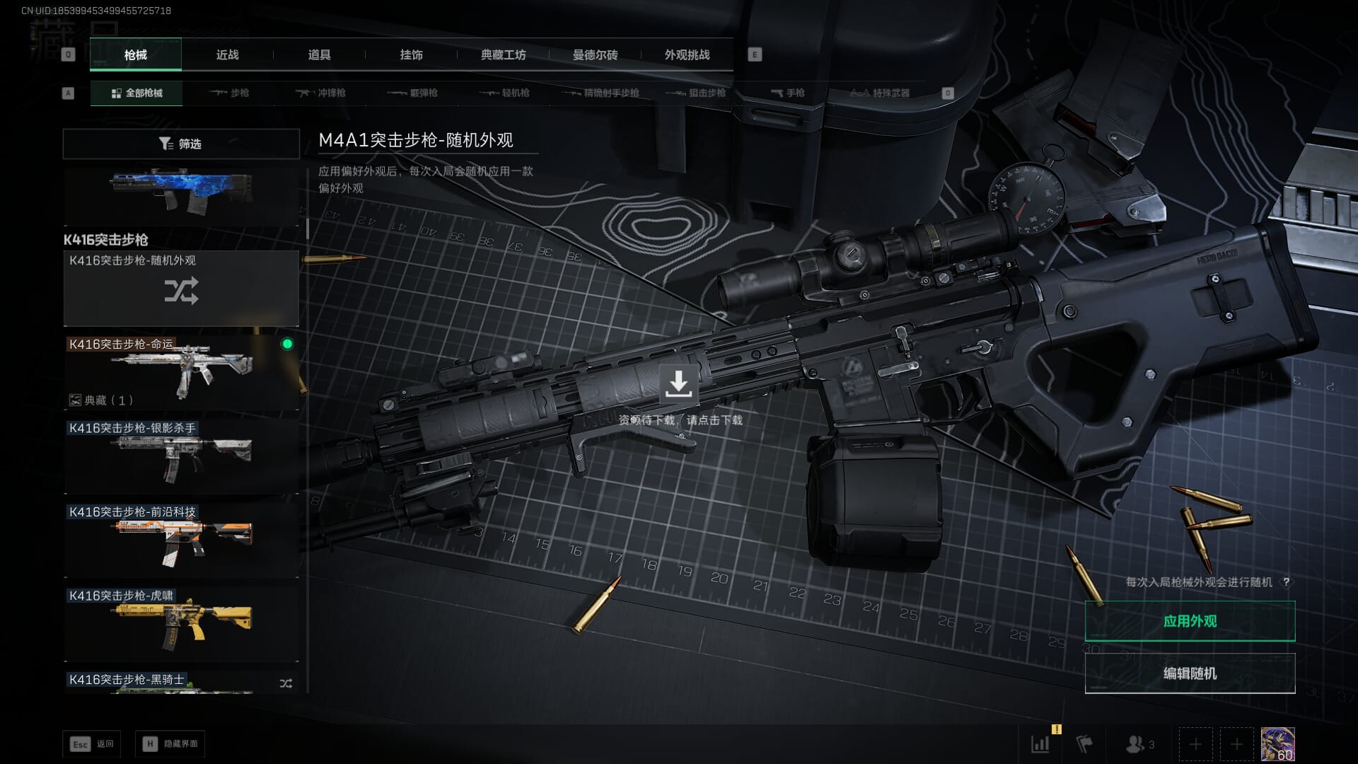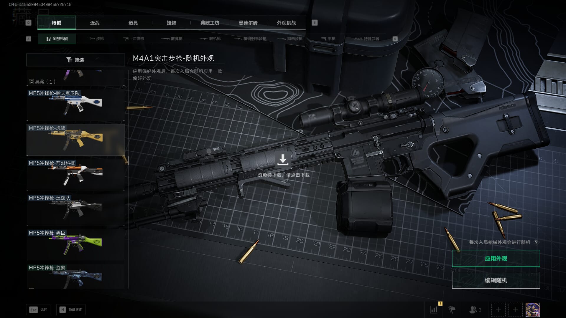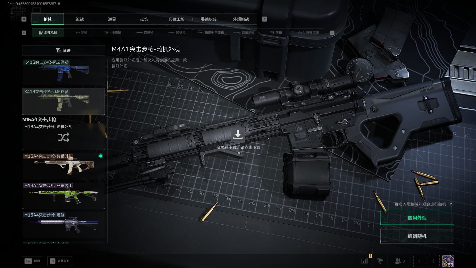 总资产:62.2M,哈夫币:84W,武器皮肤:5,黑鹰_,战场60级:列兵,【安全箱】基础安全箱;【特勤处等级】仓库LV.5,靶场LV.4,训练中心LV.4;【干员皮肤】骇爪维什戴尔,红狼电锯惊魂;【近战武器】近战武器-黑鹰;【步枪皮肤】M4A1突击步枪-阿米娅,SCAR-H战斗步枪-启航,KC17突击步枪-电锯惊魂;【狙击步枪皮肤】R93狙击步枪-维什戴尔;