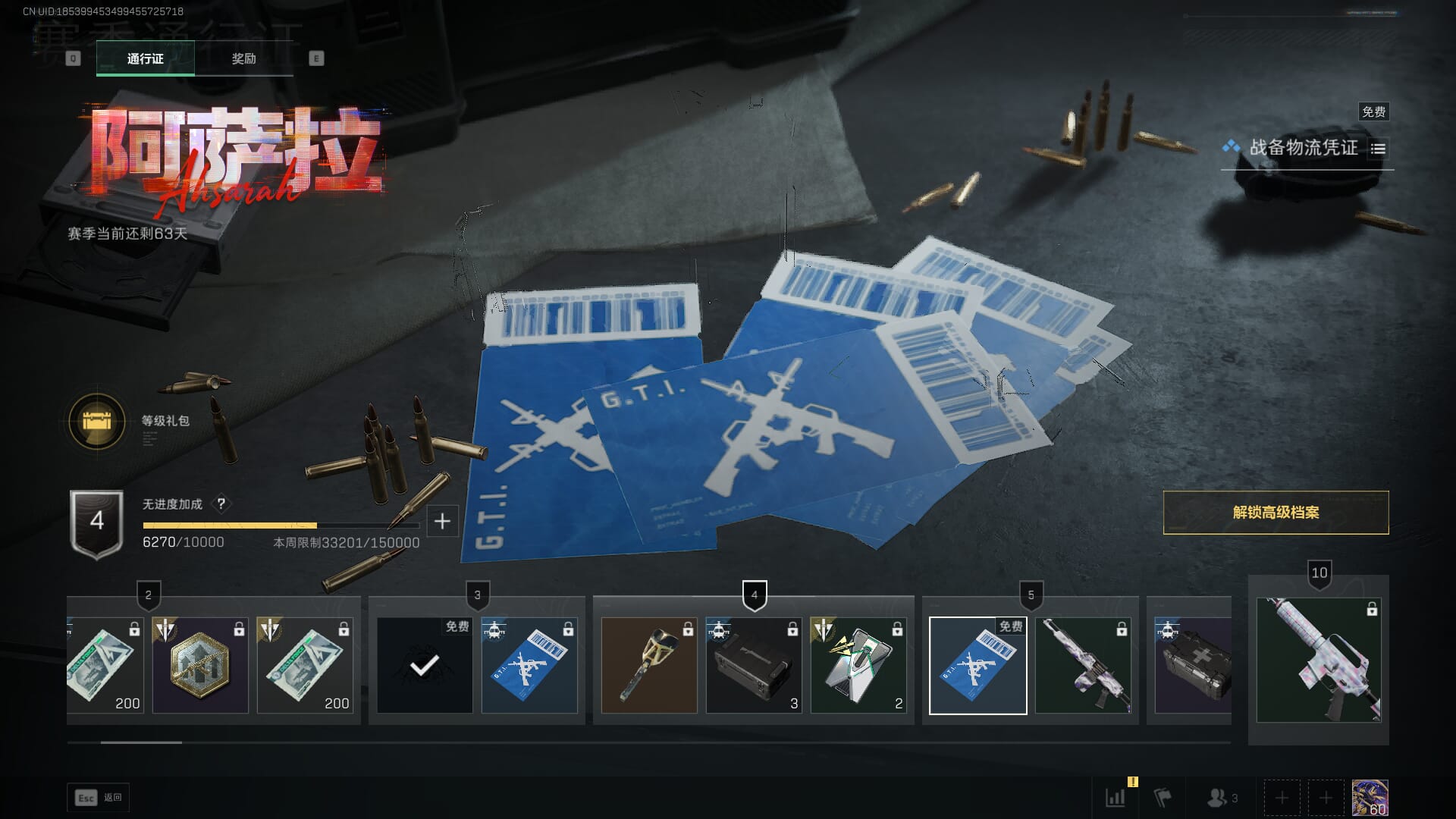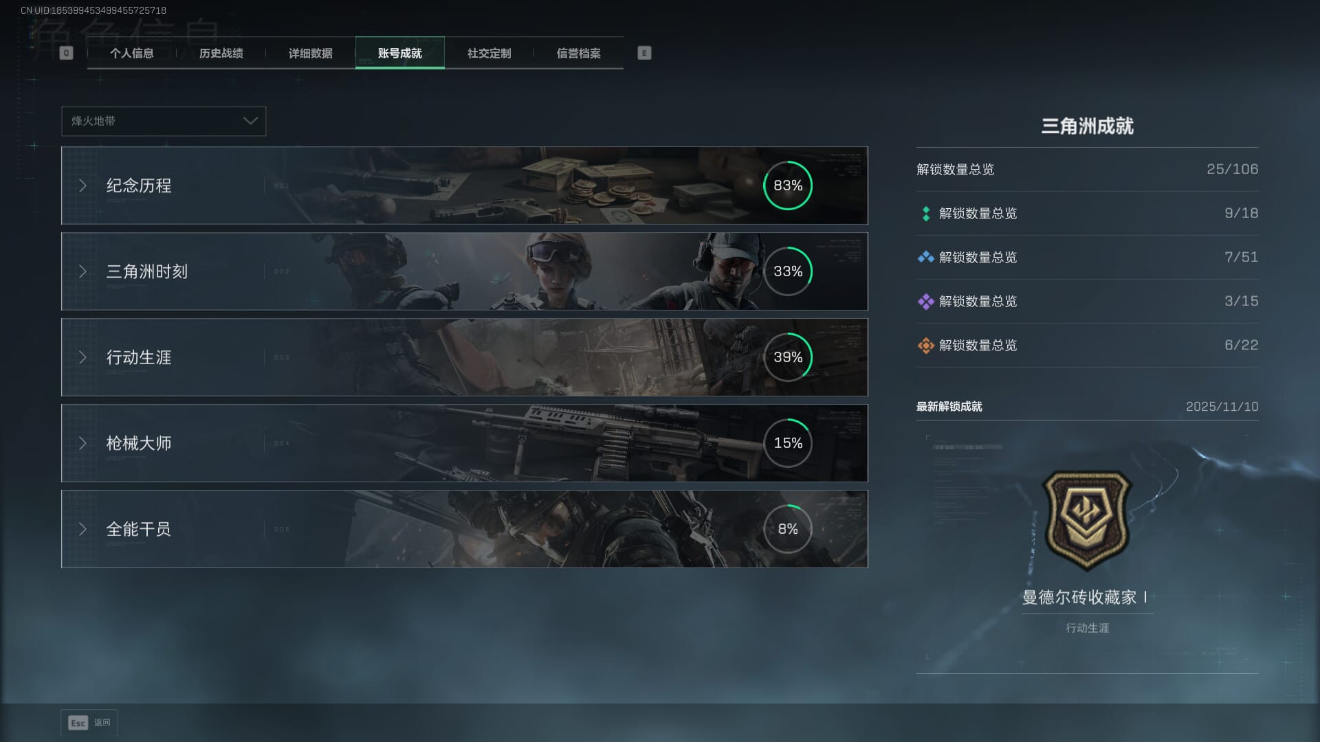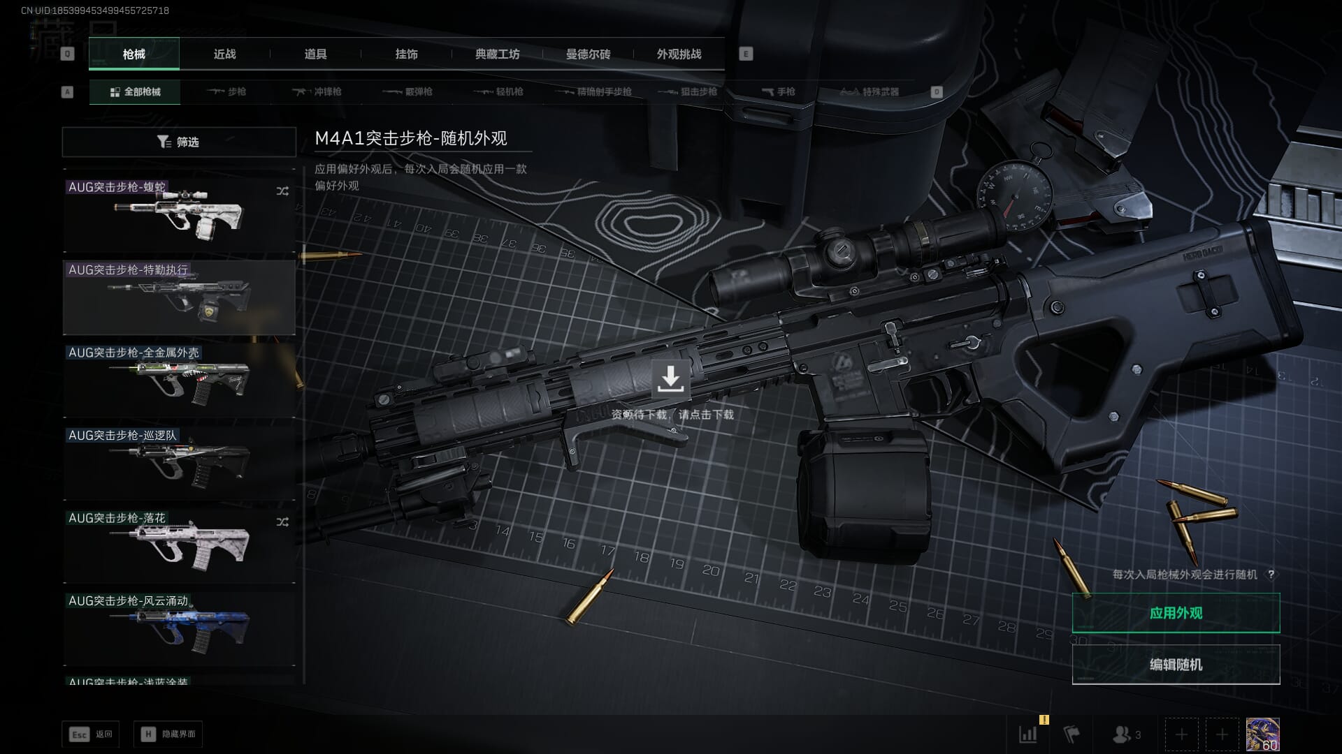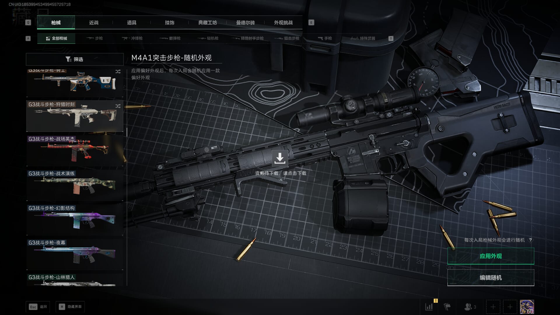 总资产:62.2M,哈夫币:84W,武器皮肤:5,黑鹰_,战场60级:列兵,【安全箱】基础安全箱;【特勤处等级】仓库LV.5,靶场LV.4,训练中心LV.4;【干员皮肤】骇爪维什戴尔,红狼电锯惊魂;【近战武器】近战武器-黑鹰;【步枪皮肤】M4A1突击步枪-阿米娅,SCAR-H战斗步枪-启航,KC17突击步枪-电锯惊魂;【狙击步枪皮肤】R93狙击步枪-维什戴尔;