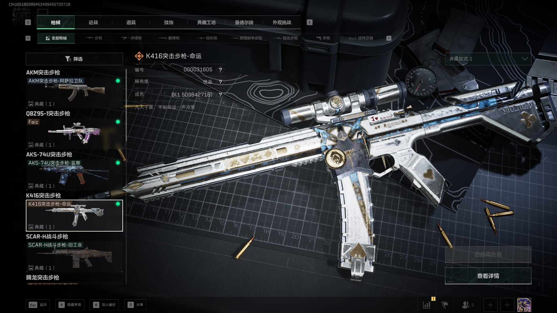 商品描述:TE9110/QQ区/可二次/钱包注销/总资产:【340.5M+近战影锋北极星+骇爪水墨云图+红狼蚀金玫瑰+露娜黑天际线+威龙飞虎+蜂医送葬人无题密令+牧羊人街头之王+威龙壮志凌云+无名夜鹰+红狼电锯惊魂+深蓝不破誓约+K416突击步枪-命运(优品B)+QBZ95-1突击步枪-王牌之剑(优品B)+腾龙突击步枪-气象感应(优品B)】/哈夫币:1537W,武器皮肤315;烽火60级:铂金Ⅰ,战场:军士长Ⅱ,【安全箱】基础安全箱;【特勤处等级】仓库LV.9,靶场LV.7,训练中心LV.7,收藏室LV.2,潜水中心LV.2;【捆绑包14】影锋捆绑包,北极星捆绑包,鹅鸭杀捆绑包,蚀金玫瑰捆绑包,水墨云图捆绑包,黑天际线捆绑包,飞虎捆绑包,电锯惊魂干员捆绑包,狩猎时刻捆绑包,特斯拉线圈捆绑包,无机神经元捆绑包,死神玫瑰捆绑包,曙光捆绑包,蝮蛇捆绑包;【干员皮肤10】骇爪水墨云图,红狼蚀金玫瑰,露娜黑天际线,威龙飞虎,蜂医送葬人无题密令,牧羊人街头之王,威龙壮志凌云,无名夜鹰,红狼电锯惊魂,深蓝不破誓约;【典藏皮肤】K416突击步枪-命运(优品B),QBZ95-1突击步枪-王牌之剑(优品B),腾龙突击步枪-气象感应(优品B);【近战皮肤】近战武器-影锋,近战武器-北极星,近战武器-黑鹰;【步枪皮肤】K416突击步枪-命运,QBZ95-1突击步枪-王牌之剑,腾龙突击步枪-气象感应,M4A1突击步枪-阿米娅,M4A1突击步枪-蚀金玫瑰,ASh-12战斗步枪-鹅鸭杀,M16A4突击步枪-狩猎时刻,M7战斗步枪-维京,AK-12突击步枪-夜鹰,AK-12突击步枪-特斯拉线圈,SCAR-H战斗步枪-启航,SCAR-H战斗步枪-水墨云图,SCAR-H战斗步枪-铁艺苍穹,G3战斗步枪-骑士,G3战斗步枪-狩猎时刻,G3战斗步枪-无机神经元,CAR-15突击步枪-阿米娅,ASVal突击步枪-蛇年祥瑞,ASVal突击步枪-死神玫瑰,腾龙突击步枪-死神玫瑰,K437突击步枪-北极星,KC17突击步枪-电锯惊魂,M4A1突击步枪-特勤执行,AKM突击步枪-林中猎手,QBZ95-1突击步枪-曙光,QBZ95-1突击步枪-ACE,ASh-12战斗步枪-守夜人,ASh-12战斗步枪-无极限,M16A4突击步枪-竞赛选手,AUG突击步枪-蝮蛇,AUG突击步枪-特勤执行,SG552突击步枪-尖端治疗,SG552突击步枪-深海恐惧,SCAR-H战斗步枪-危险实验,SCAR-H战斗步枪-囚徒,G3战斗步枪-战场英杰,PTR-32突击步枪-ACE,PTR-32突击步枪-英雄,ASVal突击步枪-尖端治疗,ASVal突击步枪-典狱官,腾龙突击步枪-无垢,腾龙突击步枪-猎鳄行动,K437突击步枪-守护者