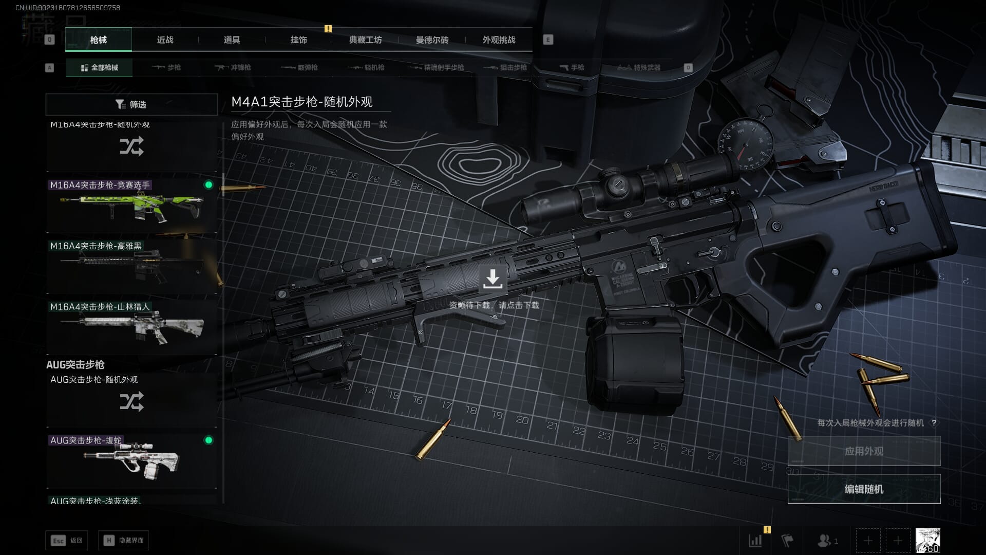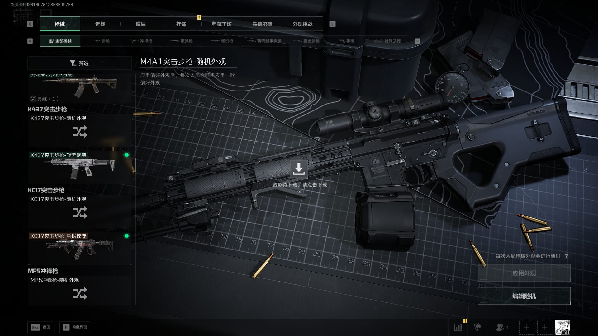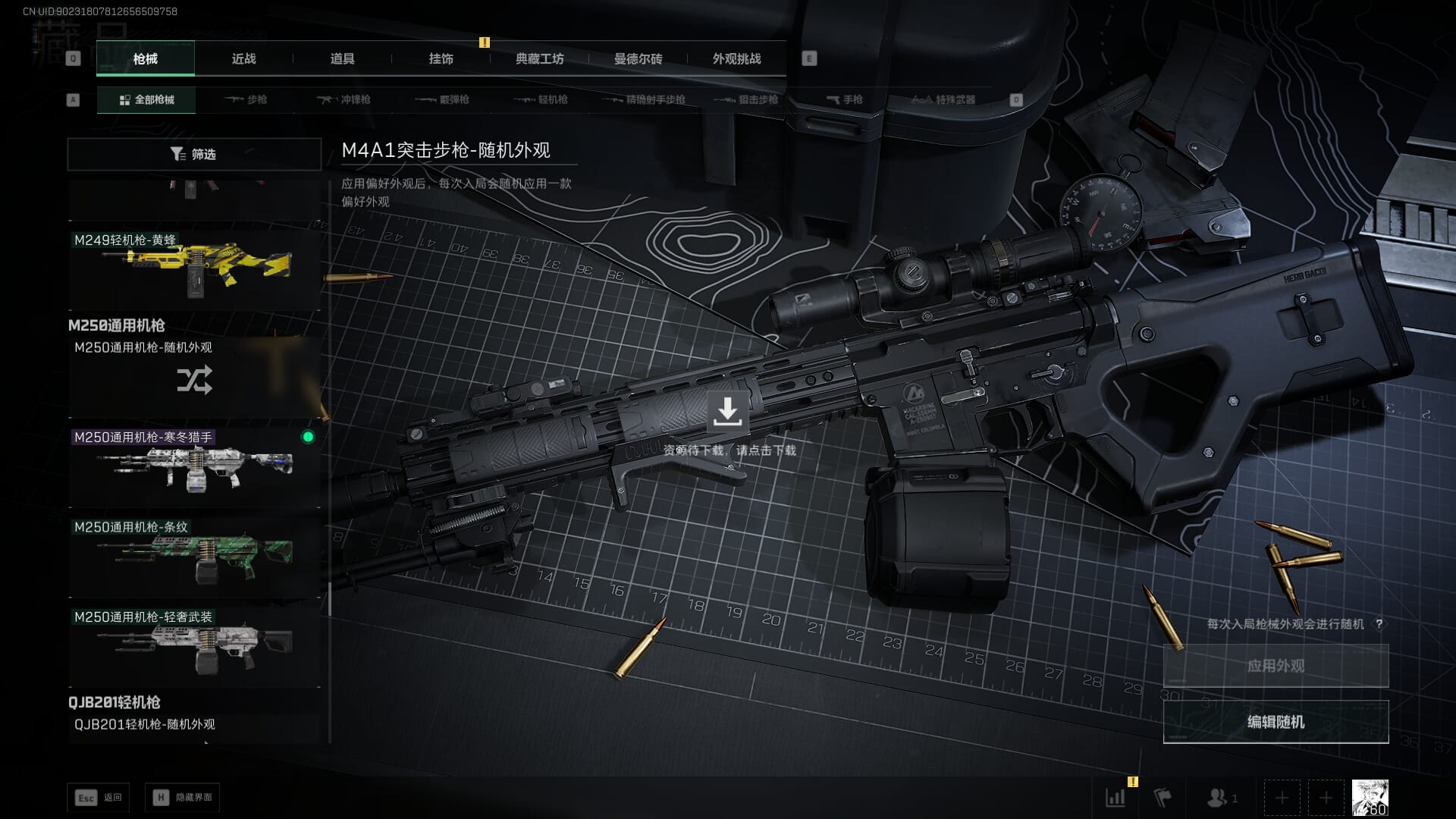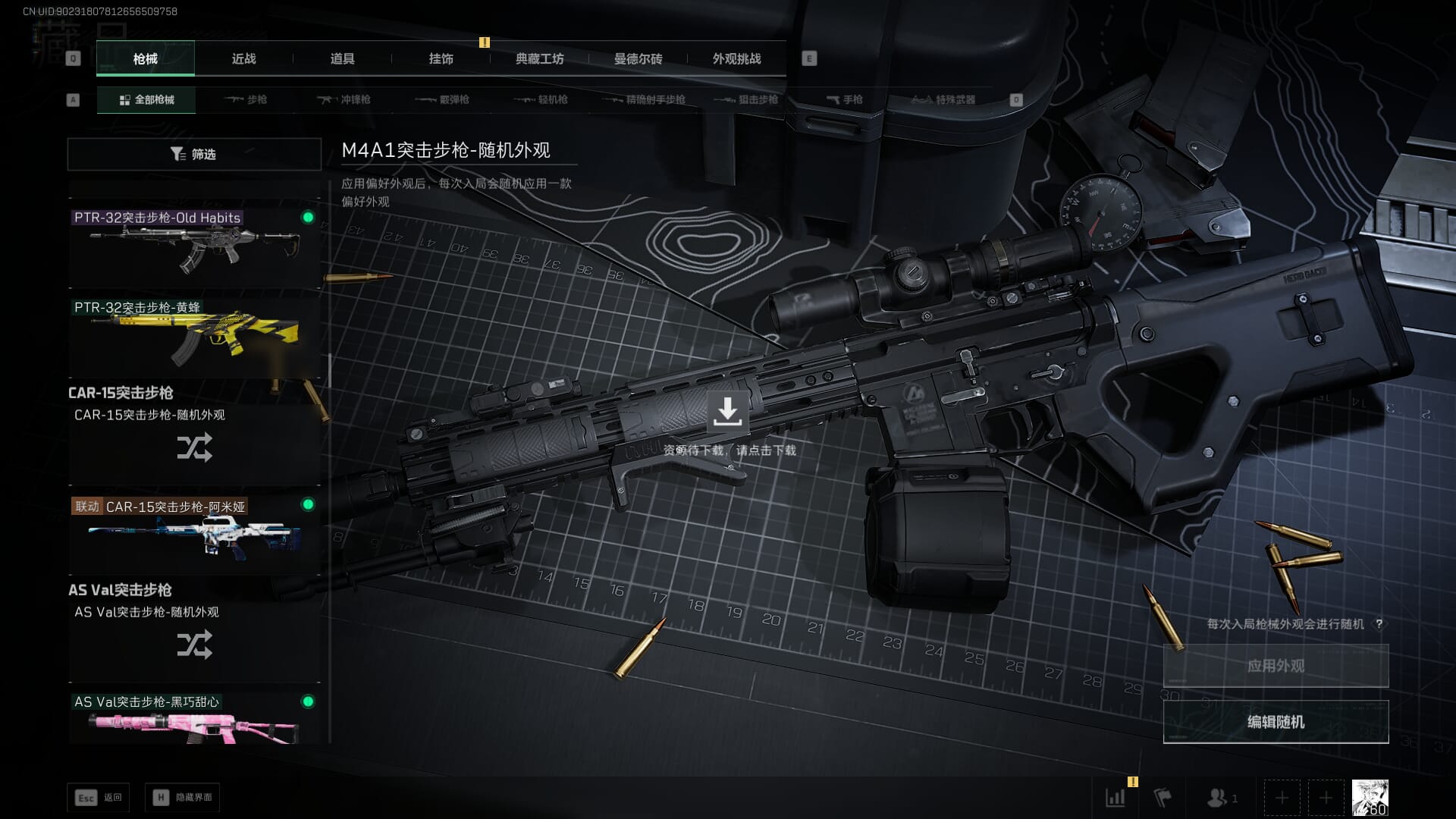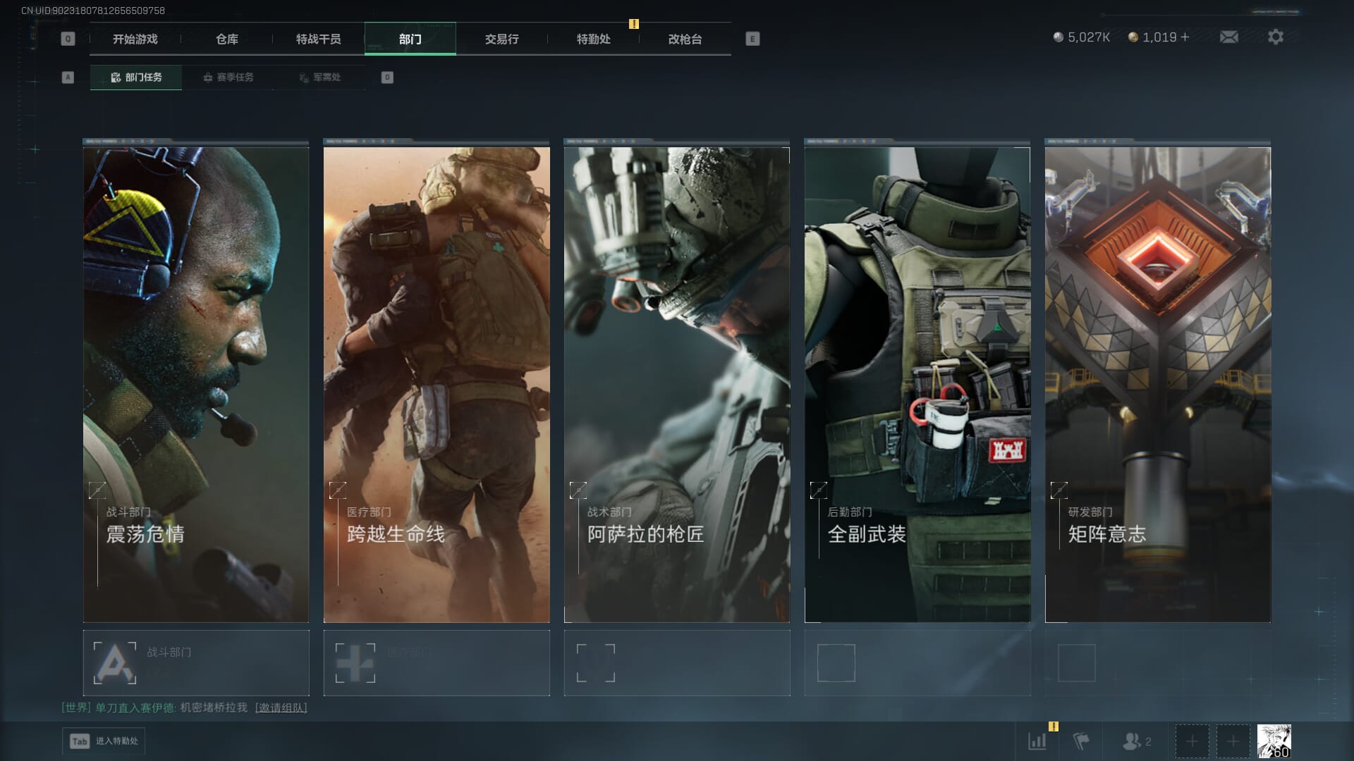 总资产:62.2M,哈夫币:84W,武器皮肤:5,黑鹰_,战场60级:列兵,【安全箱】基础安全箱;【特勤处等级】仓库LV.5,靶场LV.4,训练中心LV.4;【干员皮肤】骇爪维什戴尔,红狼电锯惊魂;【近战武器】近战武器-黑鹰;【步枪皮肤】M4A1突击步枪-阿米娅,SCAR-H战斗步枪-启航,KC17突击步枪-电锯惊魂;【狙击步枪皮肤】R93狙击步枪-维什戴尔;