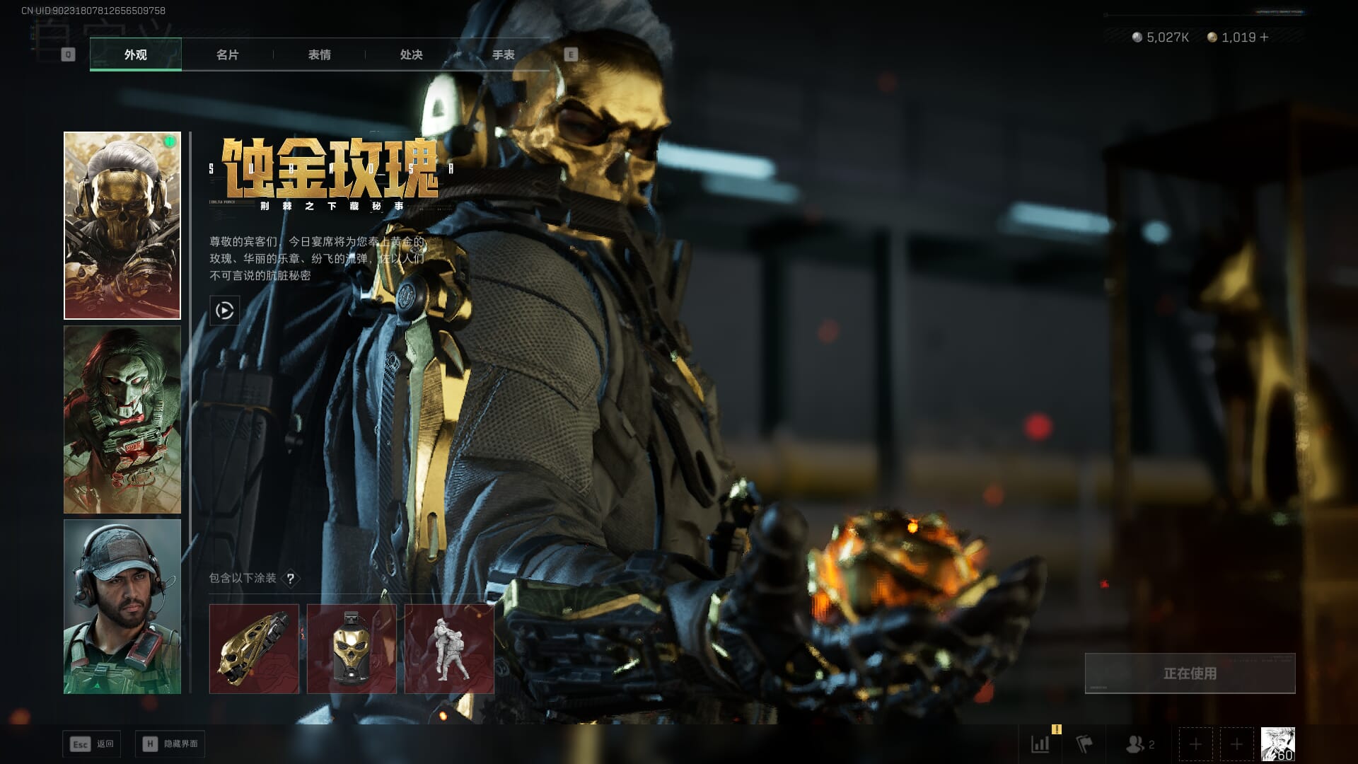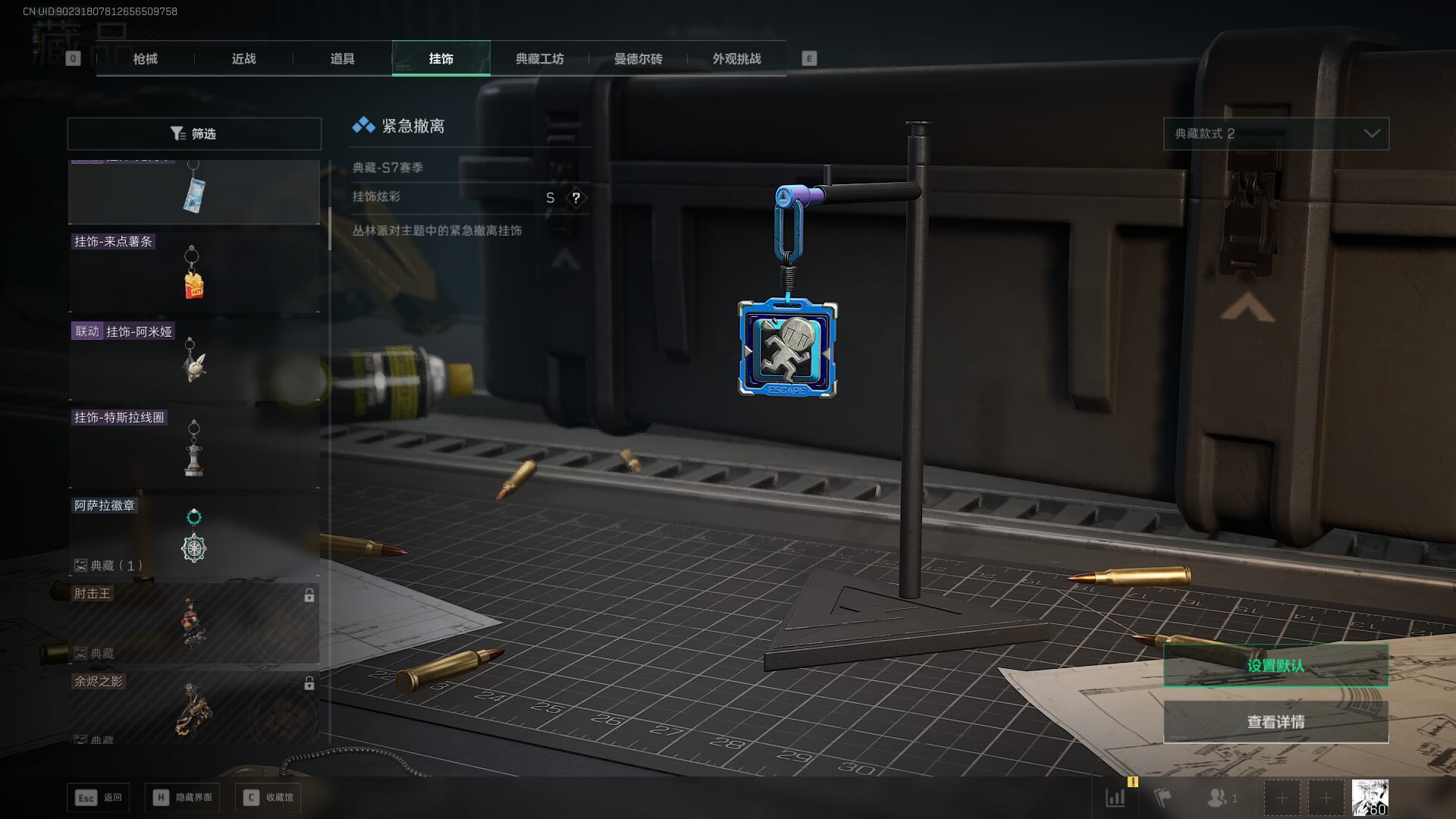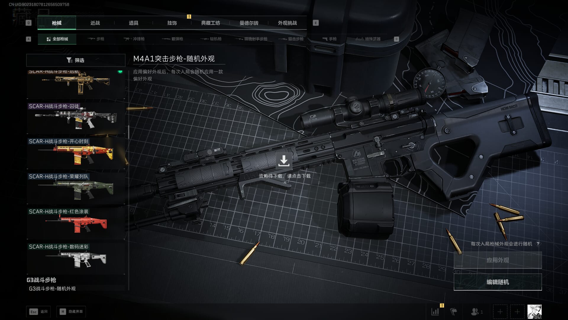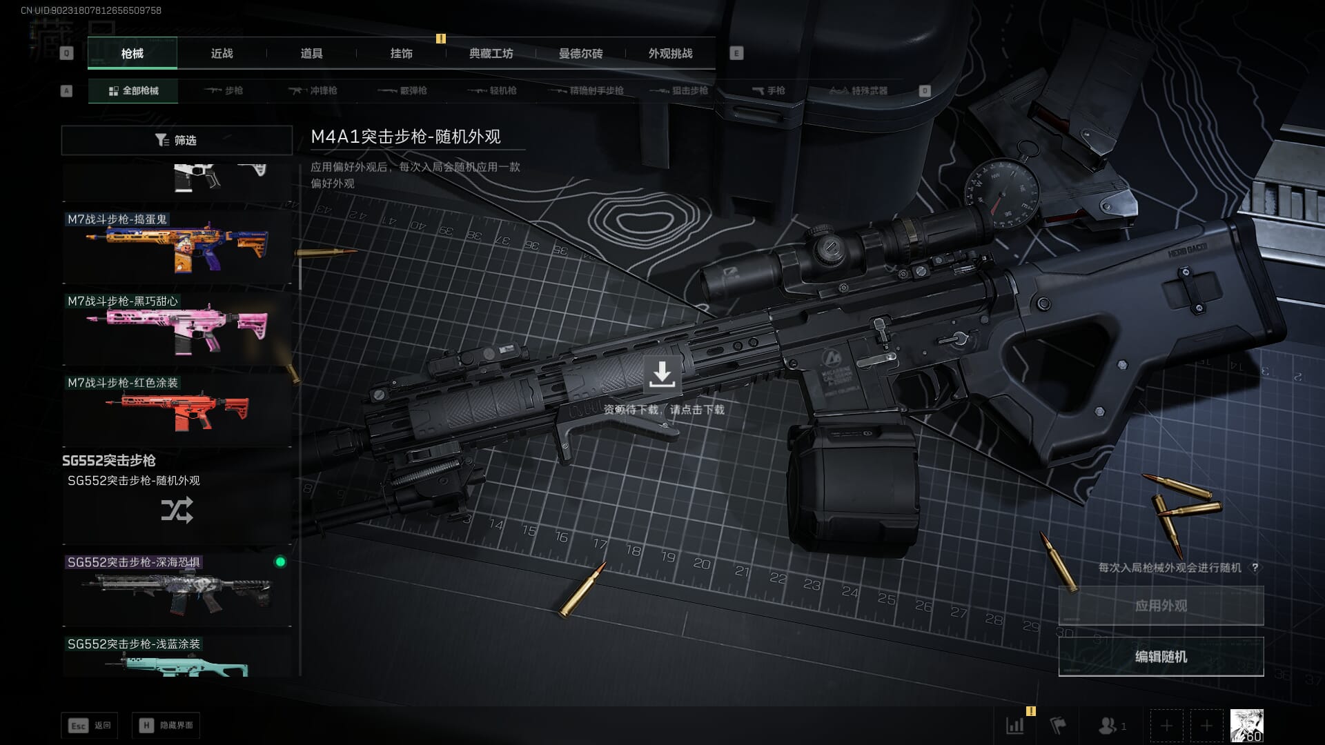 总资产:62.2M,哈夫币:84W,武器皮肤:5,黑鹰_,战场60级:列兵,【安全箱】基础安全箱;【特勤处等级】仓库LV.5,靶场LV.4,训练中心LV.4;【干员皮肤】骇爪维什戴尔,红狼电锯惊魂;【近战武器】近战武器-黑鹰;【步枪皮肤】M4A1突击步枪-阿米娅,SCAR-H战斗步枪-启航,KC17突击步枪-电锯惊魂;【狙击步枪皮肤】R93狙击步枪-维什戴尔;