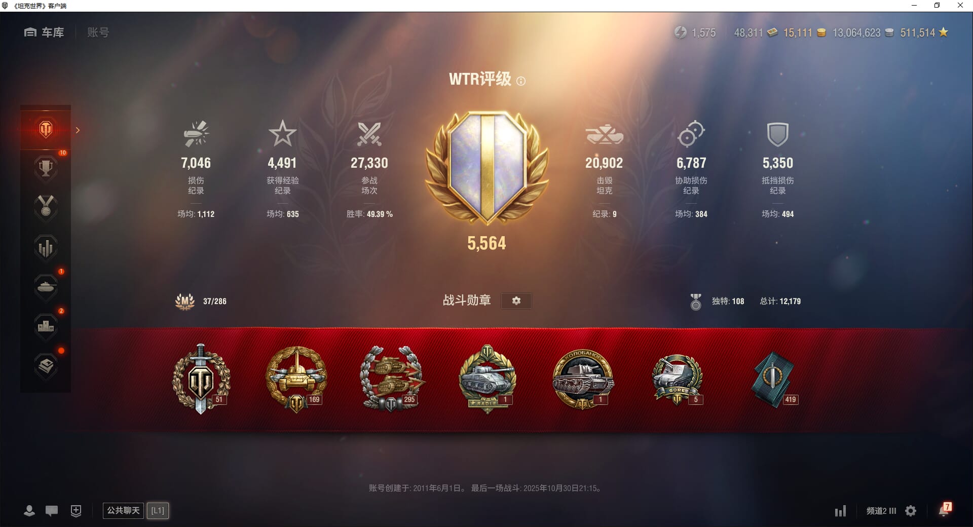 TD1238/无绑定-绝对安全/全部坦克14/金币坦克12/10级2/9级1/10级/BZ-75/FV215b/9级/GSOR坦克/乘员112/债券16793/金币3176/银币1494w/全局16088