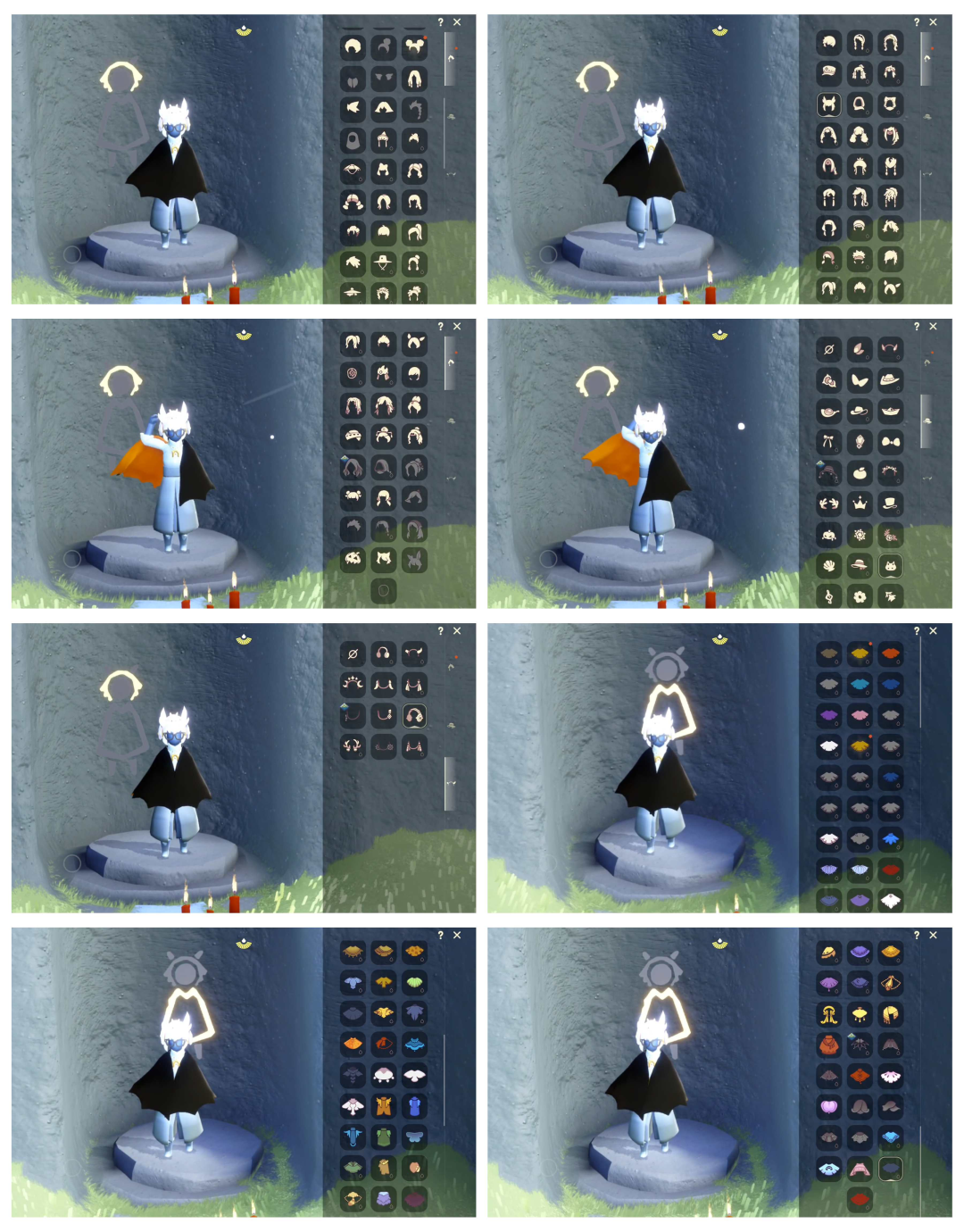 热门复刻:武士裤 人字拖 白棉裤 毛靴裤 绒边棉裤 灯笼裤 连体衣 雪人衣 过膝长袍 矮人面具 红狐狸面具 黄鼠狼面具 老爷爷面具 红兔面具 暗花面具 贴花面具 黑脸面具 黑框眼镜 毛绒领子 螃蟹肩饰 宴会围巾 蝴蝶结发型 公主头 书虫 正太 高马尾 明制帽 郡主 箬笠 花环 虚荣 军帽 爱神 猫猫头 单片羽毛 金豆耳坠 绿露珠 翎羽斗篷 小浣熊斗篷 樱花斗篷 海浪斗篷 相机 "