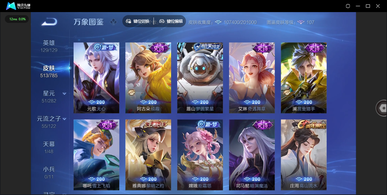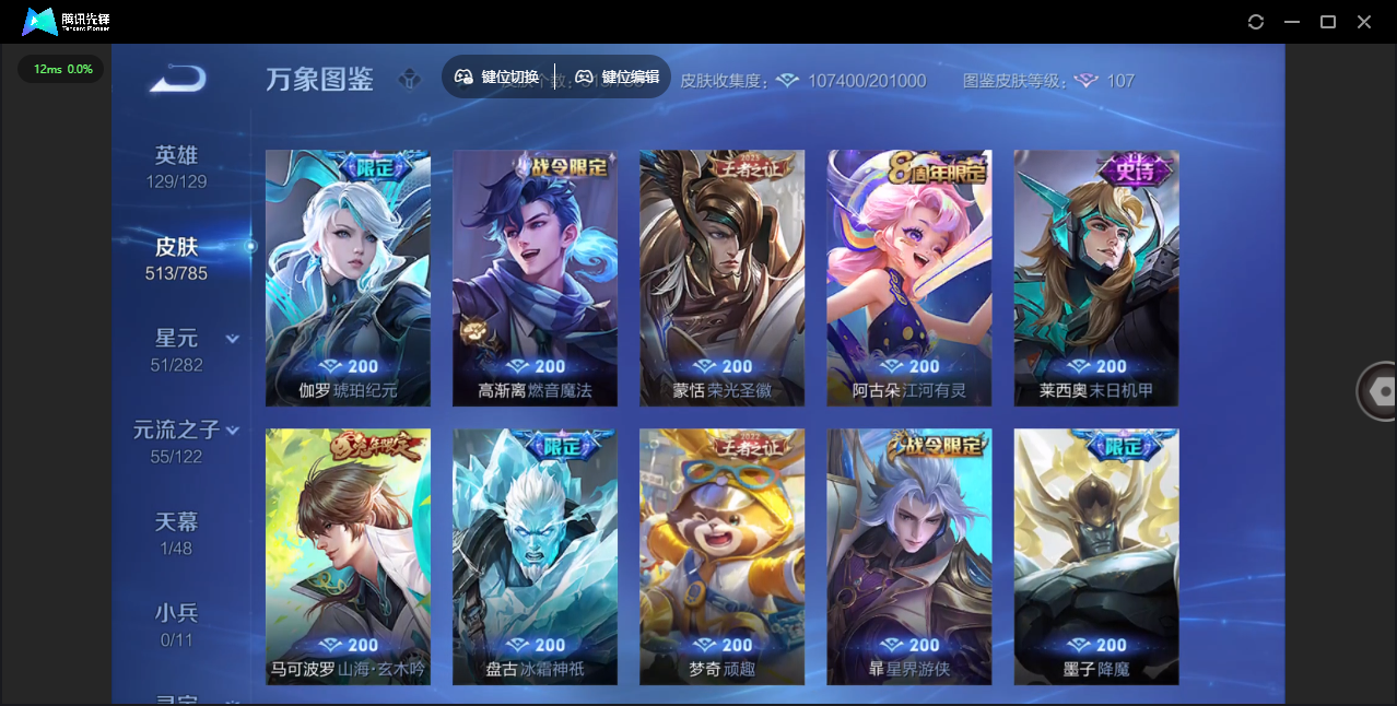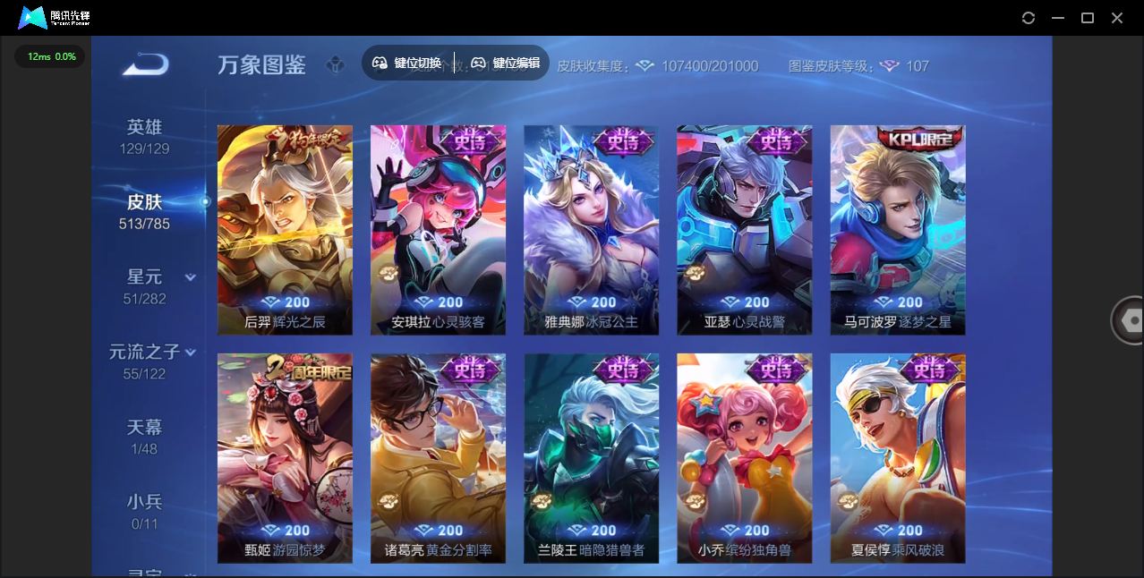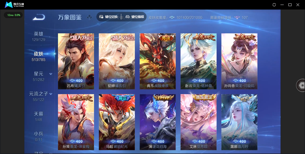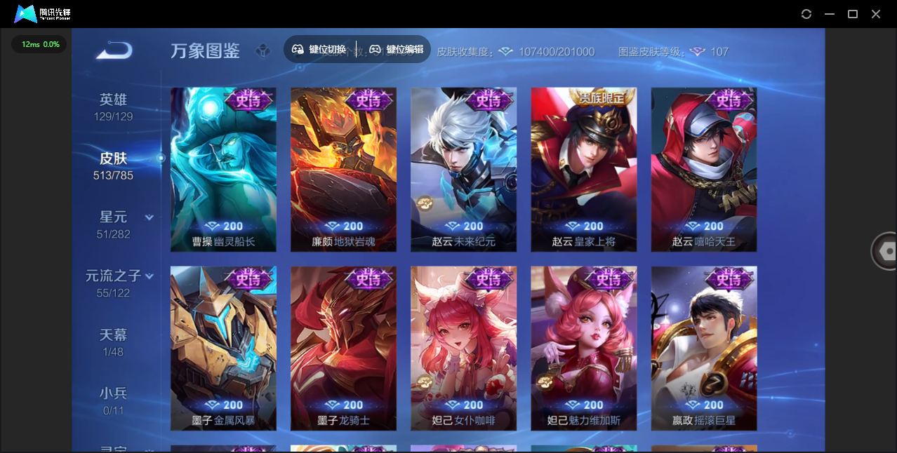 【QQ(安卓)】贵族0-贵族积分0万-0英雄-0皮肤 【抢先服】2万金币+回归150级铭文+改名卡