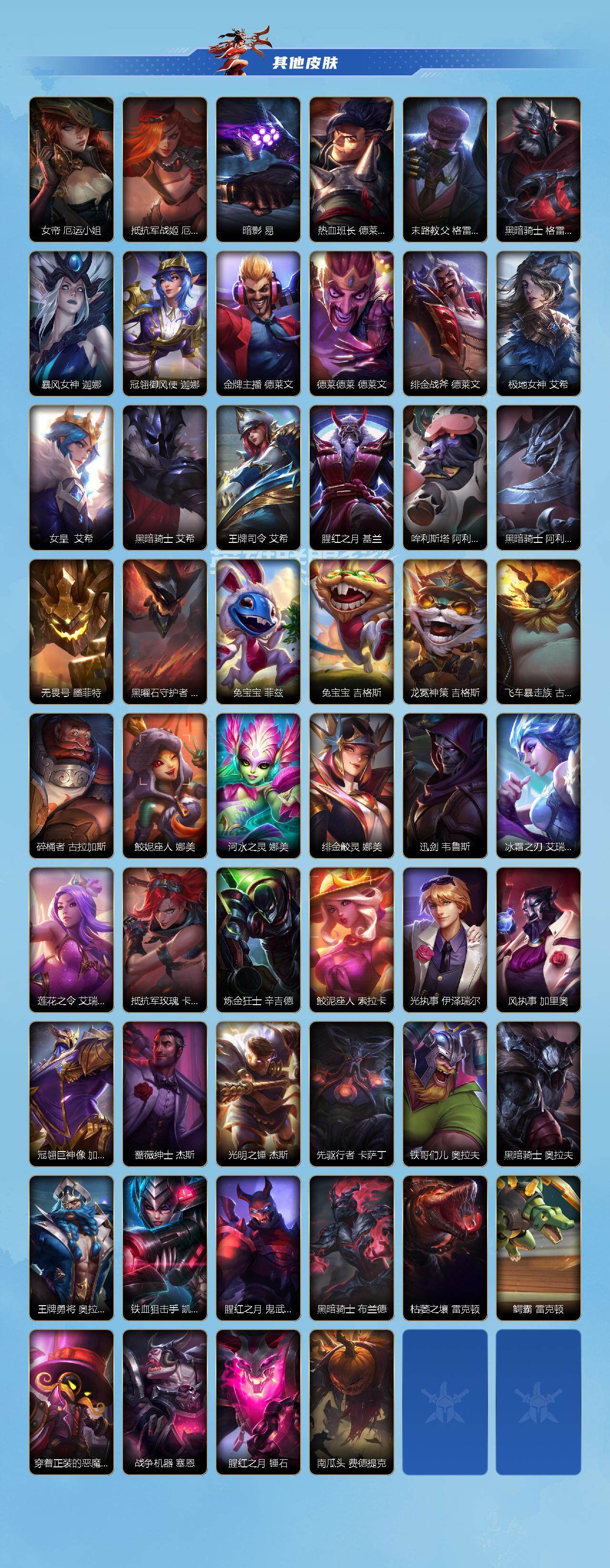 【LOLMX106】80英雄/51皮肤/流光翡翠/至臻 心之钢 永恩/心之钢 凯隐/神龙尊者 昼日真龙 亚索/神拳 李青/源计划:林 易/灌篮高手 德莱厄斯/源计划:联合 艾希/战斗学院 伊泽瑞尔/小蜜蜂 努努和威朗普/光明哨兵 黛安娜/恶魔之刃 泰达米尔/斗魂无双 赵信/喵喵魅影金克丝/礼物选好了吗? 布隆/未来战士 菲奥娜/战场之王 亚索/我,羽饰骑士 崔丝塔娜/驯龙女巫 璐璐/暗星 嘉文四世/冰川巨兽 墨菲特/玉剑传说 武剑仙 锐雯/星之守护者COS 厄加特/奈落之炎 慎/怨之砂 派克/宇航员 诺提勒斯/s6绯金丽刃/s11王牌司令/s12龙冕先锋/s13龙冕御盾/s14龙冕神策/s1【LSSA188】47英雄/29皮肤/1神话/14史诗/璀璨钻石/夜星流火 金克丝/惊悚派对 阿木木/地狱火 阿木木/礼物选好了吗? 布隆/西部牛仔 烬/腥红之月 烬/泳池派对 璐璐/灵魂莲华 永恩/禁卫机甲 格雷福斯/魅惑女巫 迦娜/灵魂莲华 锐雯/欧米伽小队 天雷爆破手 维迦/玉剑传说 无影 泰隆/黑夜使者 莉莉娅/梦游仙境 莉莉娅/s17冠翎御风使/S18冠翎巨神像/S19冠翎征服者/暗黑武士 雷恩加尔/秘密特工 赵信/死亡绽放 卡兹克/冠翎征服者 尼菈/光明骑士 贾克斯/女警官 蔚/至高之拳 李青/创世魔神 内瑟斯/冠翎御风使 迦娜/飞车暴走族 古拉加斯/苍穹之光 韦鲁斯/莲花之令