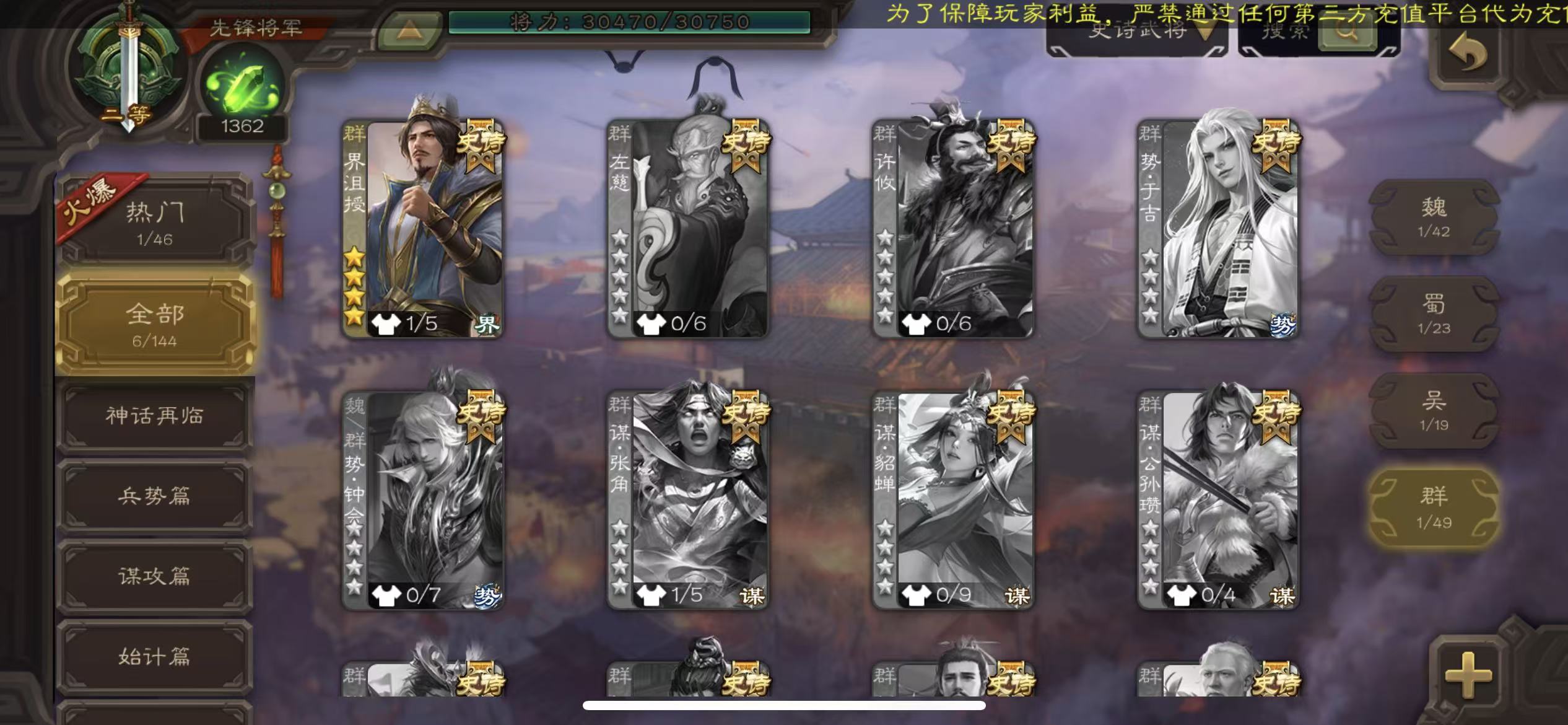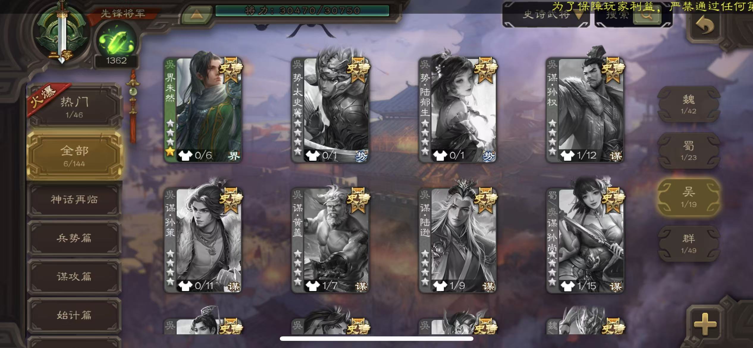 商品描述:先锋回廊动态界沮授神鲁肃戏子红乌龟神张辽三卡