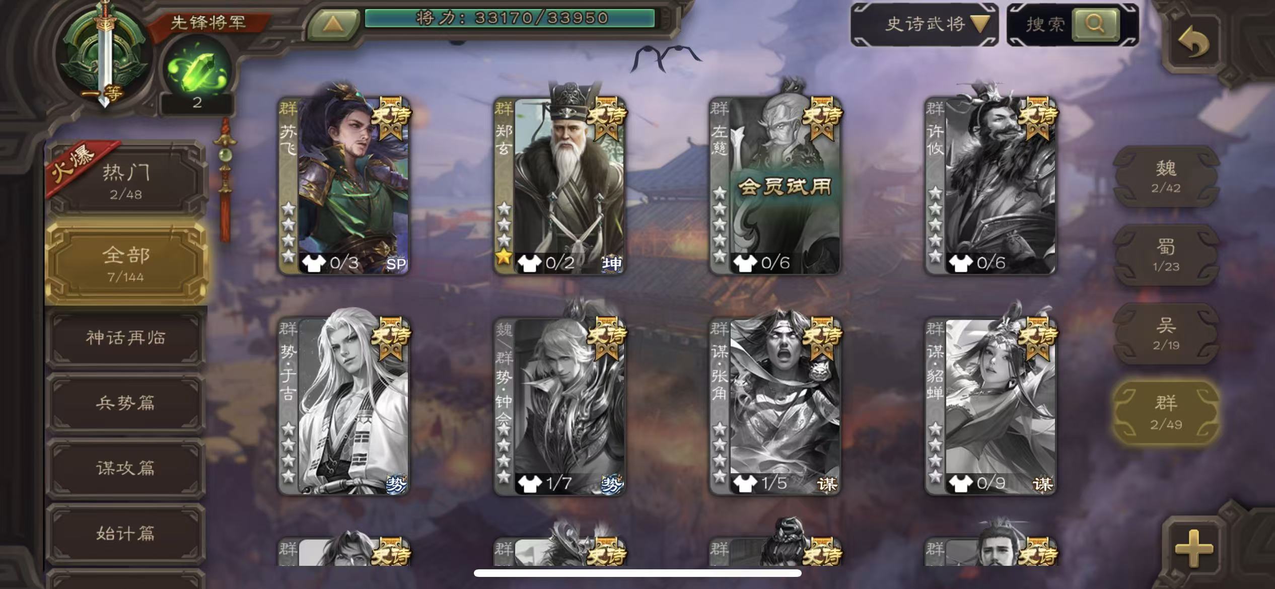 商品描述: 先锋火龙果势魏延界钟会郑玄7史诗三卡回廊皮肤是体验卡