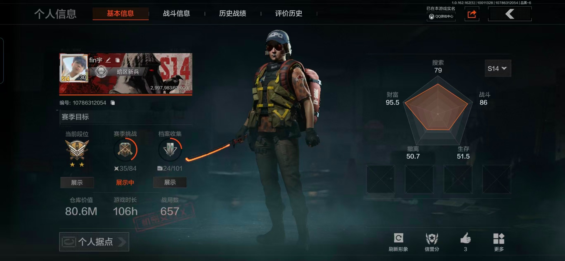 [13630734]库存价值102.7 6近战武器 2金套装 10金枪皮 可修改实名 【柯恩币数量】:3180【角色装扮(金)】:绕指玉鸾·战术甲胄,使徒·欧瑞恩【近战武器】:三尺万仞·战术剑,工兵铲,来战·开山刀,涂鸦利刃,冬日冰镐,急袭弯刀【金色枪皮】:利齿风暴·MPX,告丧夜曲·AUG,告丧夜曲·AR57,浮鳞影青·QBZ192,旧王圣谕·QBZ191,旧王圣谕·VSS,骑士之剑·VSS,长缨风掣·Vector9,长缨风掣·RPK16,长缨风掣·AX50【紫色枪皮】:棱光裂变·AK102,竞技·MDR,骑士之剑·AKS74U,炎夏浪花·H416,快乐游戏·MPX,骤羽尖啸·M4A1,秘域鎏金·RPK16,猩红羽翼·VSS,来战·AKM,德尔塔小队·M4A1,玄戈梨花·MPX,缟兵玄墨·VSS,缟兵玄墨·MPX,07式林地迷彩·QBZ191,玄戈梨花·VSS,涂绘猎人·AR57,战术大师·AK74N【角色装扮(紫)】:金狮护身·转运套装,台风IV竞技运动服