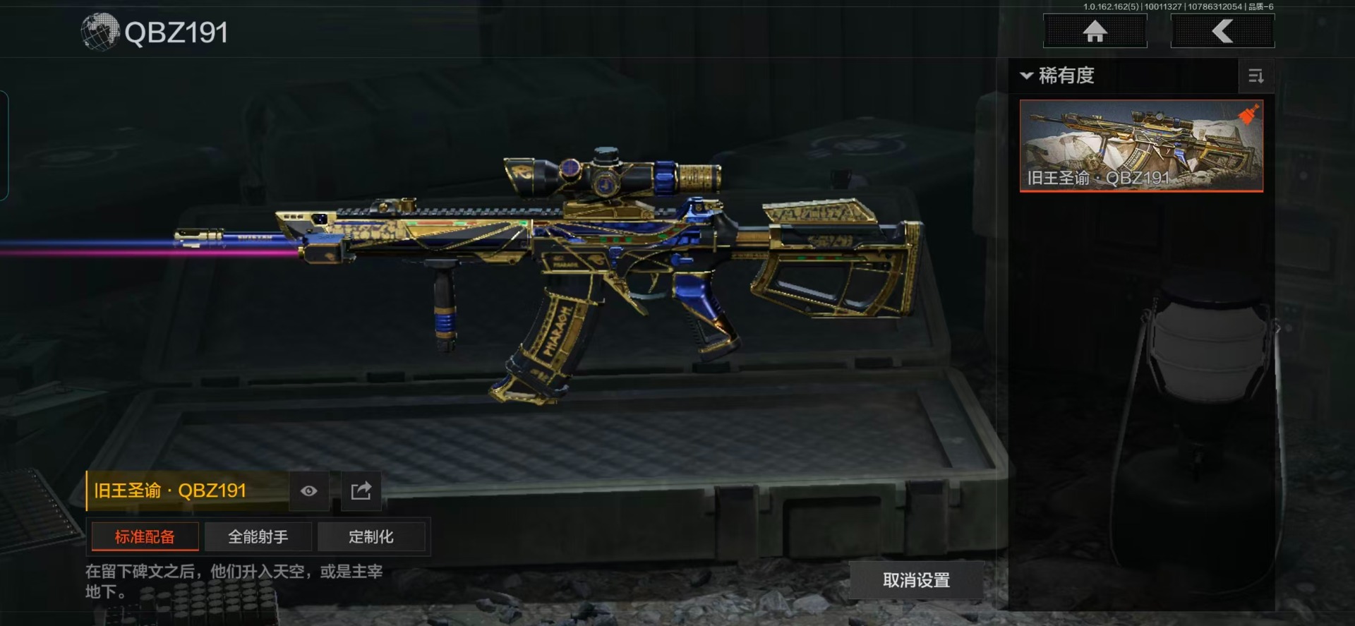 [13997860]库存价值37.8 1近战武器 3金枪皮 可修改实名 【柯恩币数量】:2591【近战武器】:苍穹利爪【金色枪皮】:利齿风暴·MPX,浮鳞影青·QBZ192,旧王圣谕·VSS【紫色枪皮】:骤羽尖啸·MPX,利齿风暴·T03,利齿风暴·T79,粉绒臻选·AR30,战术大师·SVDS,战术大师·AK74N,猩红羽翼·VSS,伦琴计量·AN94,鱼跃丹青·M110,鱼跃丹青·DT MDR,鱼跃丹青·QBU191,幻域莎绫·M4A1,护命金翎·M24,典礼武备·S12K,典礼武备·14,秘域鎏金·RPK16【角色装扮(紫)】:王国卫队礼装,金狮护身·转运套装
