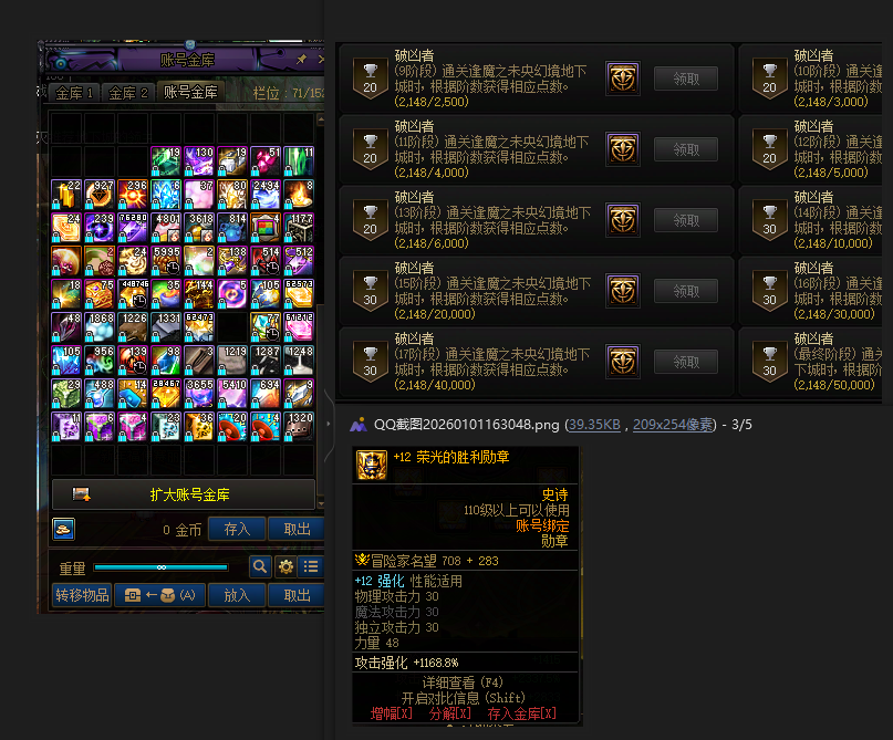 1Q10个角色 大号剑魂七万名望 破凶最后两阶段 一手超级大甩卖 机会不多 找回包赔 手慢拍大腿