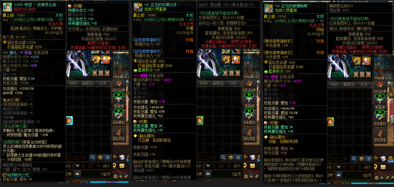 10套2026年套《两个增幅12角色+三个增幅11角色+两个增幅10角色+两套龙透和五套龙袍》《最新大奥密双至尊增幅12打造完全体7051力量8.7W神兽龙袍+深渊骑士+白狗子套+土豪哥装扮+龙透魔神》+《增幅12打造完全体6889力量8.3W名望光翼龙袍刃影》+《增幅12耳环完美增幅11打造完全体8W神兽龙袍奶妈》+完美增幅11打造完全体7.9W神兽龙袍奶萝+双至尊12黑雨武器增幅10打造追忆天空龙透剑魂+13武器六件增幅11打造完全体光翼龙袍桐人皮肤鬼泣+双增幅11武器耳环增幅10打造完全体协战师+12武器增幅10打造完全体男漫游