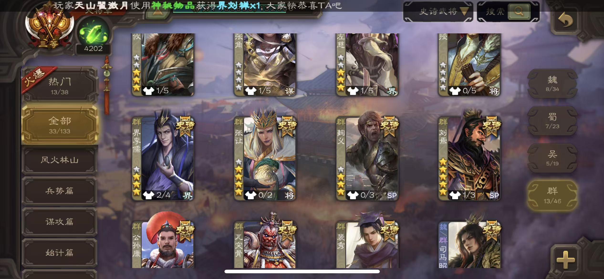 先锋界沮授花花三卡二等骠骑动态神荀彧必胜客天子令曹丕动态大宝裴秀动态戏子动态界钟会白马神太史慈三卡18史诗