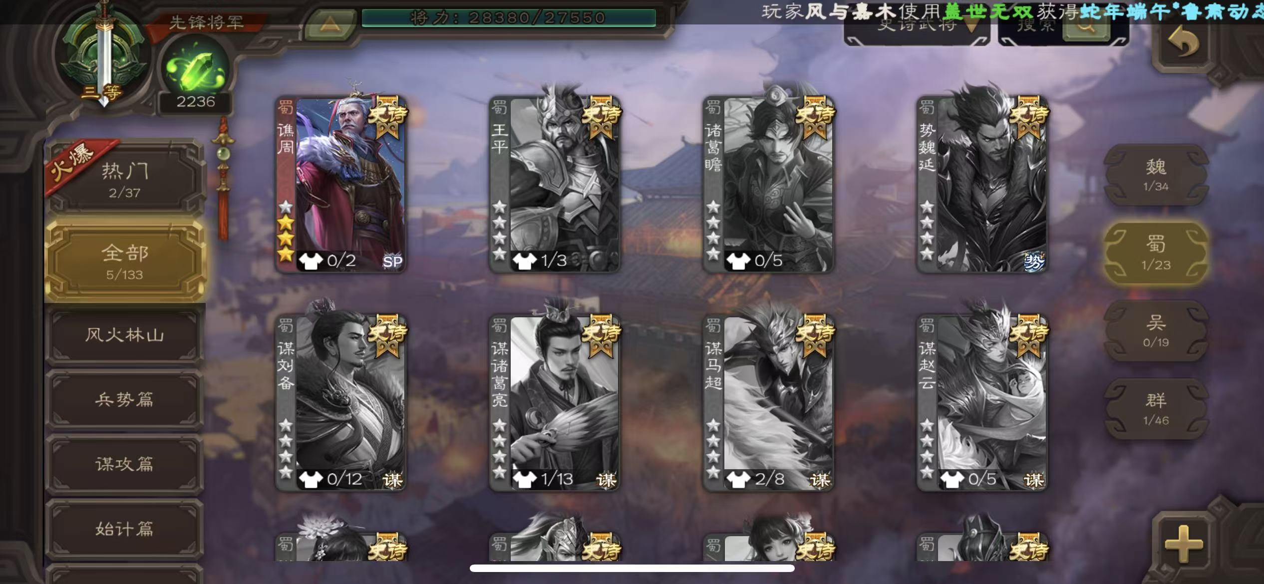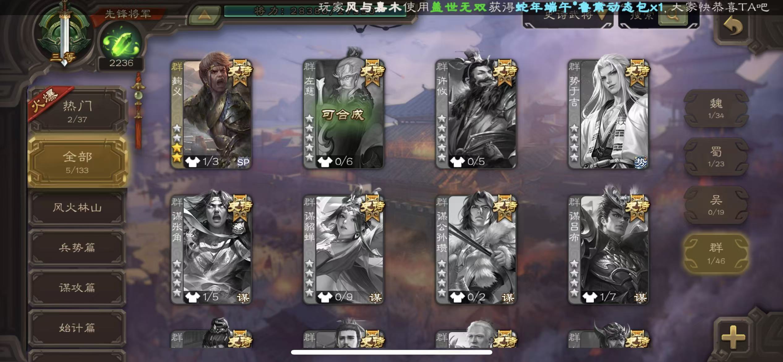 先锋界沮授花花三卡二等骠骑动态神荀彧必胜客天子令曹丕动态大宝裴秀动态戏子动态界钟会白马神太史慈三卡18史诗