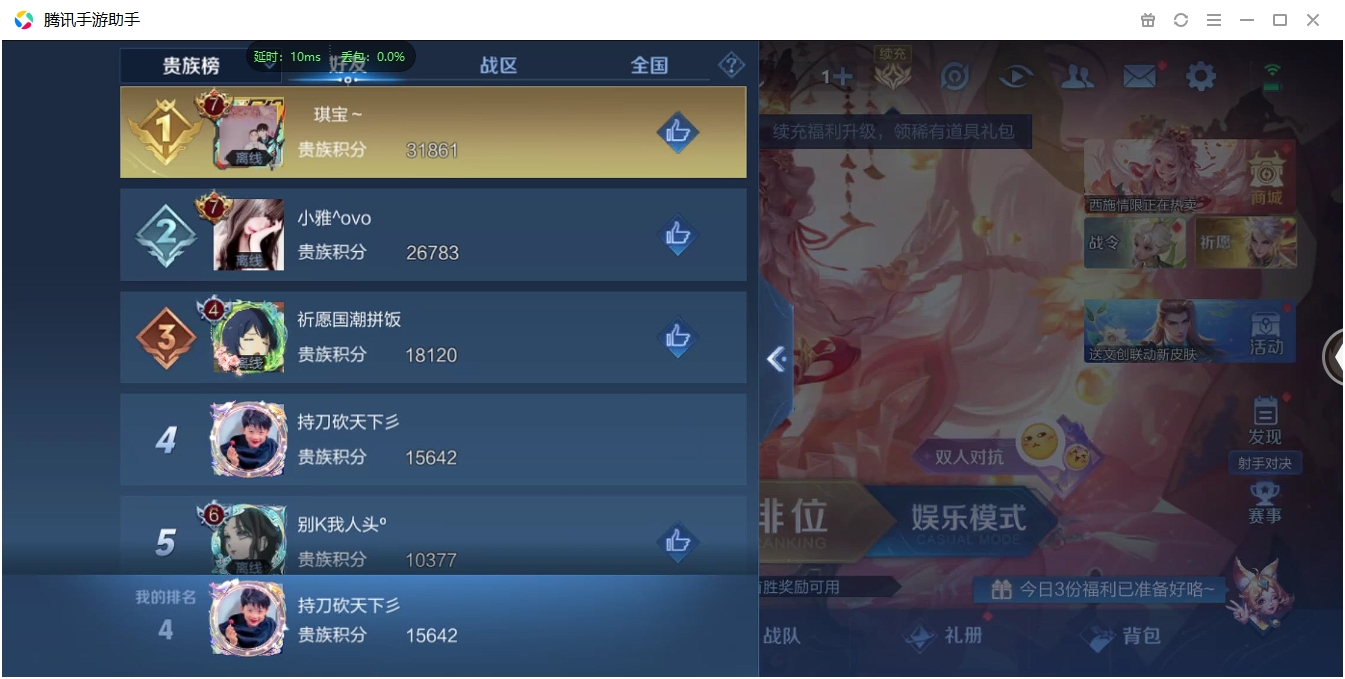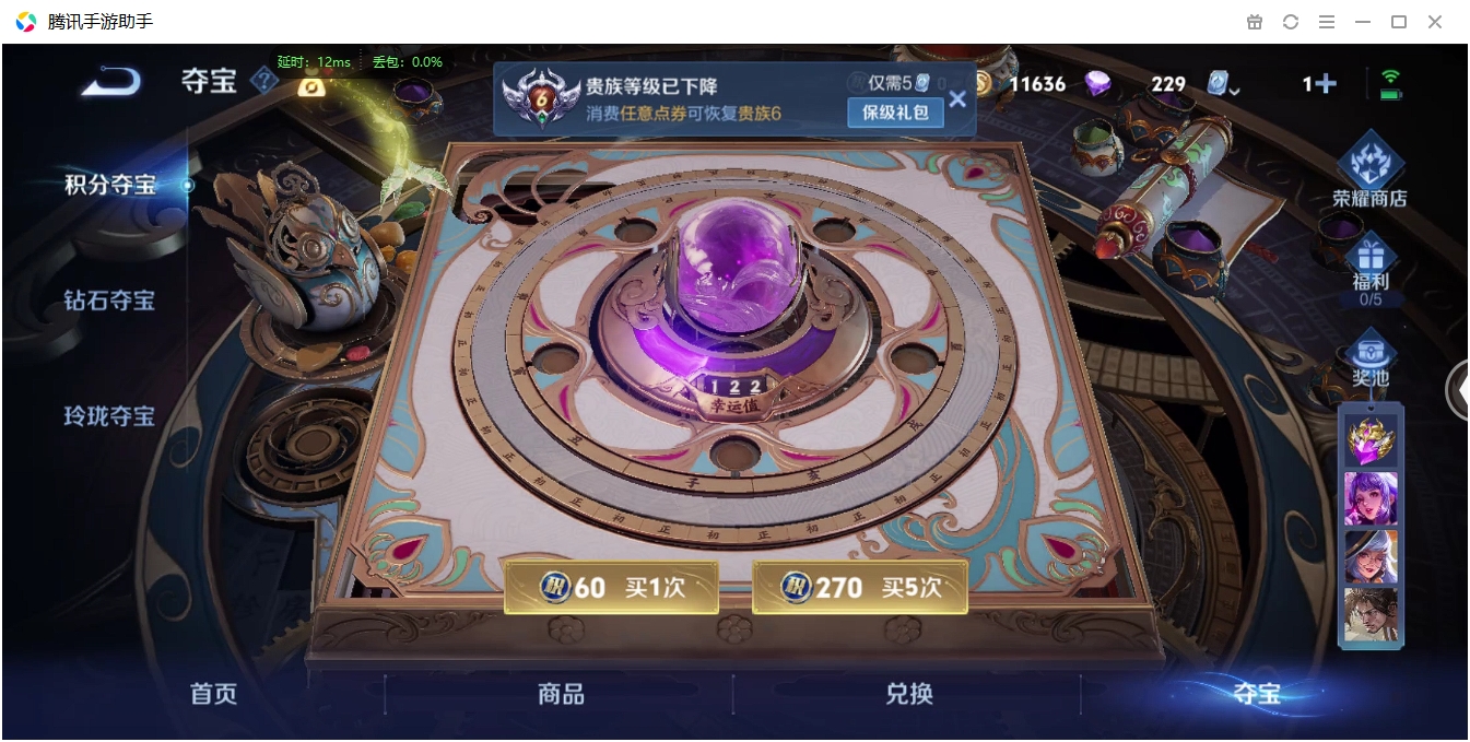 【QQ(安卓)】贵族0-贵族积分0万-0英雄-0皮肤 【抢先服】2万金币+回归150级铭文+改名卡