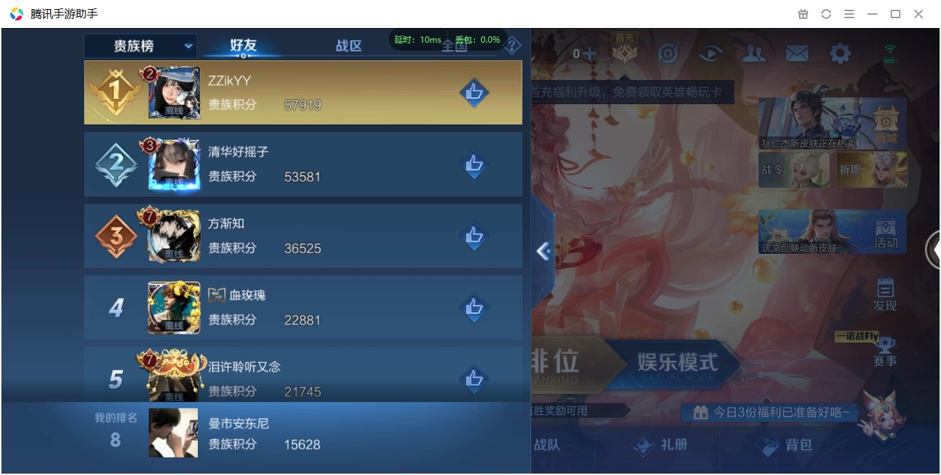 【QQ(安卓)】贵族0-贵族积分0万-0英雄-0皮肤 【抢先服】2万金币+回归150级铭文+改名卡