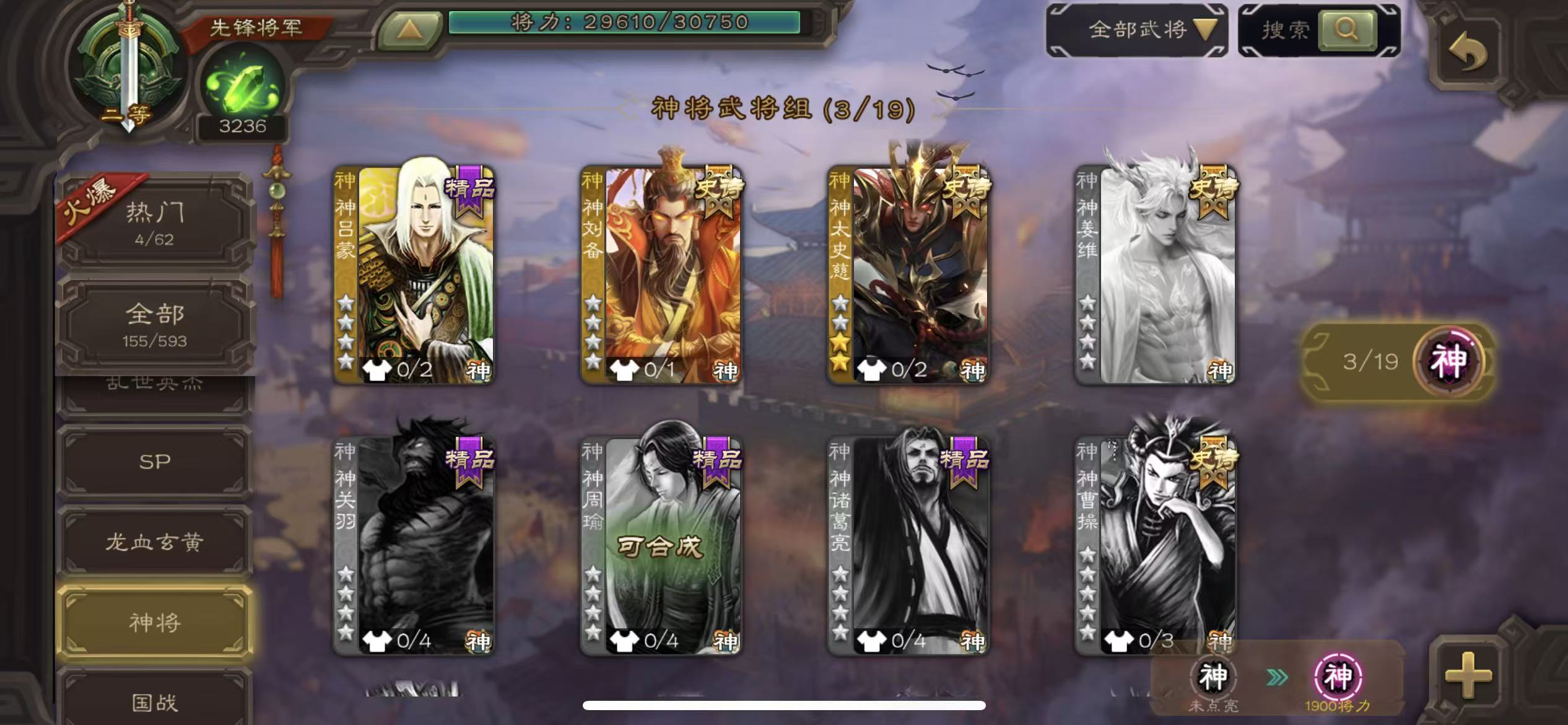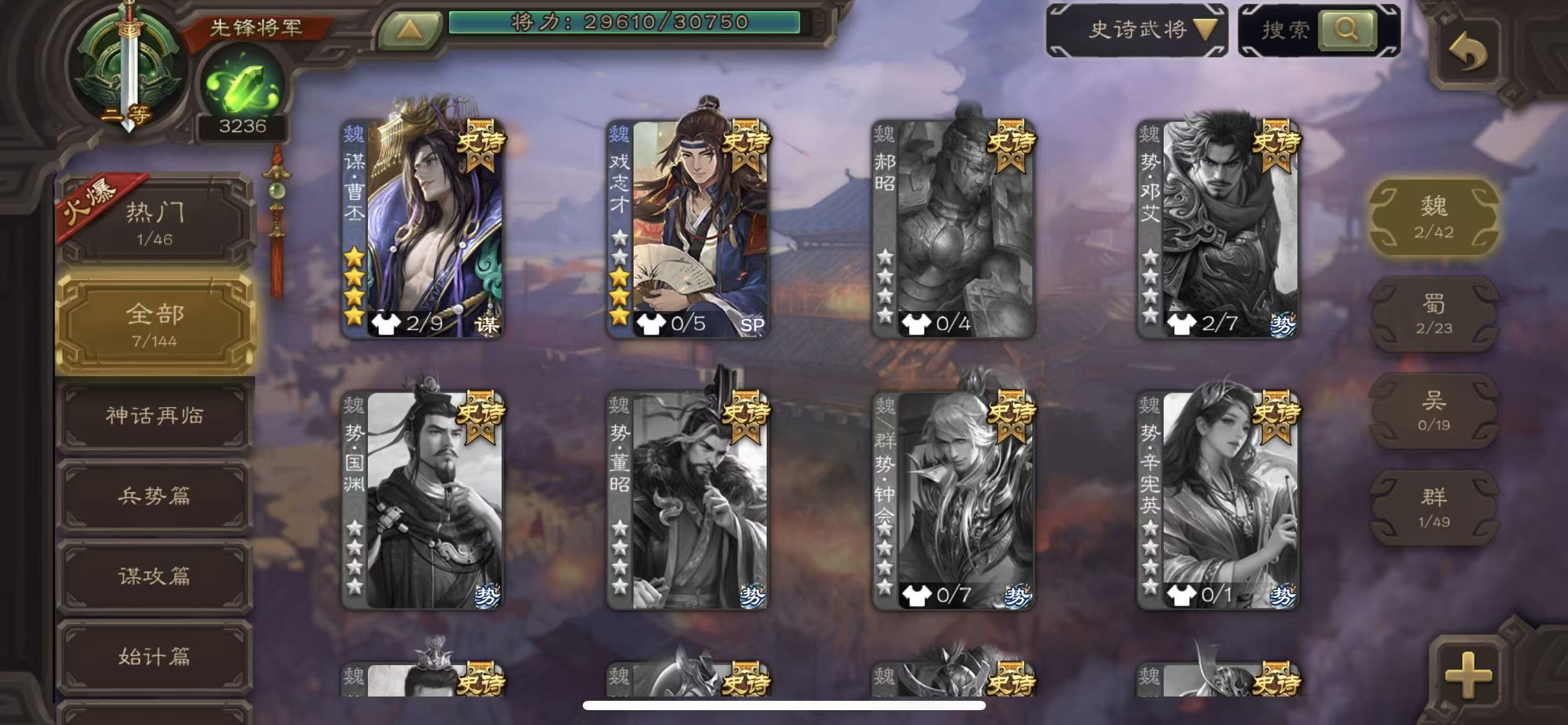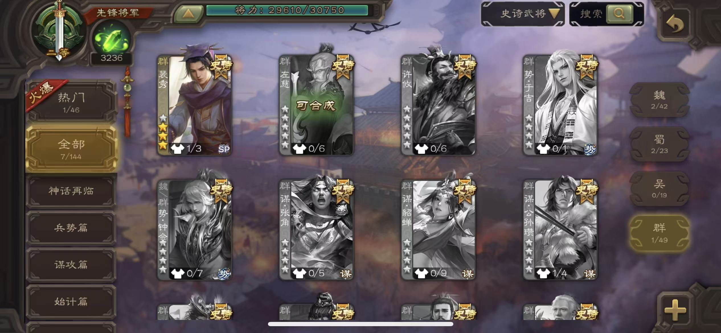 商品描述:先锋谋曹丕裴秀戏子神太史慈关索三卡
