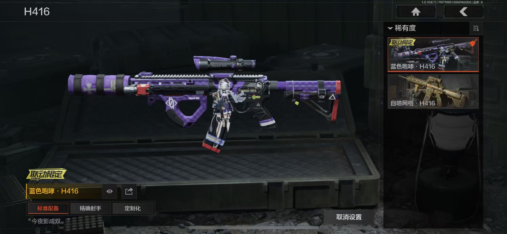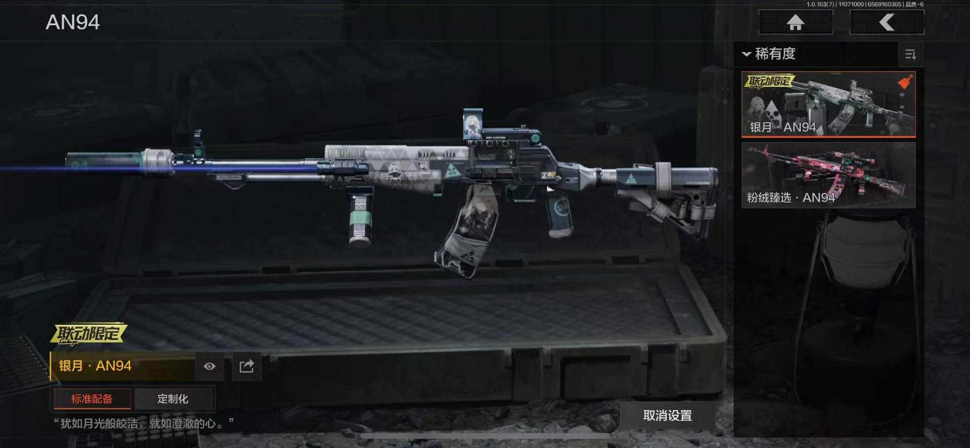 商品描述:[13956419]库存价值31.1 3近战武器 2金枪皮 可修改实名 【柯恩币数量】:6917【近战武器】:工兵铲,来战·开山刀,贝利亚黄昏【金色枪皮】:银月·AN94,蓝色咆哮·H416【紫色枪皮】:火力倾泻·RPD,棱光裂变·AK102,棱光裂变·AKM,莫克斯·AKS74U,粉绒臻选·AN94,典礼武备·14,鱼跃丹青·QBU191,自喷网格·H416,午夜梦魇·M110,恶念·Vector9,德尔塔小队·M4A1,07式林地迷彩·QBZ191,火绒草·AUG,禁止访问·UMP45,白色丧钟·莫辛,玄戈梨花·VSS,娜迦·RPK16,湖冰倒影·MP5【角色装扮(紫)】:都市夜影套装