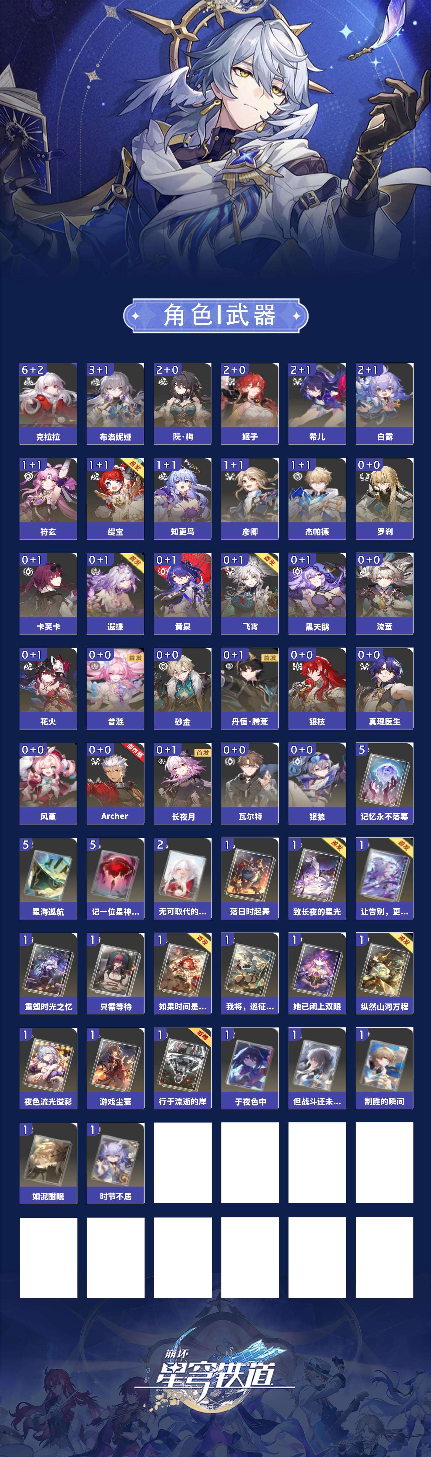 【崩坏·星穹铁道】【LYXQ6817】冒险等级:68,女主,五星数量:17,绑定情况:邮箱__五星角色:白厄 * 6命|Saber|阮·梅|刻律德菈|布洛妮娅|符玄|Archer|丹恒·腾荒|彦卿|杰帕德|真理医生__五星光锥:黎明恰如此燃烧 * 5精|记忆永不落幕 * 5精|时节不居 * 2精|无可取代的东西|理想燃烧的地狱|银河铁道之夜,【邮箱未实名】[13684071]m23836,70级,女主,36黄,梦华34,星琼90,星轨专票0,星轨通票3,16个五星角色:3命白厄,1命布洛妮娅,1命阮梅,1命白露,1命克拉拉,1命杰帕德,星期日,丹恒腾荒,刻律德菈,Archer,大黑塔,遐蝶,真理医生,姬子,彦卿,瓦尔特,8个五星光锥:精5不息的演算,精1黎明恰如此燃烧,精1星海巡航,精1理想燃烧的地狱,精1回到大地的飞行,精1记一位星神的陨落,精1记忆永不落幕,精1时节不居
