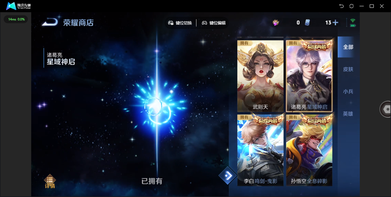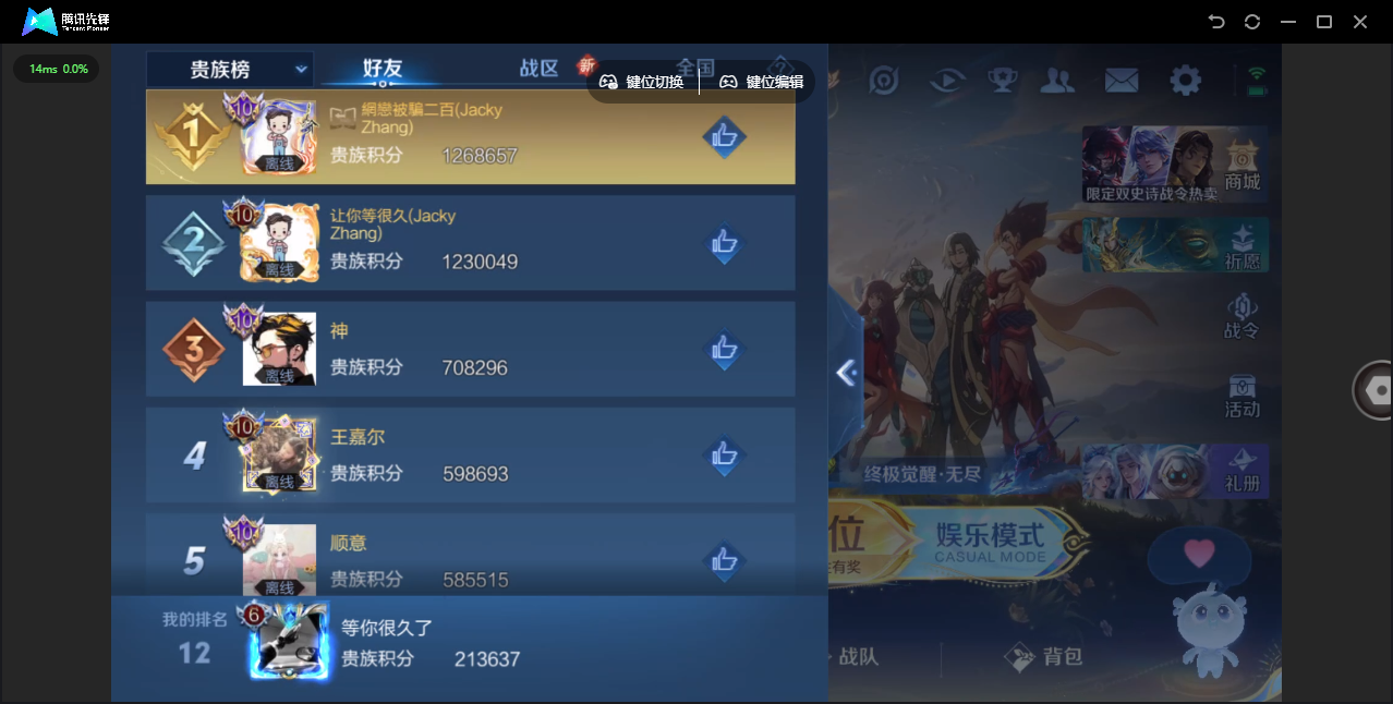 【QQ(安卓)】贵族0-贵族积分0万-0英雄-0皮肤 【抢先服】2万金币+回归150级铭文+改名卡