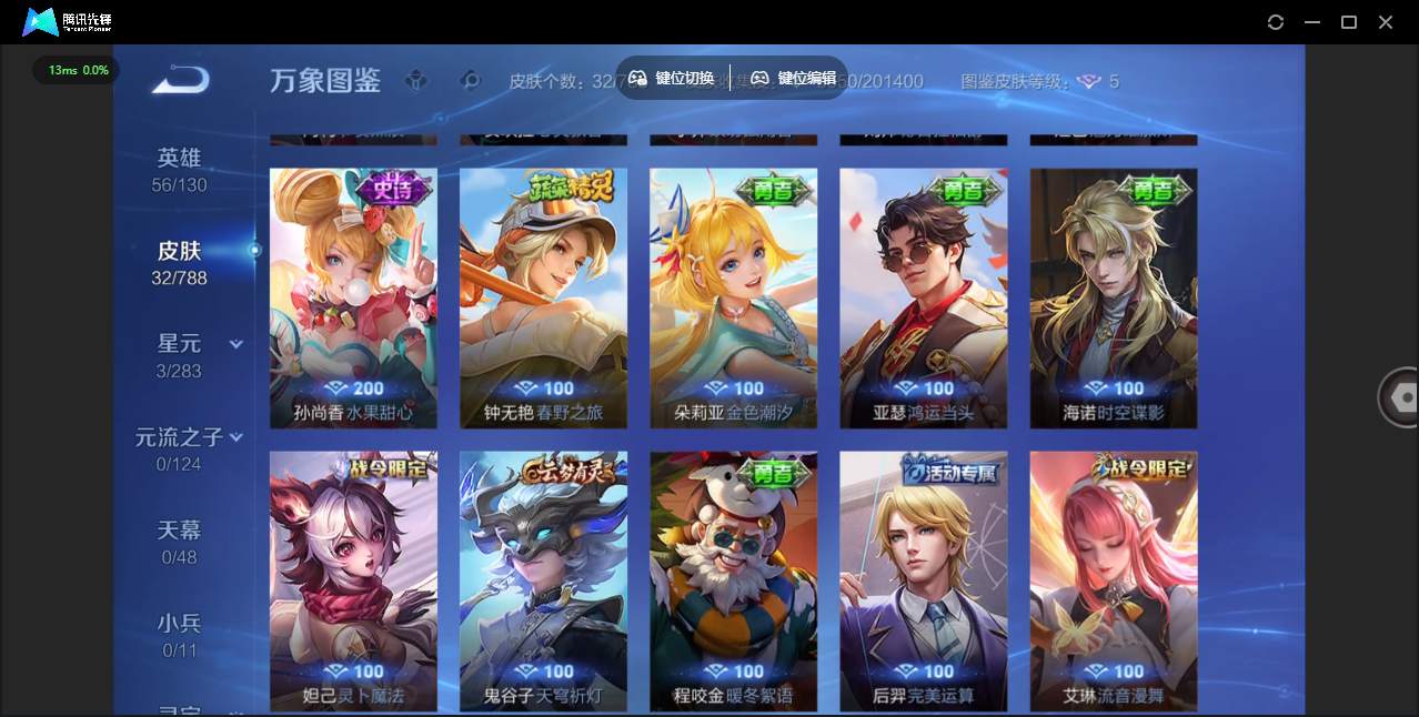 【QQ(安卓)】贵族0-贵族积分0万-0英雄-0皮肤 【抢先服】2万金币+回归150级铭文+改名卡