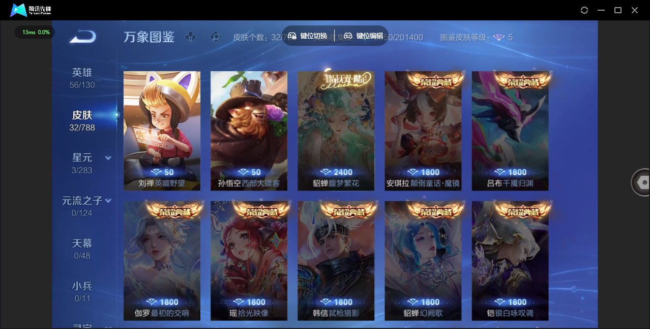 商品描述:安卓微信/最强王者/32皮肤/51英雄/1典藏/0珍品无双/0无双/0珍品传说/0传说/10史诗/2稀有英雄 【1 典藏皮肤】神鉴启示录 虞姬, 【10 史诗皮肤】百解令 蒙犽,燃音魔法 高渐离,德古拉伯爵 刘邦,地狱燃心 司空震,魅力维加斯 妲己,节奏热浪 阿轲,心灵骇客 安琪拉,缤纷独角兽 小乔,水果甜心 孙尚香,江河有灵 阿古朵,