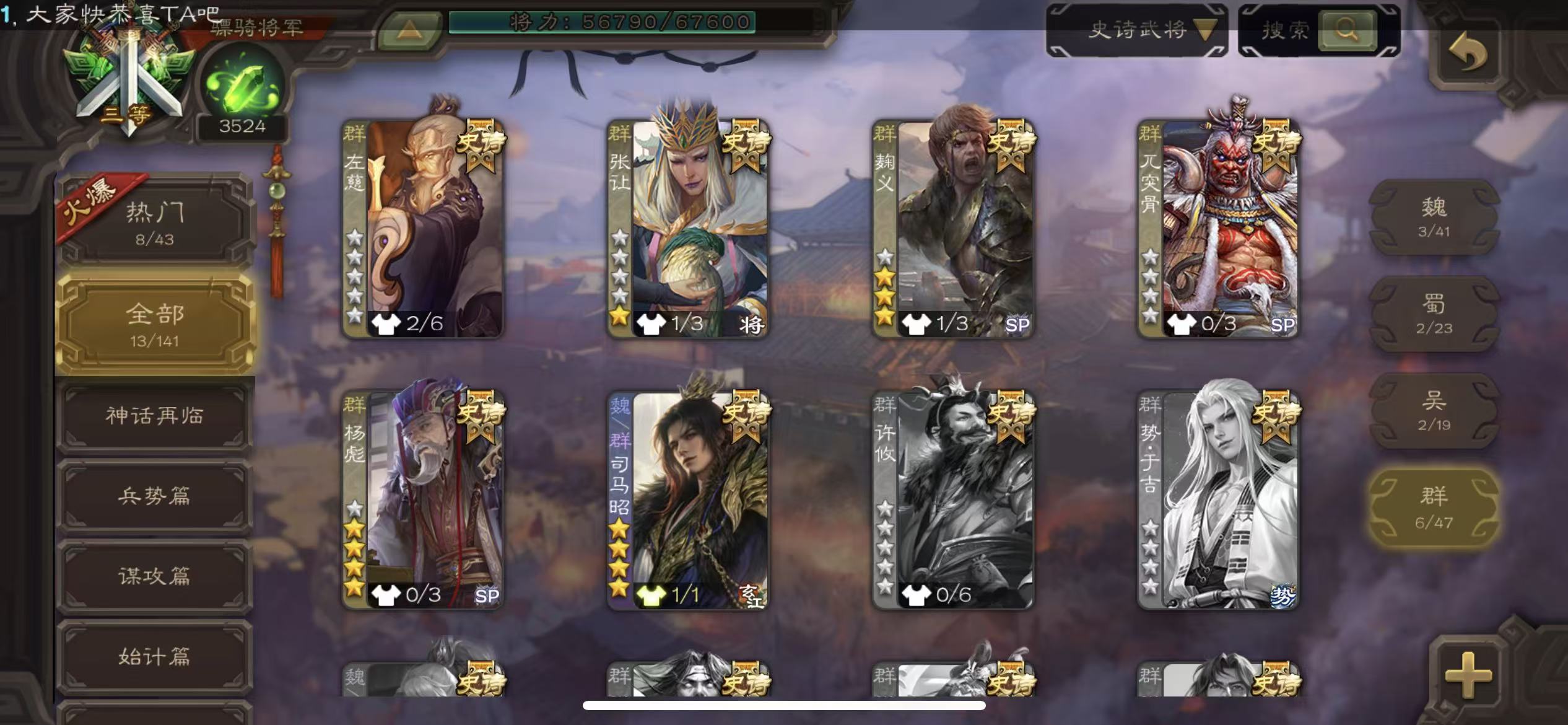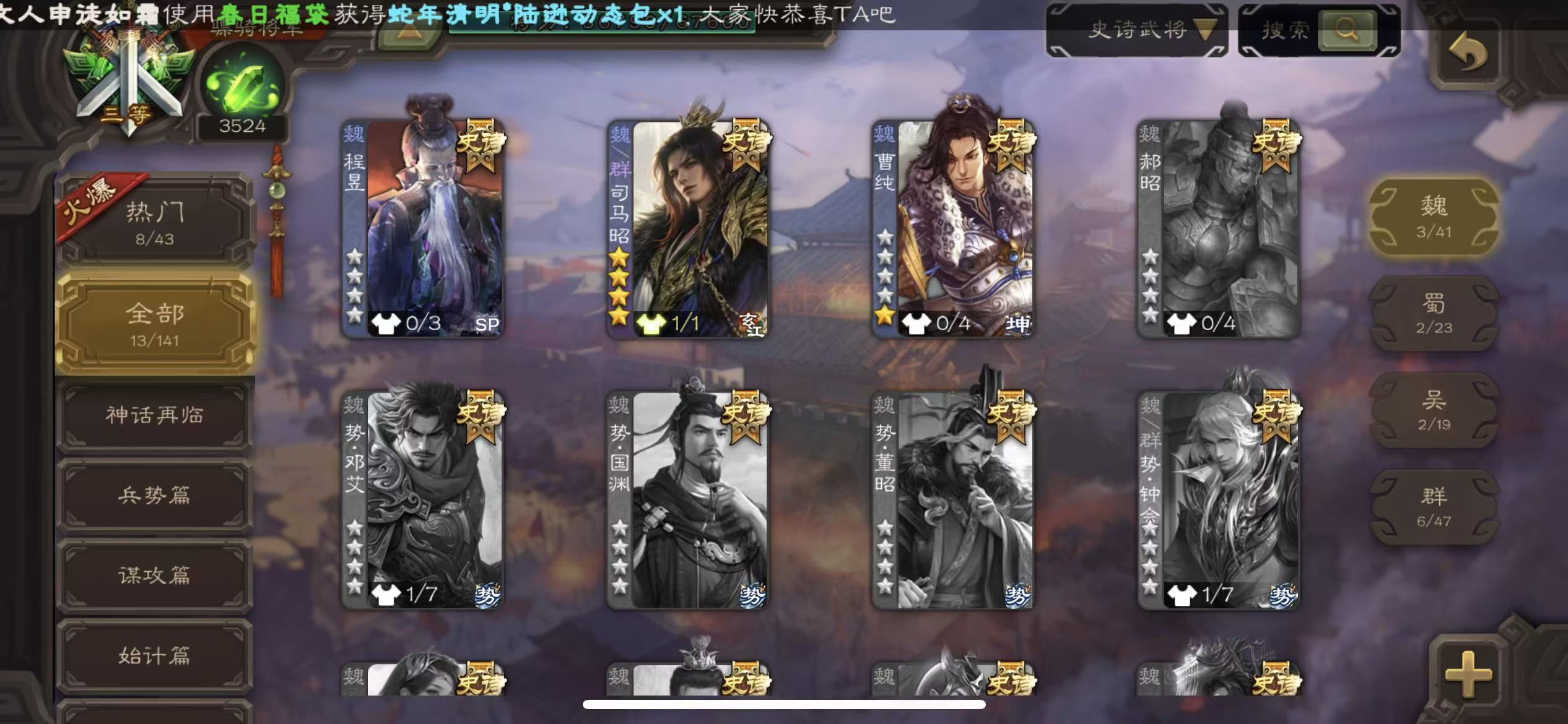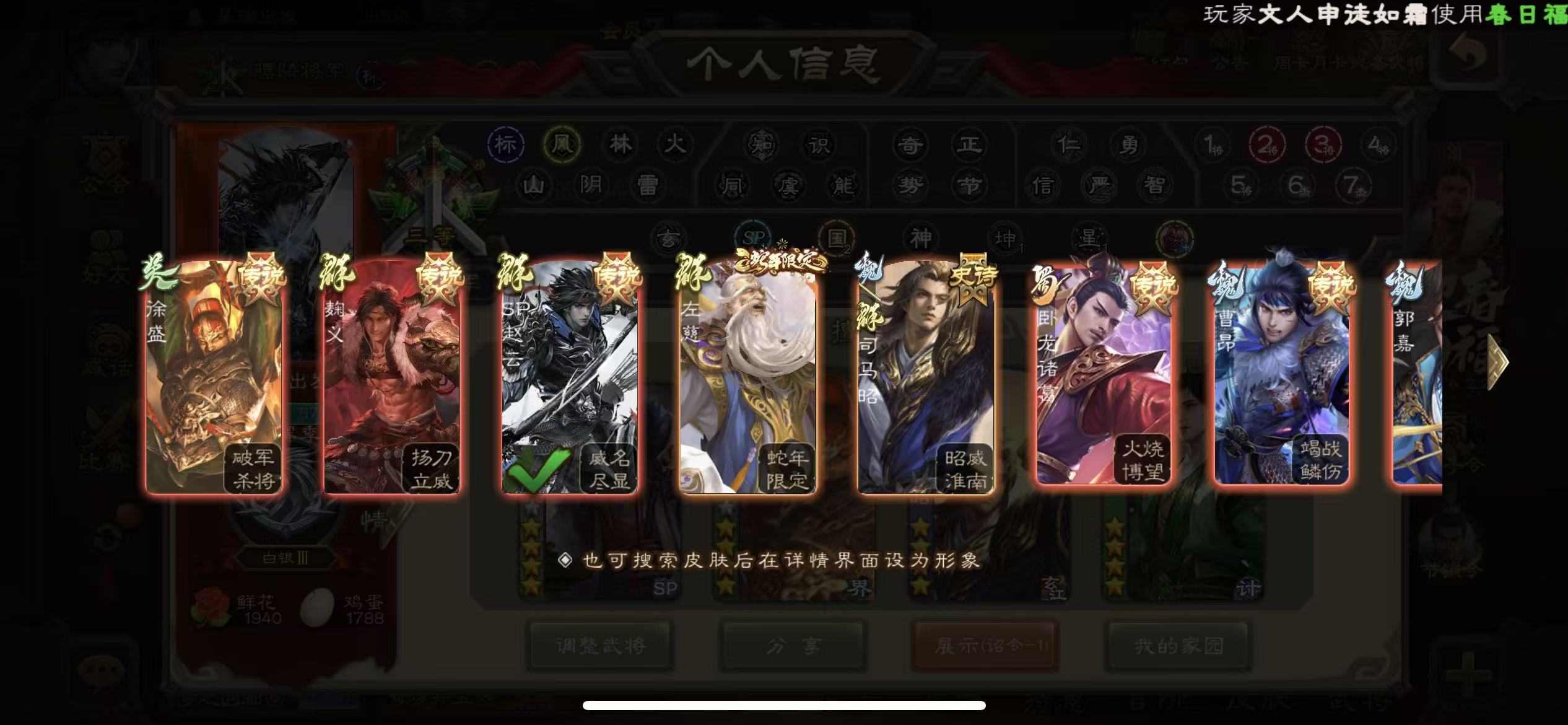商品描述:骠骑13史诗动态司马昭动态大宝杨彪骆驼动态白马动态左慈张让神赵云天子令sp赵云三卡