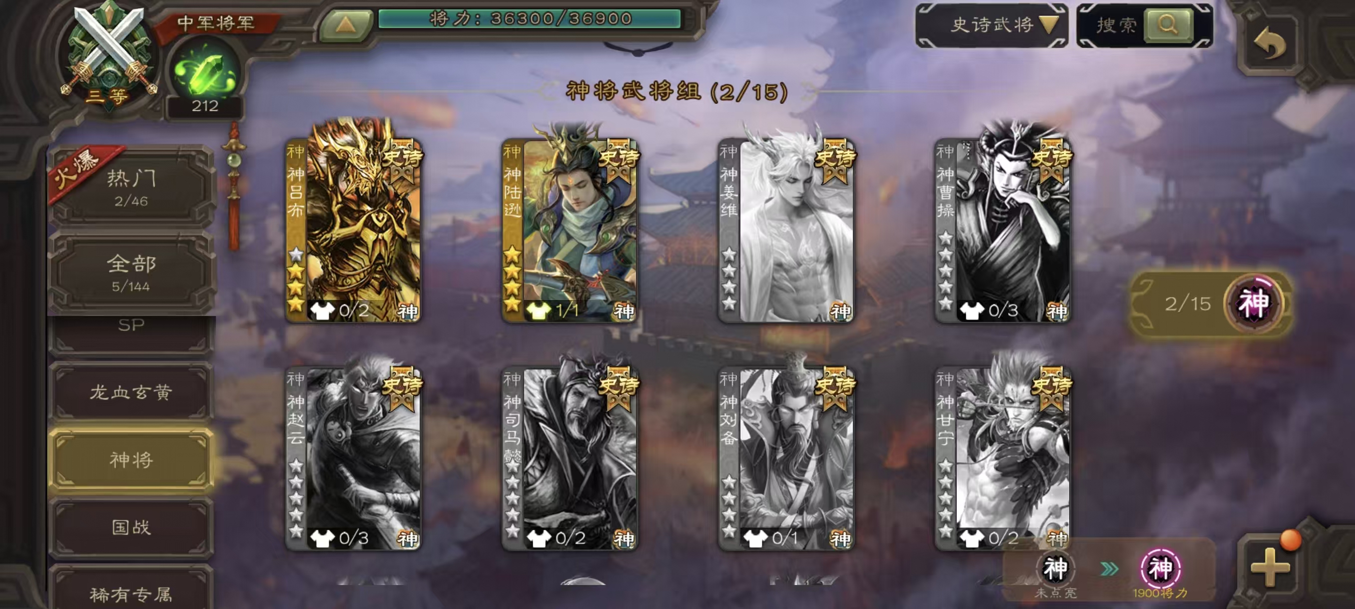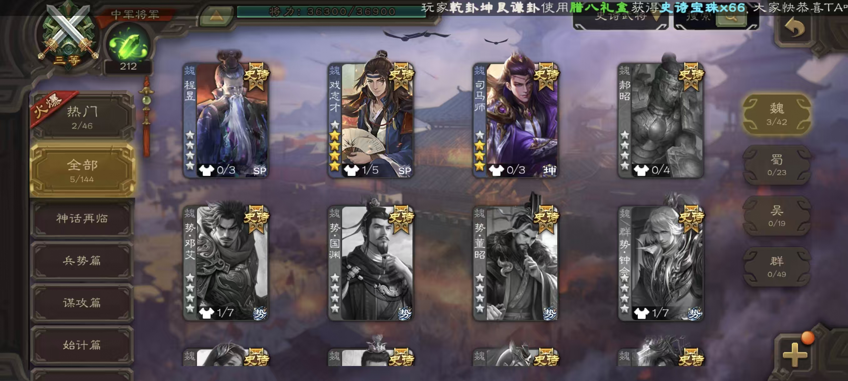 商品描述: 中军戏志才+动神陆逊+司马师+神吕布程昱5神将