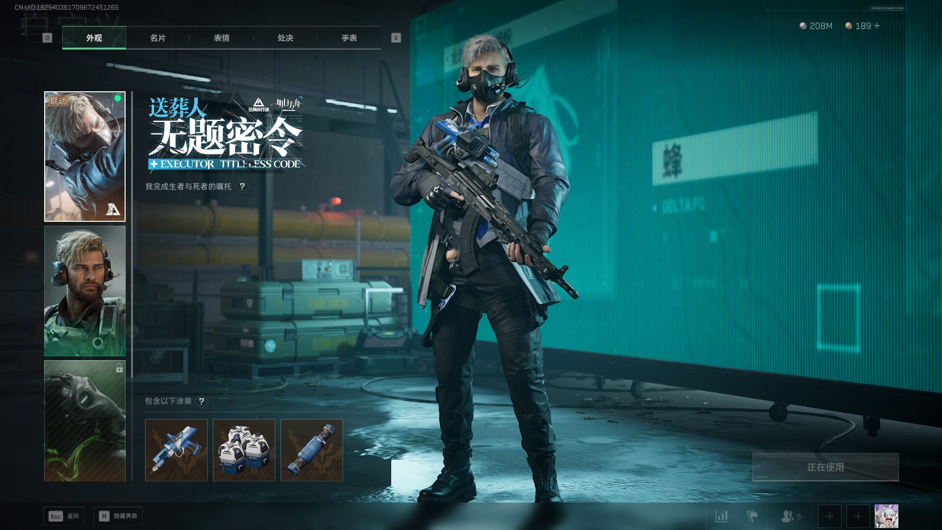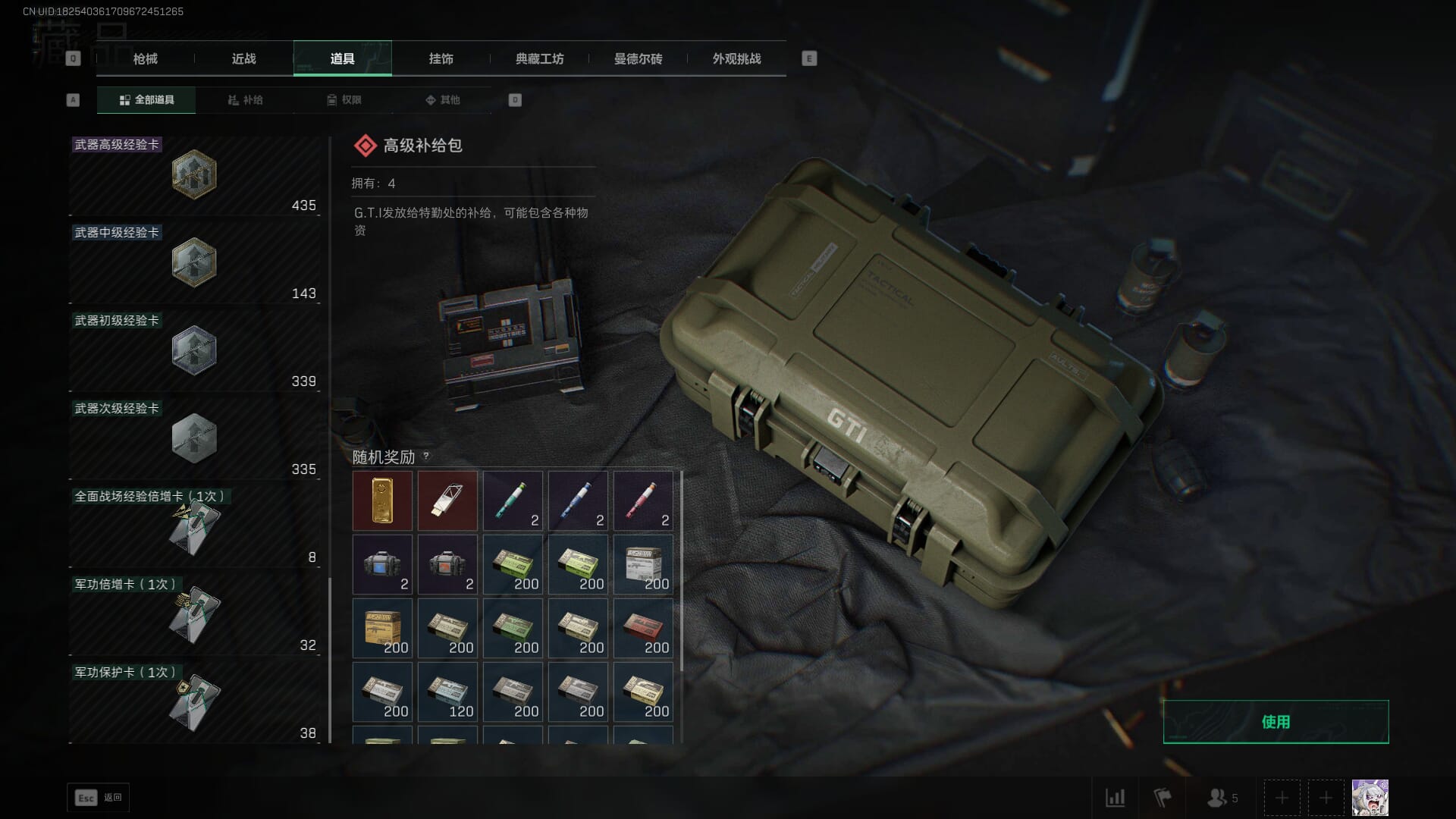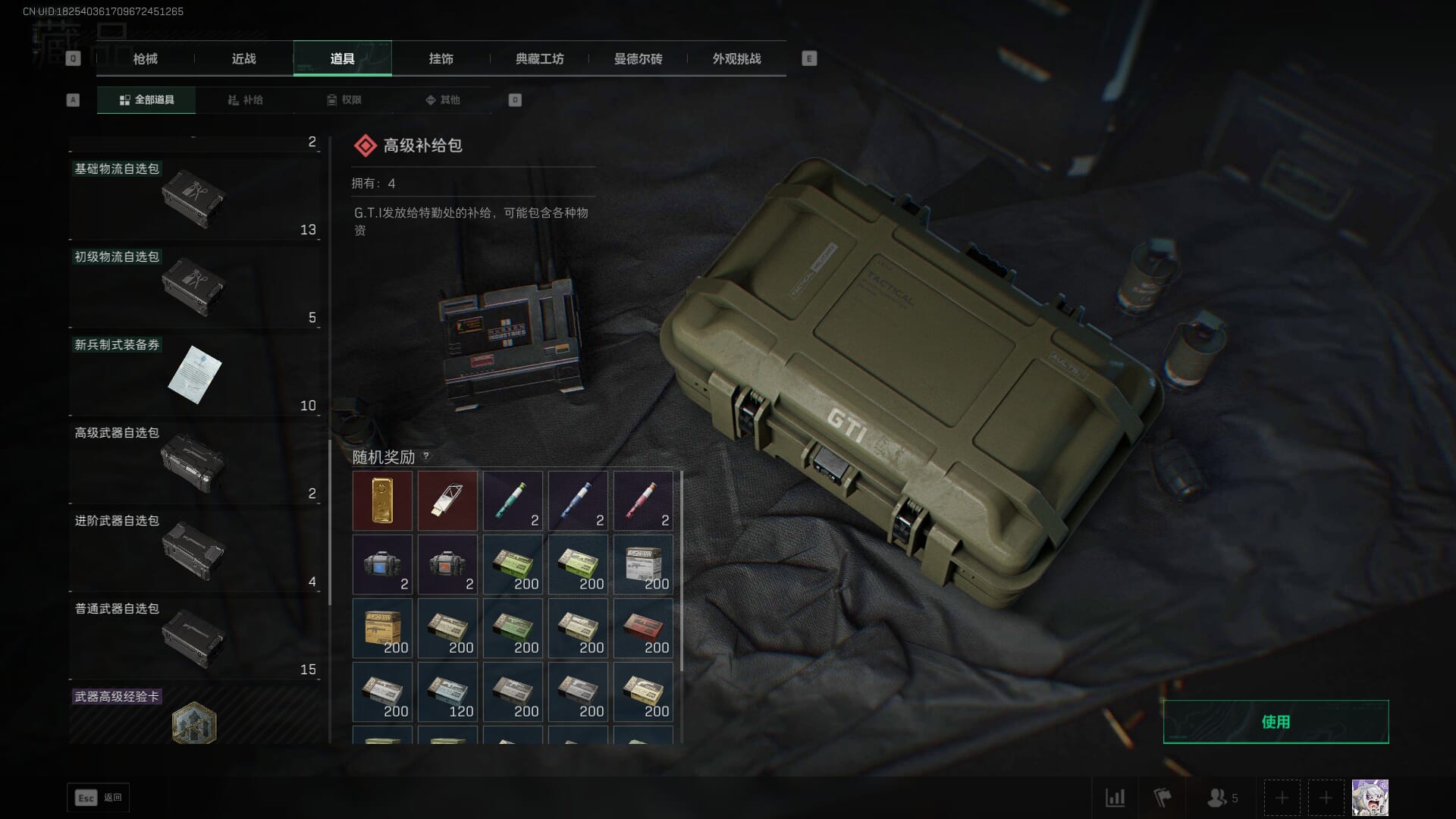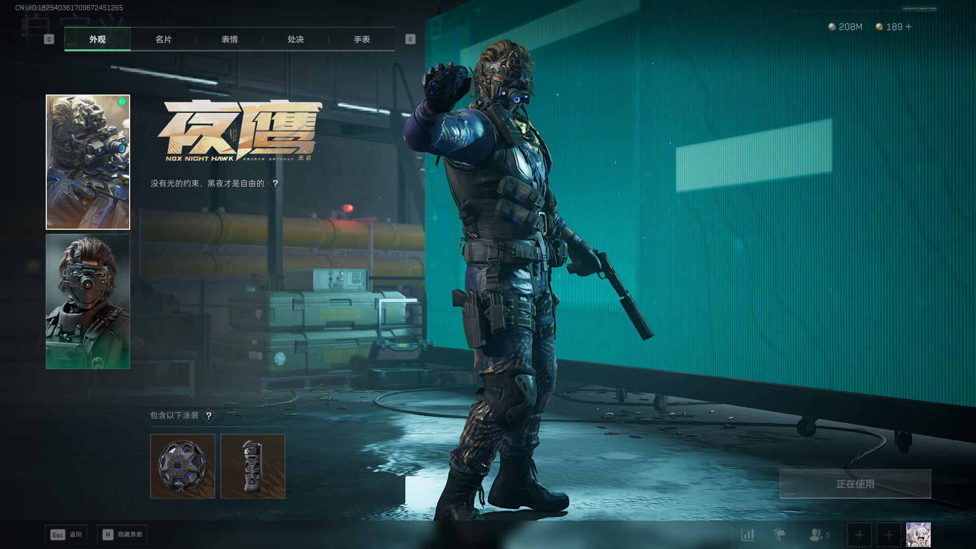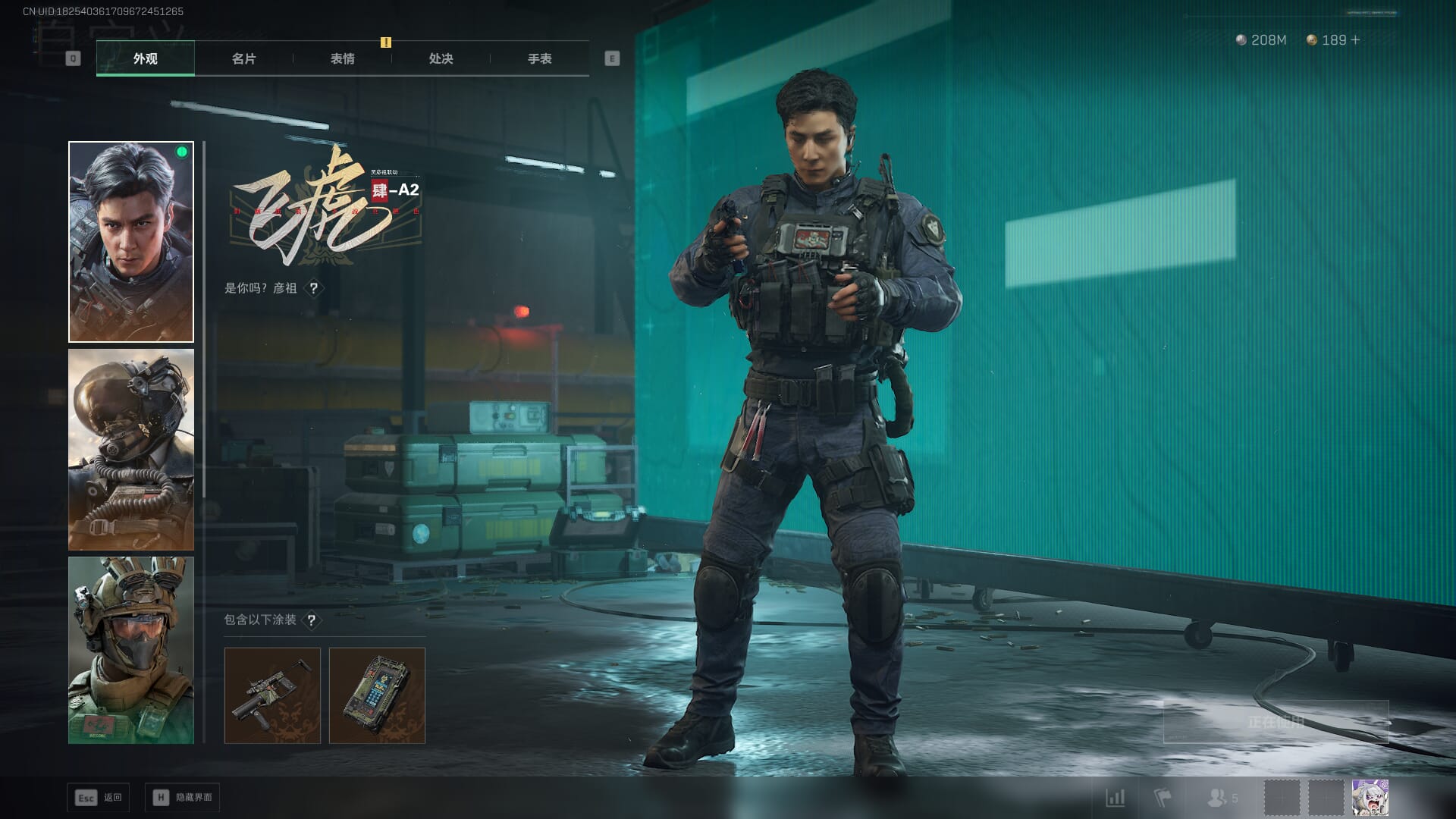 总资产:62.2M,哈夫币:84W,武器皮肤:5,黑鹰_,战场60级:列兵,【安全箱】基础安全箱;【特勤处等级】仓库LV.5,靶场LV.4,训练中心LV.4;【干员皮肤】骇爪维什戴尔,红狼电锯惊魂;【近战武器】近战武器-黑鹰;【步枪皮肤】M4A1突击步枪-阿米娅,SCAR-H战斗步枪-启航,KC17突击步枪-电锯惊魂;【狙击步枪皮肤】R93狙击步枪-维什戴尔;