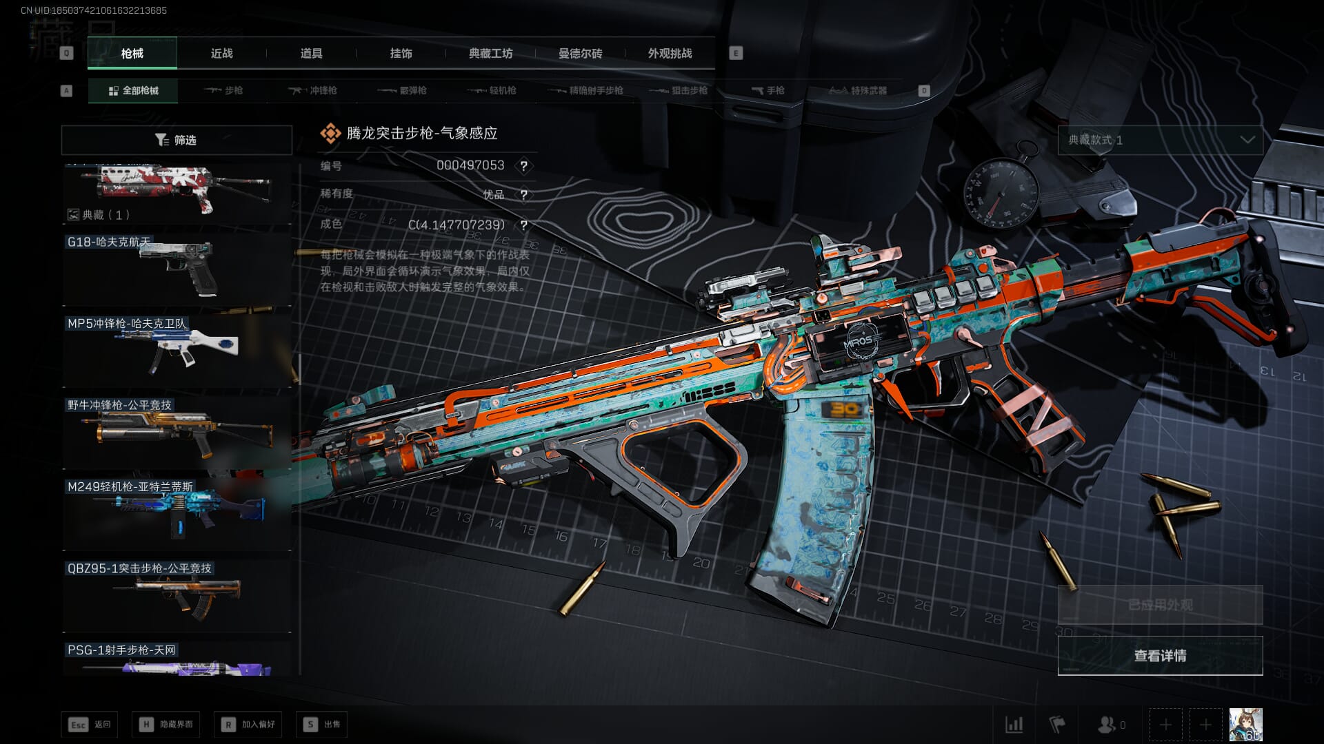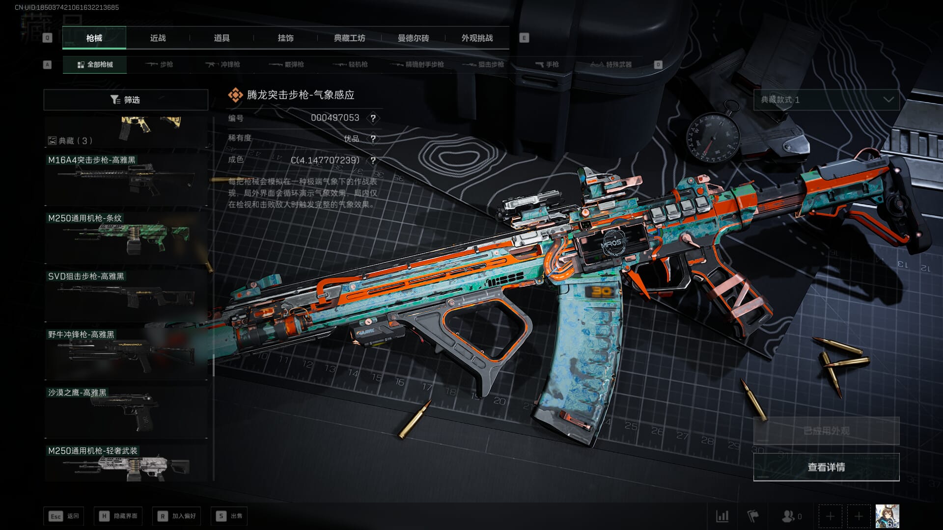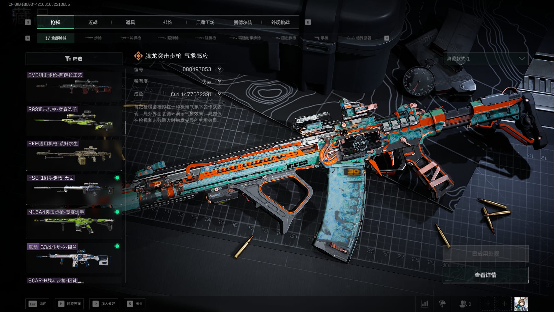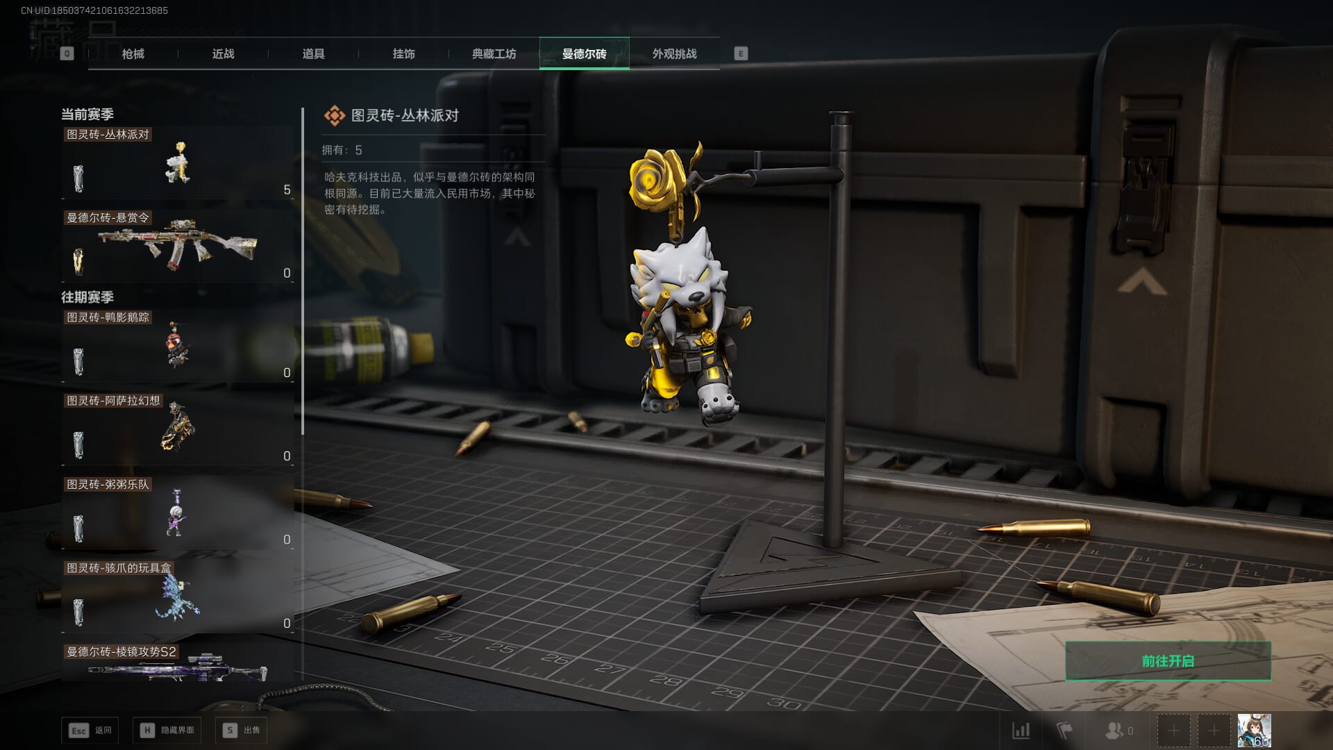 总资产:62.2M,哈夫币:84W,武器皮肤:5,黑鹰_,战场60级:列兵,【安全箱】基础安全箱;【特勤处等级】仓库LV.5,靶场LV.4,训练中心LV.4;【干员皮肤】骇爪维什戴尔,红狼电锯惊魂;【近战武器】近战武器-黑鹰;【步枪皮肤】M4A1突击步枪-阿米娅,SCAR-H战斗步枪-启航,KC17突击步枪-电锯惊魂;【狙击步枪皮肤】R93狙击步枪-维什戴尔;