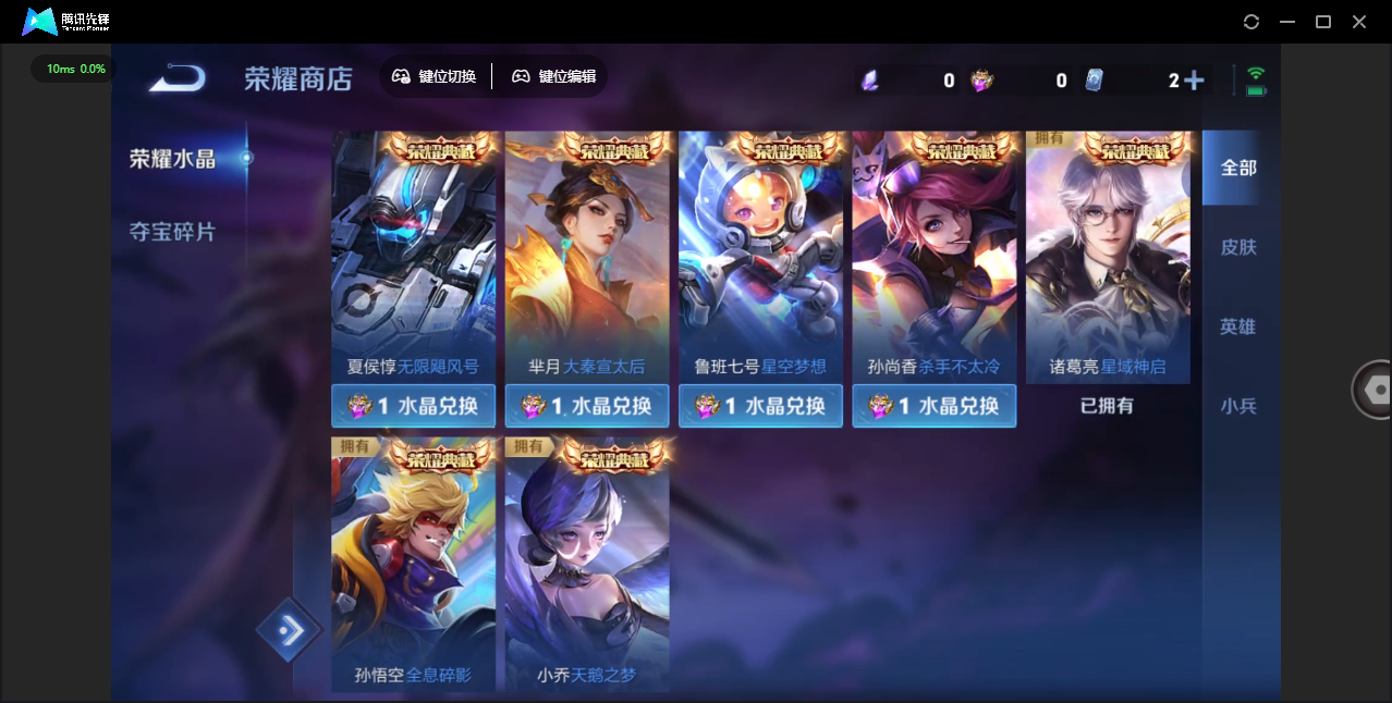 【QQ(安卓)】贵族0-贵族积分0万-0英雄-0皮肤 【抢先服】2万金币+回归150级铭文+改名卡