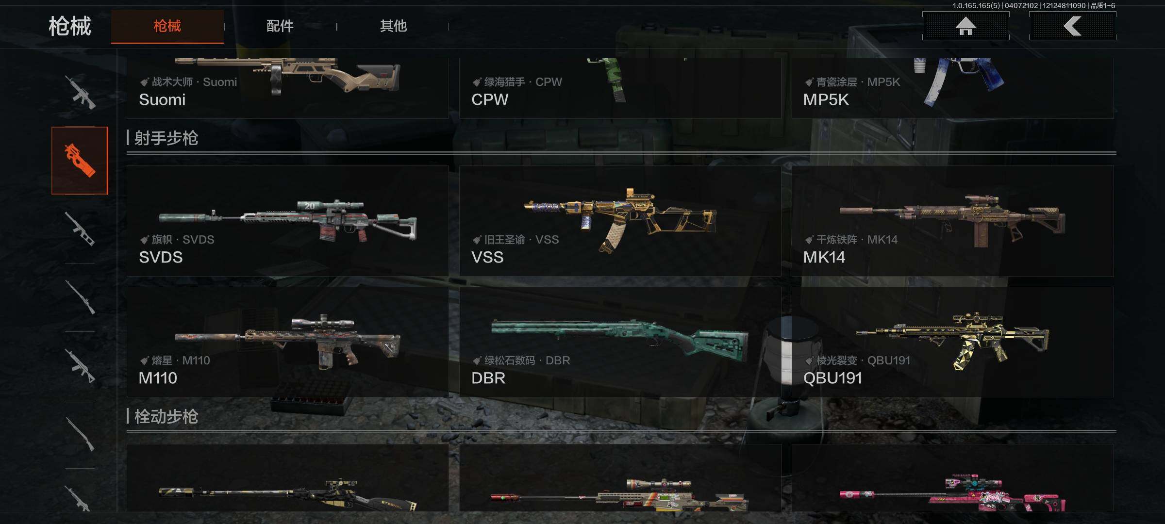 【AQD346】段位:新锐/仓库价值(百万):12/下弦月/收割者/地脉深处FAL/镀火熔金H416/告丧夜曲AR57/旧王圣谕QBZ191/利齿风暴MPX【AQZG2152】等级:30/段位:专家/仓库价值(百万):189.4/柯恩币:100000000/急袭弯刀/下弦月/寒牙手刺/裁决手杖剑/幽燕钛玄/苍穹利爪/盘牙彻甲短刃/深潜行者II/黑卡蒂/冥河/蝮蛇/白蔷薇斯黛拉/危崖魅影作战服/苍白隐者伪装服/长缨风擎AX50/棱光裂变QBU191/冰河碎影MK14/千炼铁阵MK14/黑金弹头P90/利齿风暴MPX/浮鳞影青QBZ192/旧王圣谕QBZ191/玉擎天工AN94/林中人FAL/竞技FAL/天工炉火A545/冲刺极限QBZ192
