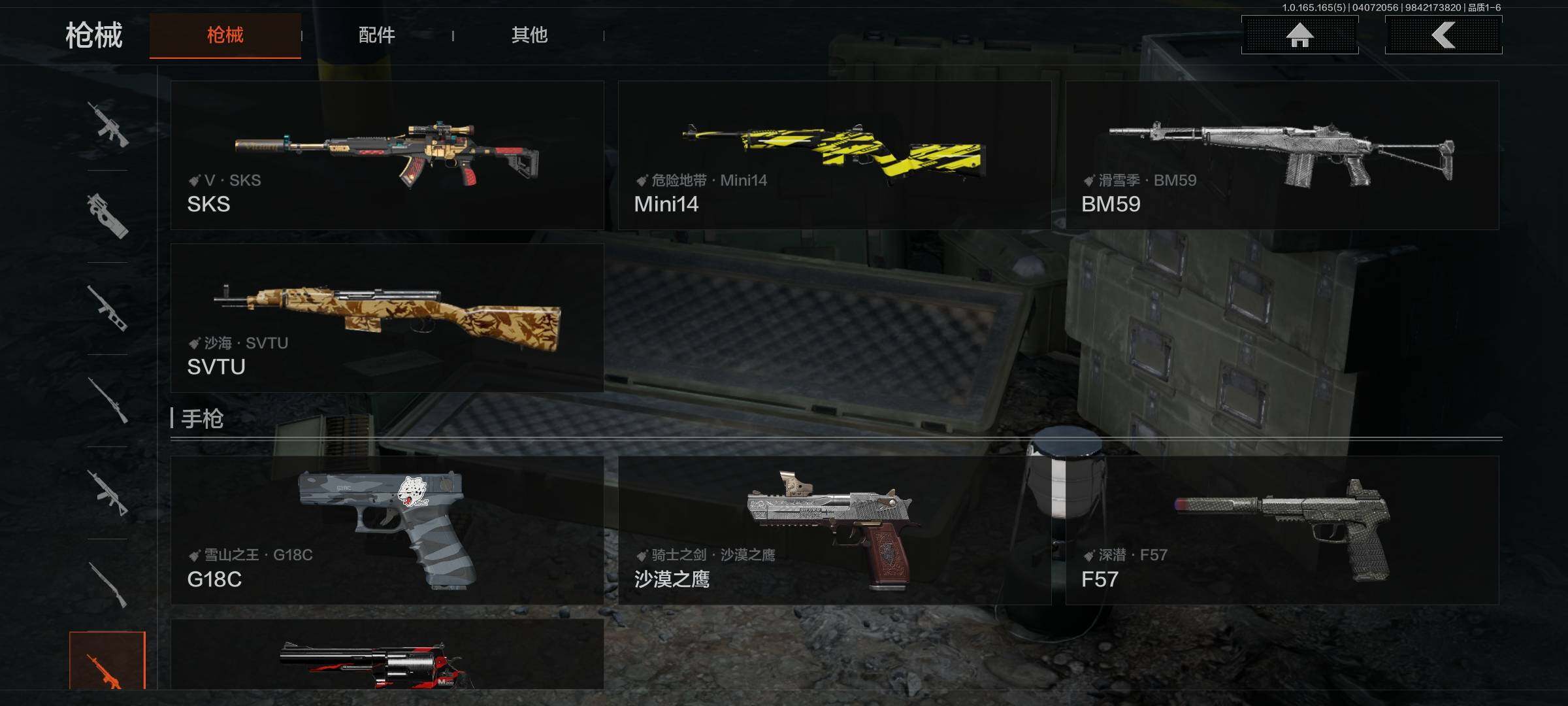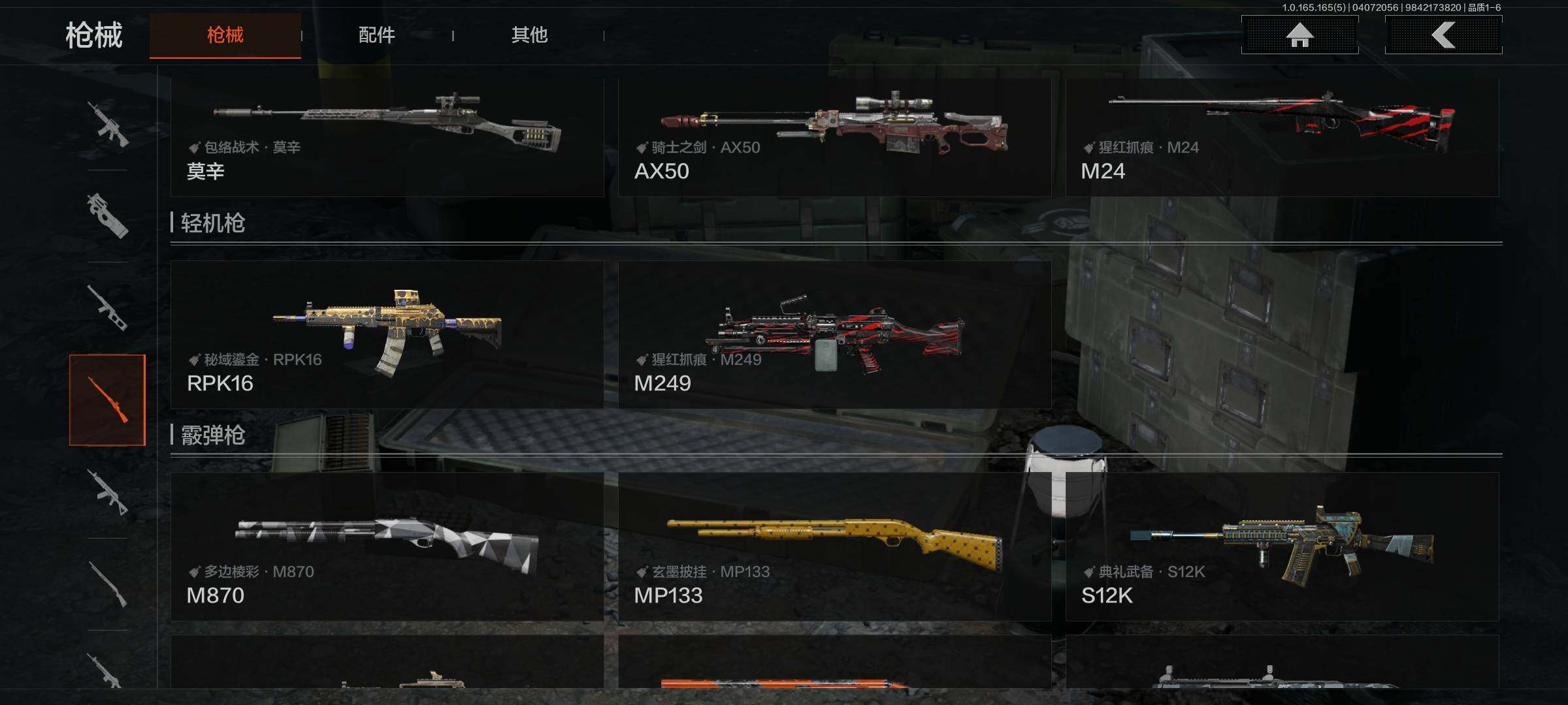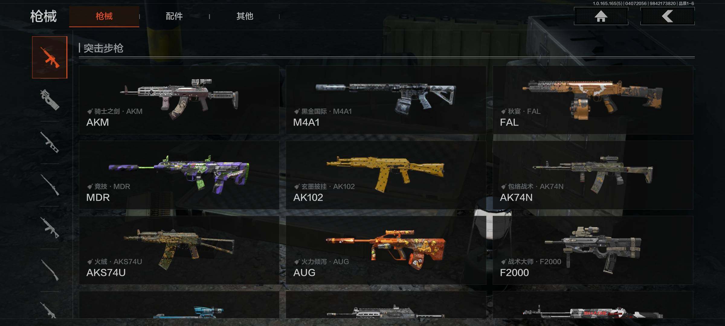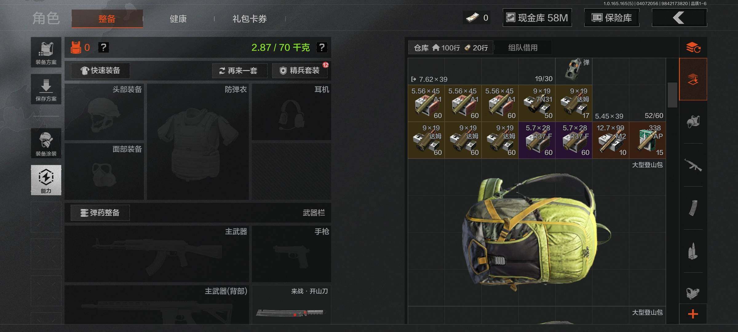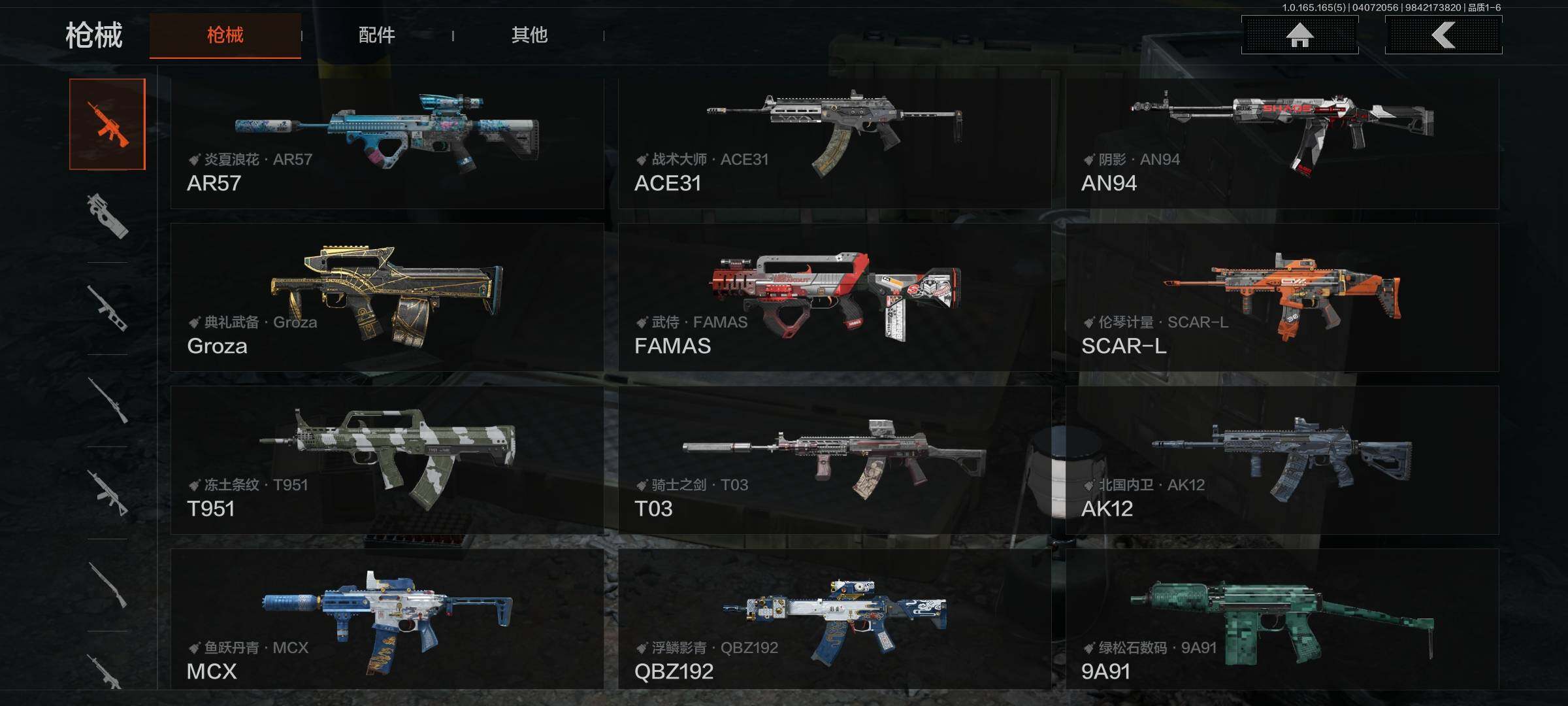 【AQQH1183】段位:新锐/仓库价值(百万):69/掠影马来剑/赤火炉心/工兵铲/秘密任务艾薇塔/镀火熔金H416/竞技风潮M4A1/百锻铁骑AEK/旗帜AEK/赤帽要塞AR57/千炼铁阵MK14/利齿风暴MPX/近卫荣誉RPK16/长夜千军武将/冲刺极限QBZ192【AQZG2152】等级:30/段位:专家/仓库价值(百万):189.4/柯恩币:100000000/急袭弯刀/下弦月/寒牙手刺/裁决手杖剑/幽燕钛玄/苍穹利爪/盘牙彻甲短刃/深潜行者II/黑卡蒂/冥河/蝮蛇/白蔷薇斯黛拉/危崖魅影作战服/苍白隐者伪装服/长缨风擎AX50/棱光裂变QBU191/冰河碎影MK14/千炼铁阵MK14/黑金弹头P90/利齿风暴MPX/浮鳞影青QBZ192/旧王圣谕QBZ191/玉擎天工AN94/林中人FAL/竞技FAL/天工炉火A545/冲刺极限QBZ192