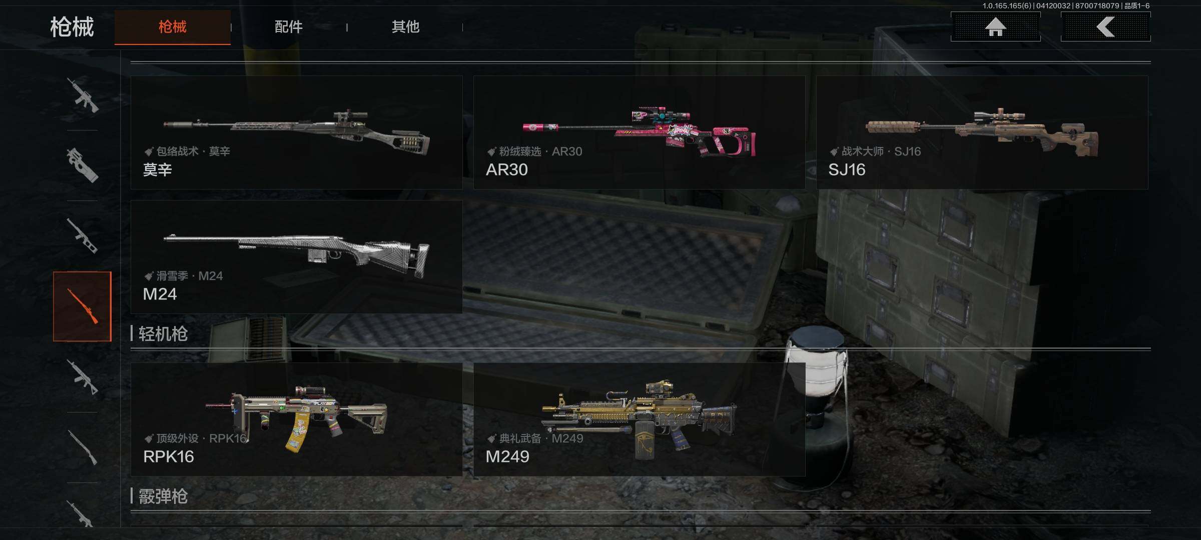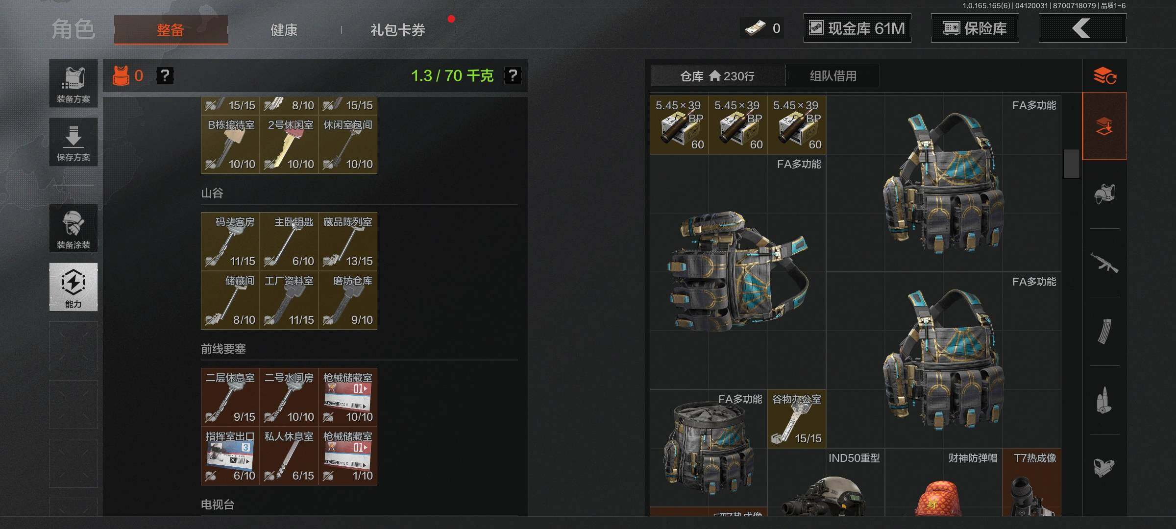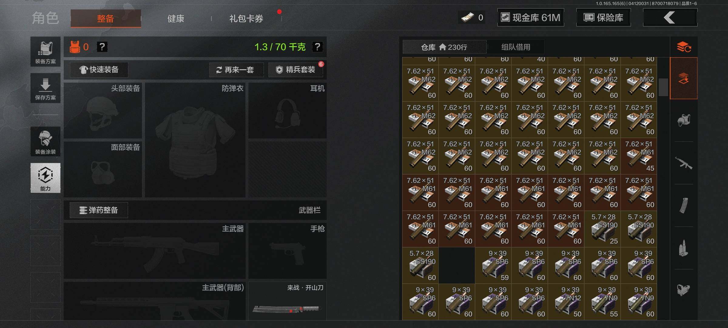 【AQD346】段位:新锐/仓库价值(百万):12/下弦月/收割者/地脉深处FAL/镀火熔金H416/告丧夜曲AR57/旧王圣谕QBZ191/利齿风暴MPX【AQZG2152】等级:30/段位:专家/仓库价值(百万):189.4/柯恩币:100000000/急袭弯刀/下弦月/寒牙手刺/裁决手杖剑/幽燕钛玄/苍穹利爪/盘牙彻甲短刃/深潜行者II/黑卡蒂/冥河/蝮蛇/白蔷薇斯黛拉/危崖魅影作战服/苍白隐者伪装服/长缨风擎AX50/棱光裂变QBU191/冰河碎影MK14/千炼铁阵MK14/黑金弹头P90/利齿风暴MPX/浮鳞影青QBZ192/旧王圣谕QBZ191/玉擎天工AN94/林中人FAL/竞技FAL/天工炉火A545/冲刺极限QBZ192
