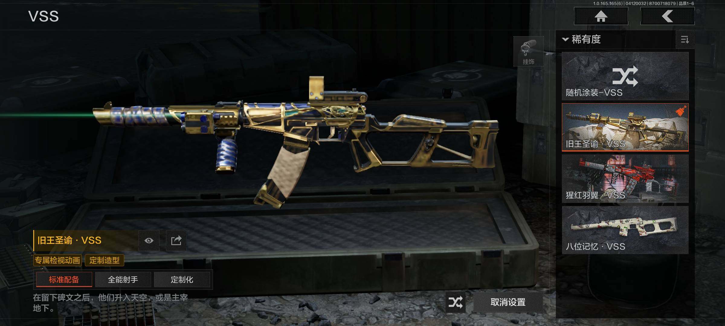 商品描述:【AQZG2160】等级:30/段位:王牌/仓库价值(百万):74/来战开山刀/旧王圣谕VSS/黑金弹头P90/旧王圣谕QBZ191/浮鳞影青QBZ192/告丧夜曲AR57
