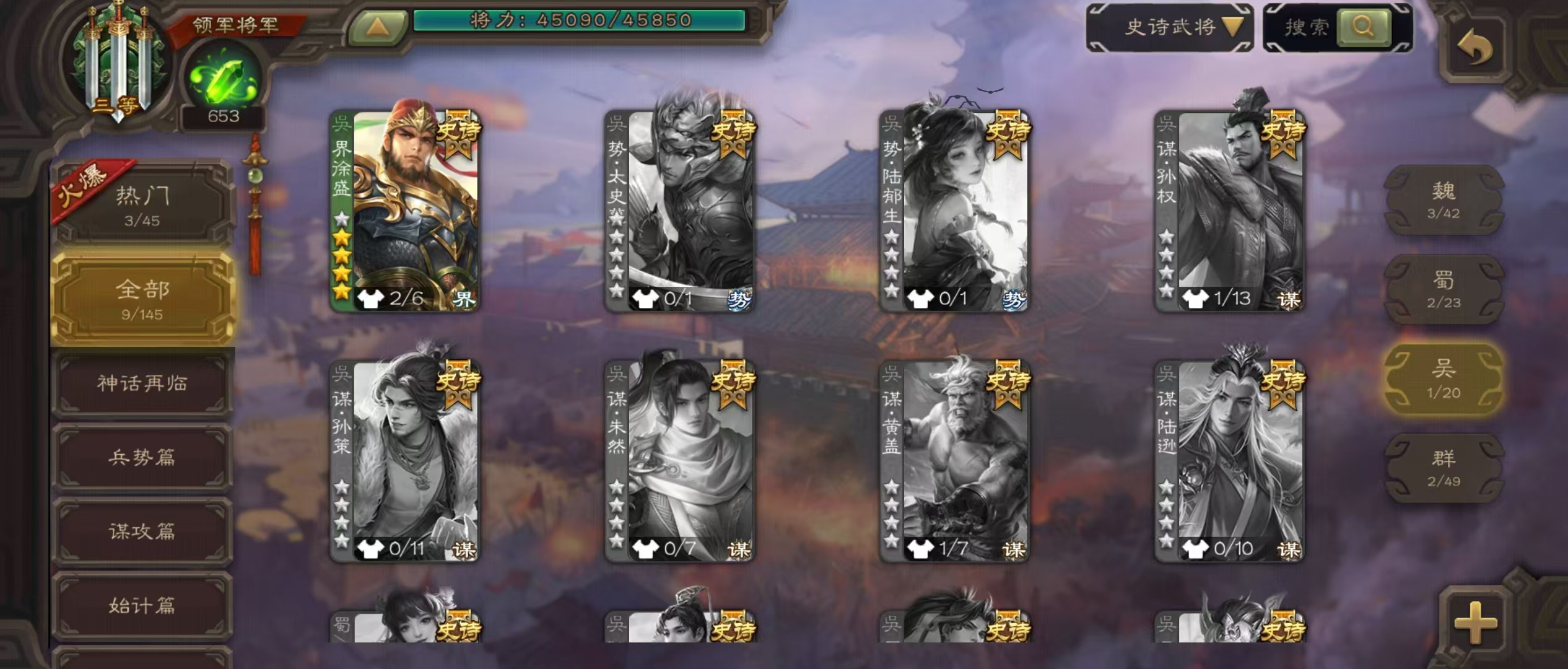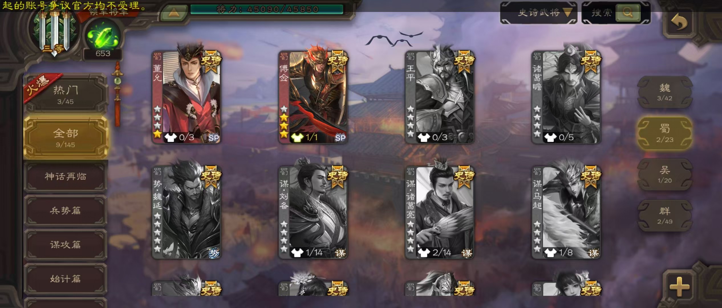 士兵火龙果势魏延5史诗8万羽毛8500将魂125招募令三卡
