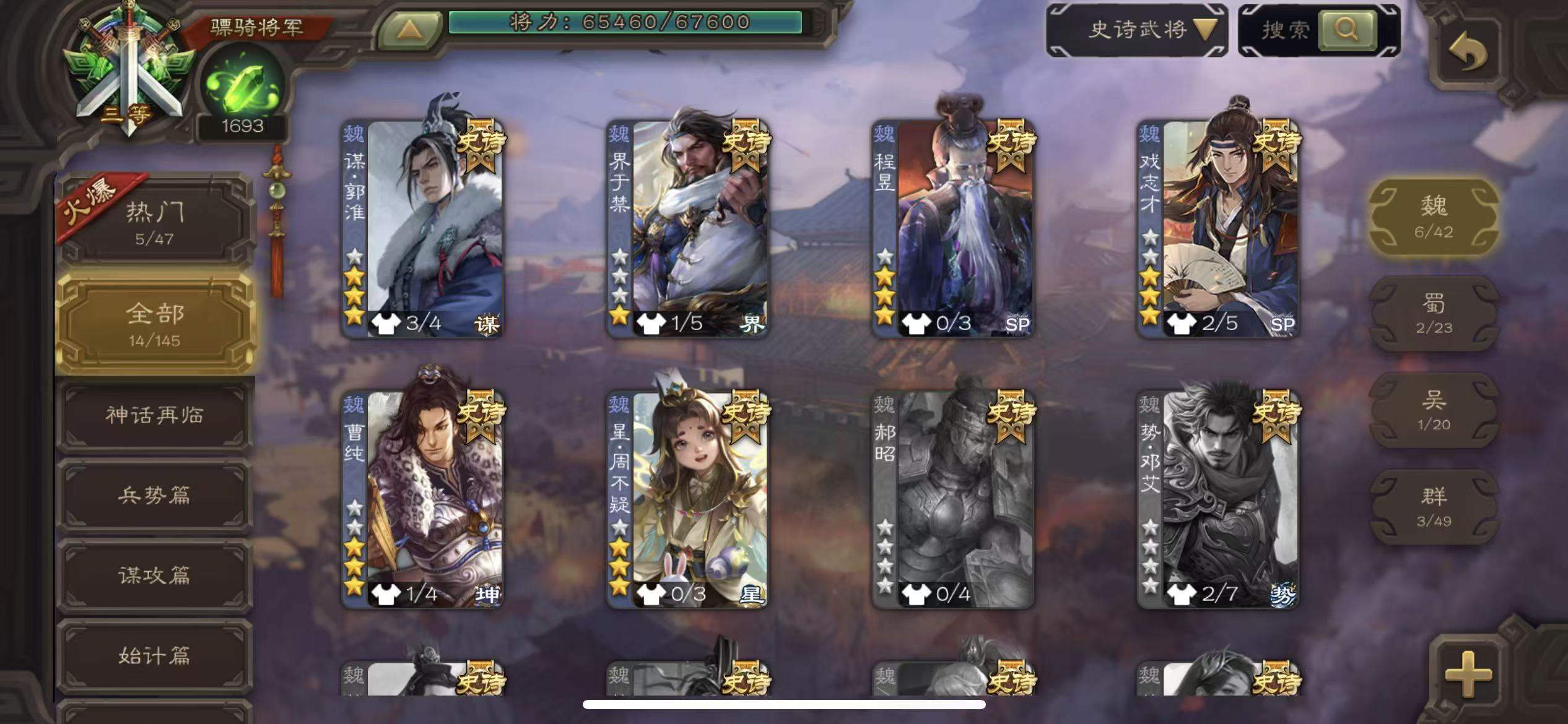 士兵火龙果势魏延5史诗8万羽毛8500将魂125招募令三卡