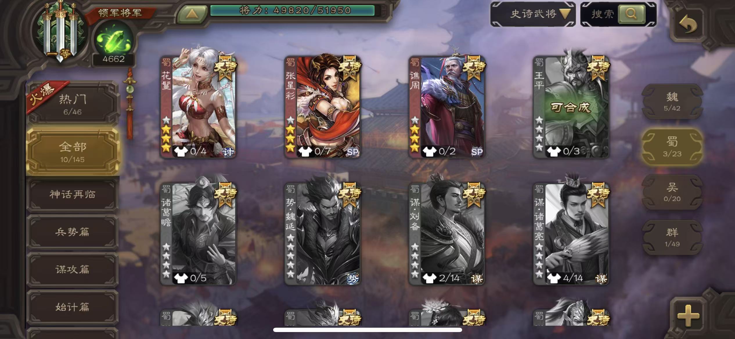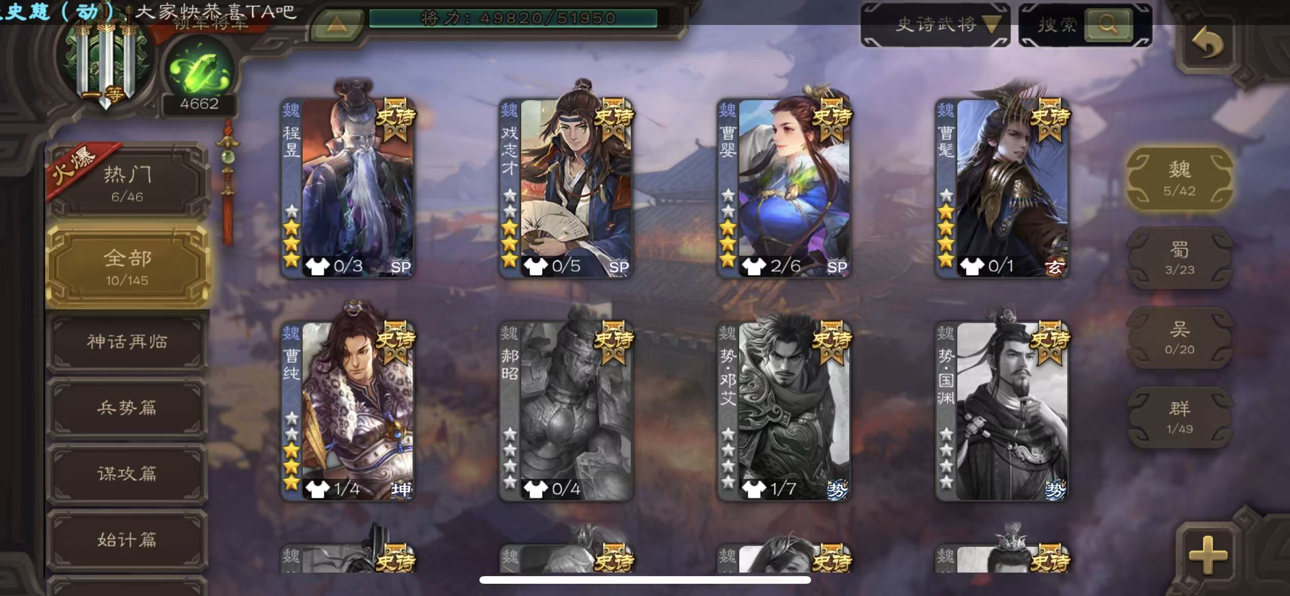 士兵火龙果势魏延5史诗8万羽毛8500将魂125招募令三卡