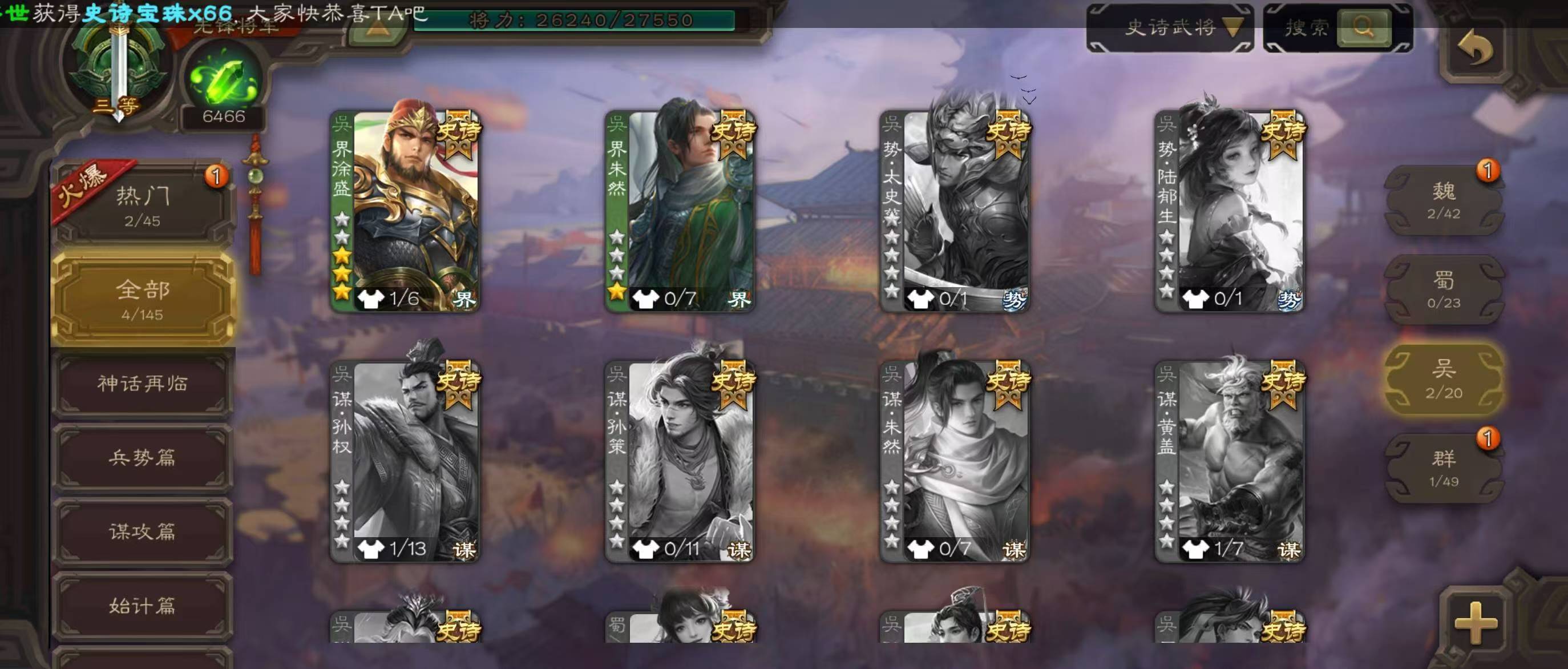 士兵火龙果势魏延5史诗8万羽毛8500将魂125招募令三卡
