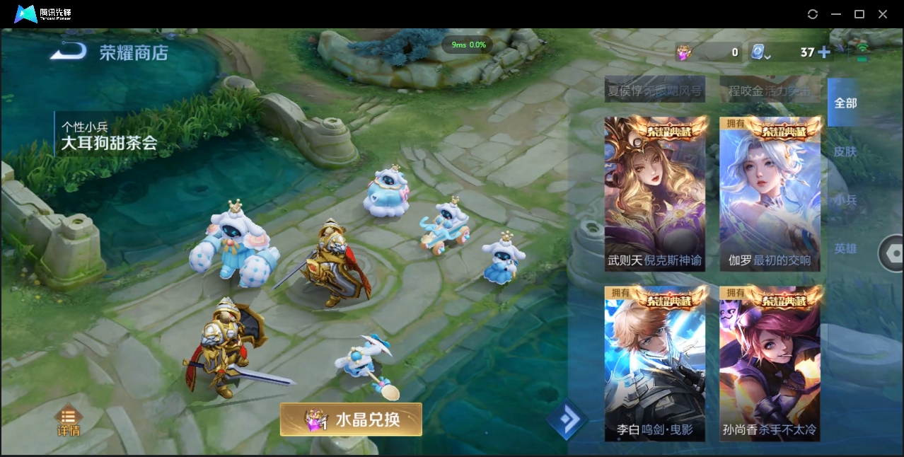 【QQ(安卓)】贵族0-贵族积分0万-0英雄-0皮肤 【抢先服】2万金币+回归150级铭文+改名卡