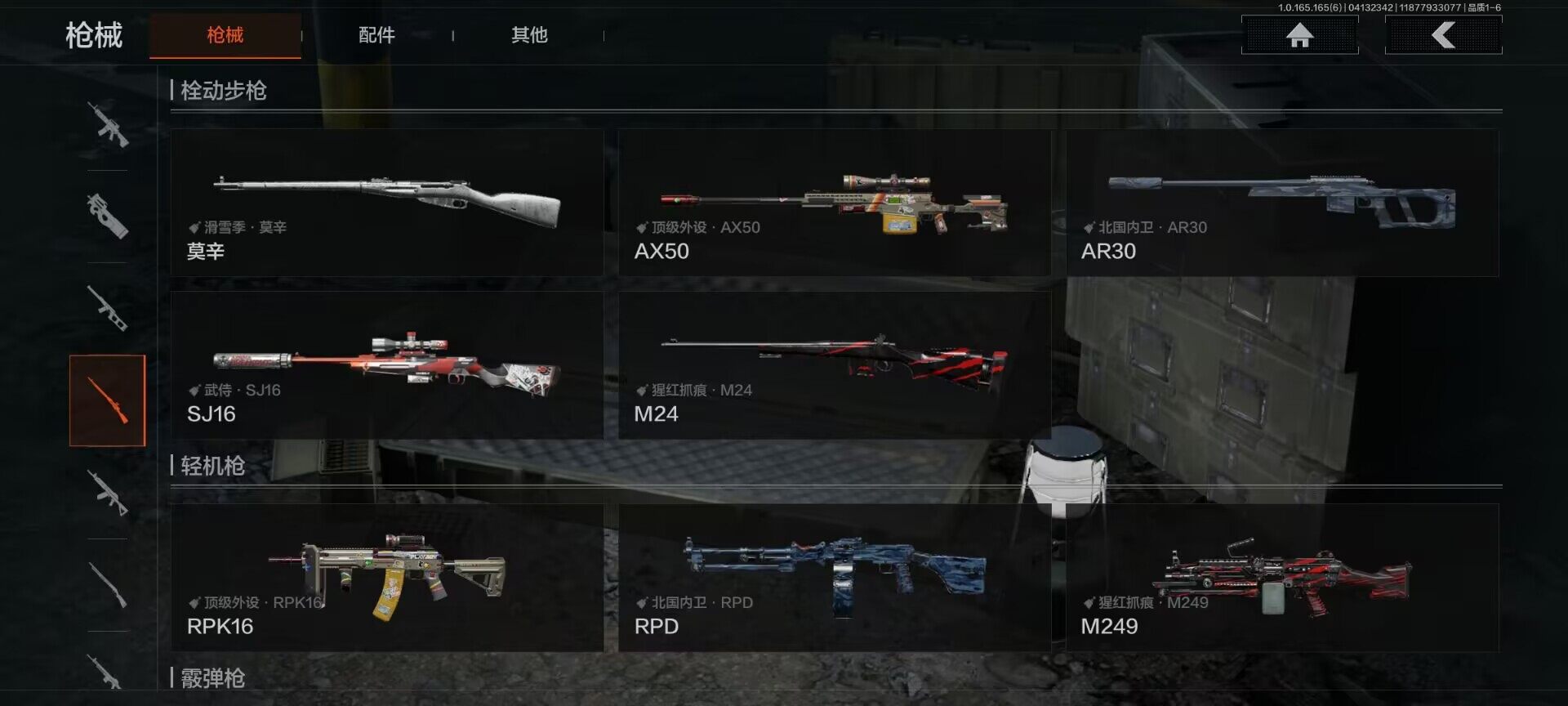 【AQQH1183】段位:新锐/仓库价值(百万):69/掠影马来剑/赤火炉心/工兵铲/秘密任务艾薇塔/镀火熔金H416/竞技风潮M4A1/百锻铁骑AEK/旗帜AEK/赤帽要塞AR57/千炼铁阵MK14/利齿风暴MPX/近卫荣誉RPK16/长夜千军武将/冲刺极限QBZ192【AQZG2152】等级:30/段位:专家/仓库价值(百万):189.4/柯恩币:100000000/急袭弯刀/下弦月/寒牙手刺/裁决手杖剑/幽燕钛玄/苍穹利爪/盘牙彻甲短刃/深潜行者II/黑卡蒂/冥河/蝮蛇/白蔷薇斯黛拉/危崖魅影作战服/苍白隐者伪装服/长缨风擎AX50/棱光裂变QBU191/冰河碎影MK14/千炼铁阵MK14/黑金弹头P90/利齿风暴MPX/浮鳞影青QBZ192/旧王圣谕QBZ191/玉擎天工AN94/林中人FAL/竞技FAL/天工炉火A545/冲刺极限QBZ192
