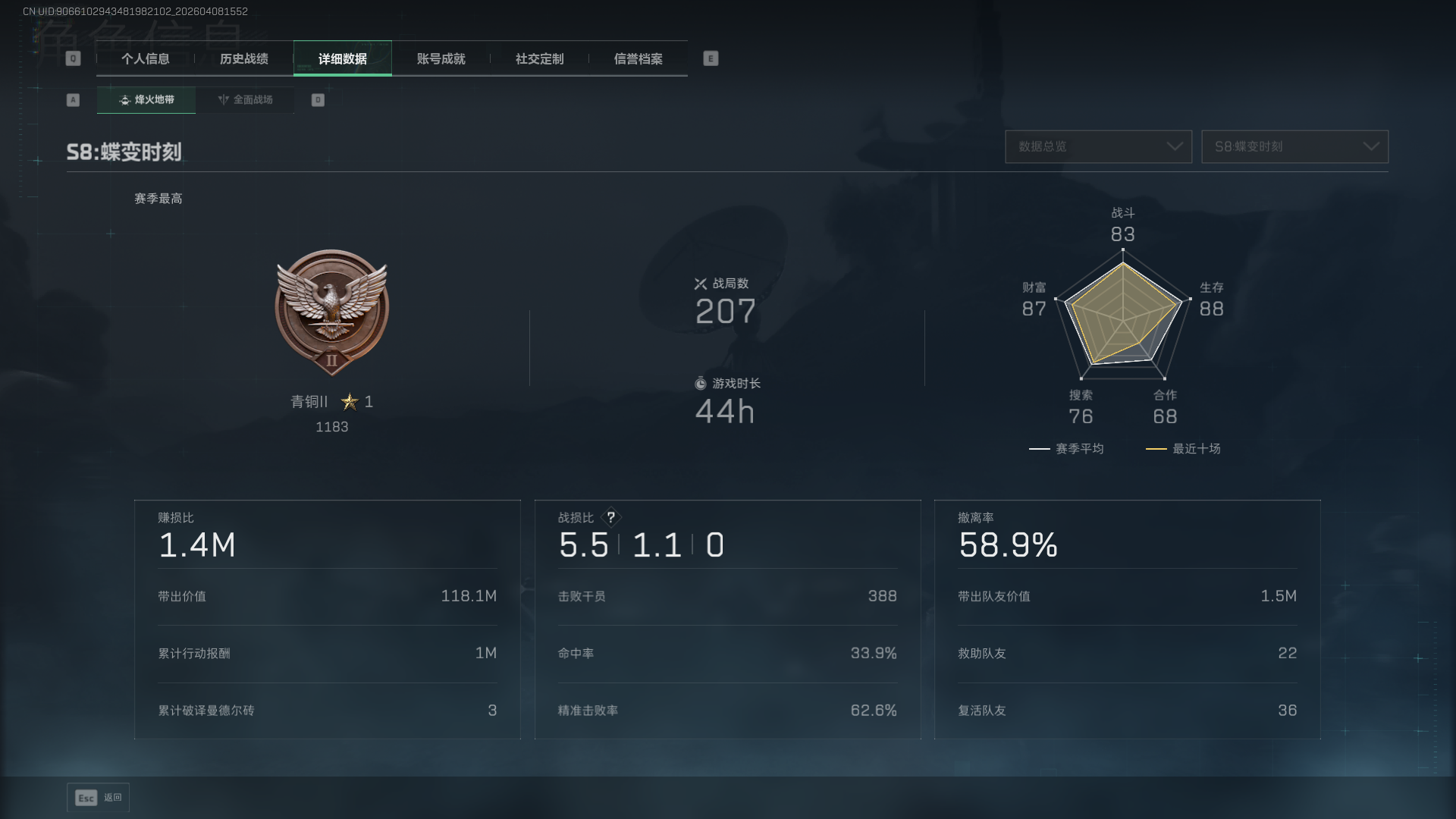 44m总资产-40490k哈伏币-36烽火等级-青铜-1战场等级-无军衔