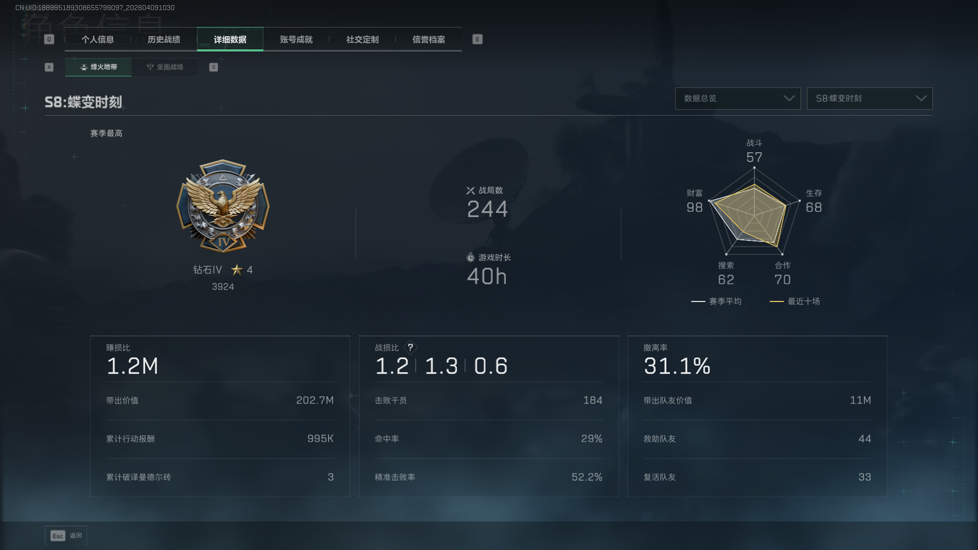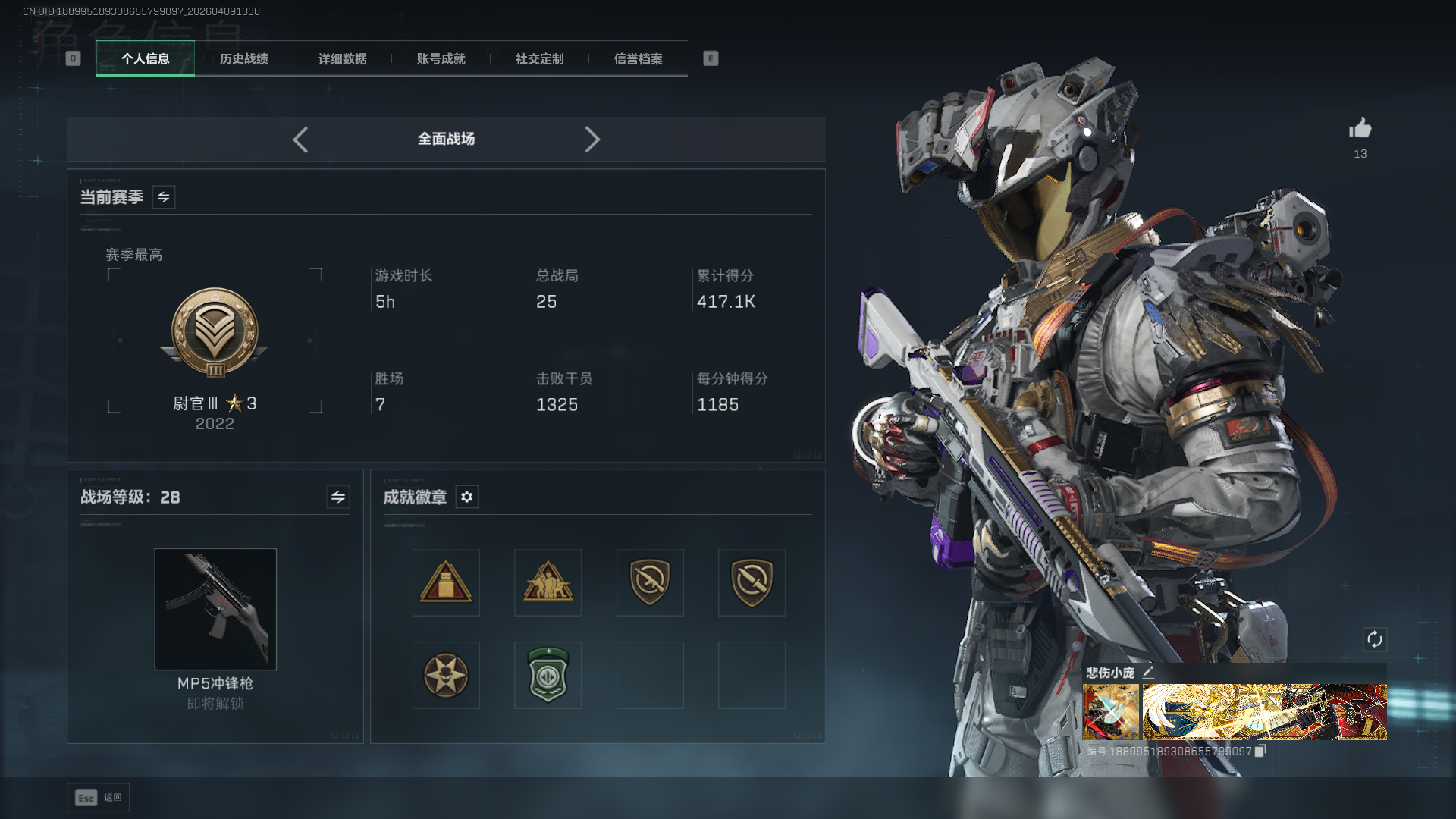 44m总资产-40490k哈伏币-36烽火等级-青铜-1战场等级-无军衔