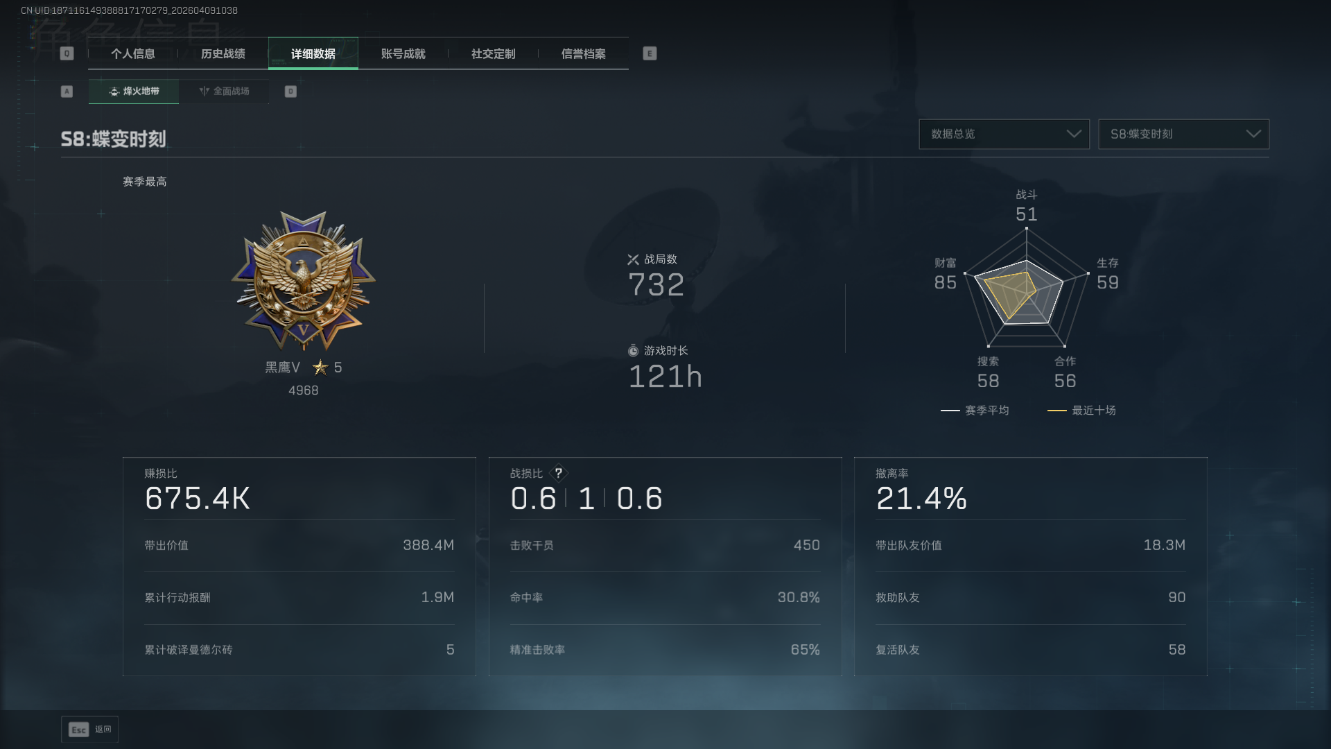44m总资产-40490k哈伏币-36烽火等级-青铜-1战场等级-无军衔
