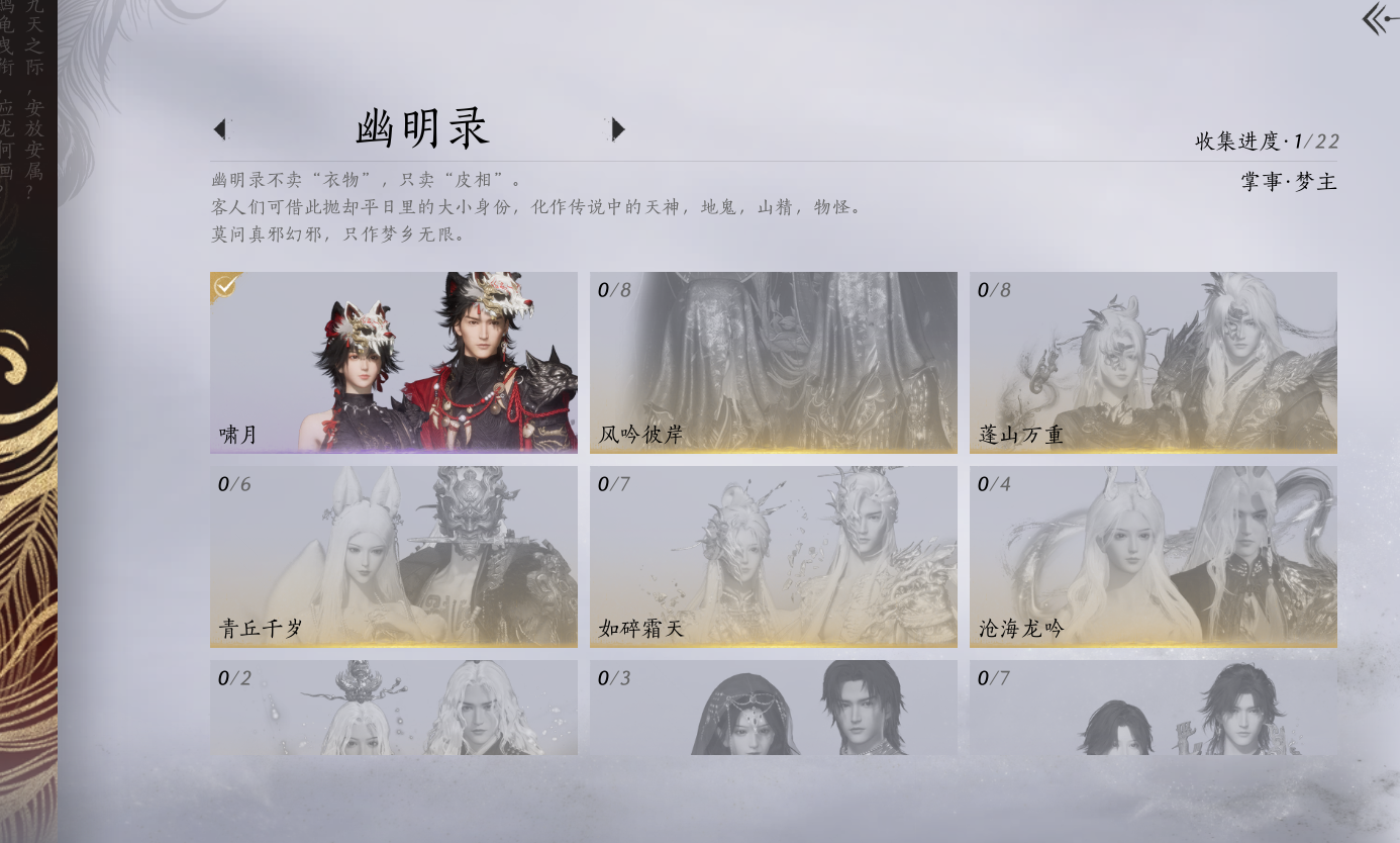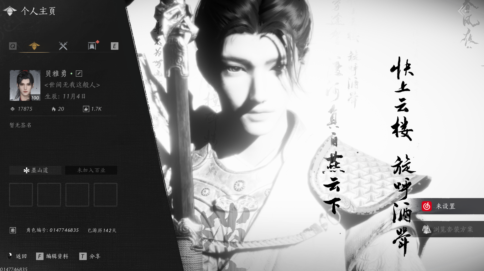 XY-076654477 角色性别【文本】女 【绝境】 【有换绑CD】 【不可换绑】 【未注册】 【不支持人脸包赔】 【女】 【是】 【是】 【否】XY-076643637 风华值21989 武林造诣(鹅)35550 已用八音窍数量3 未用八音窍数量0 等级100 角色等级100 角色性别【文本】男 【无换绑CD】 【绝境】 【无冷却】 【不支持人脸包赔】 【男】 【手机帐号】 【网易手机账号】 【是】 【是】 【未拥有】 【已知晓】 【自己上传】 稀有套装3 稀有武学奇术1 套装14 武学奇术1 稀有套装:有狐绥绥,乌纱红漪,晏平生; 稀有武学奇术:一雷惊蛰; 套装:清河强者,金池鲤,翠羽顾,江湖客,逐红花,一心三藏,丹雀,午风清,雁还乡,射虎南山,宿露轻盈,驰走西风,相思曲,云中锦书; 武学奇术:墨泼风;