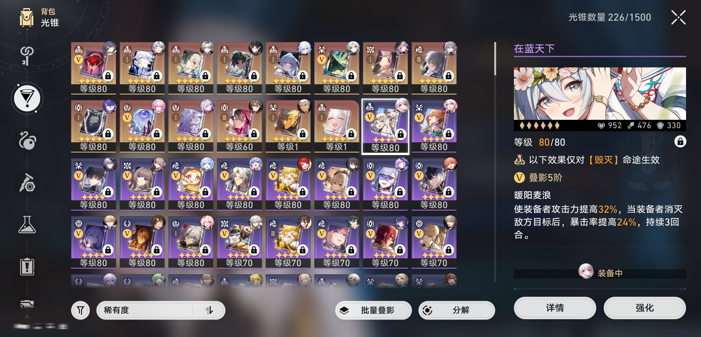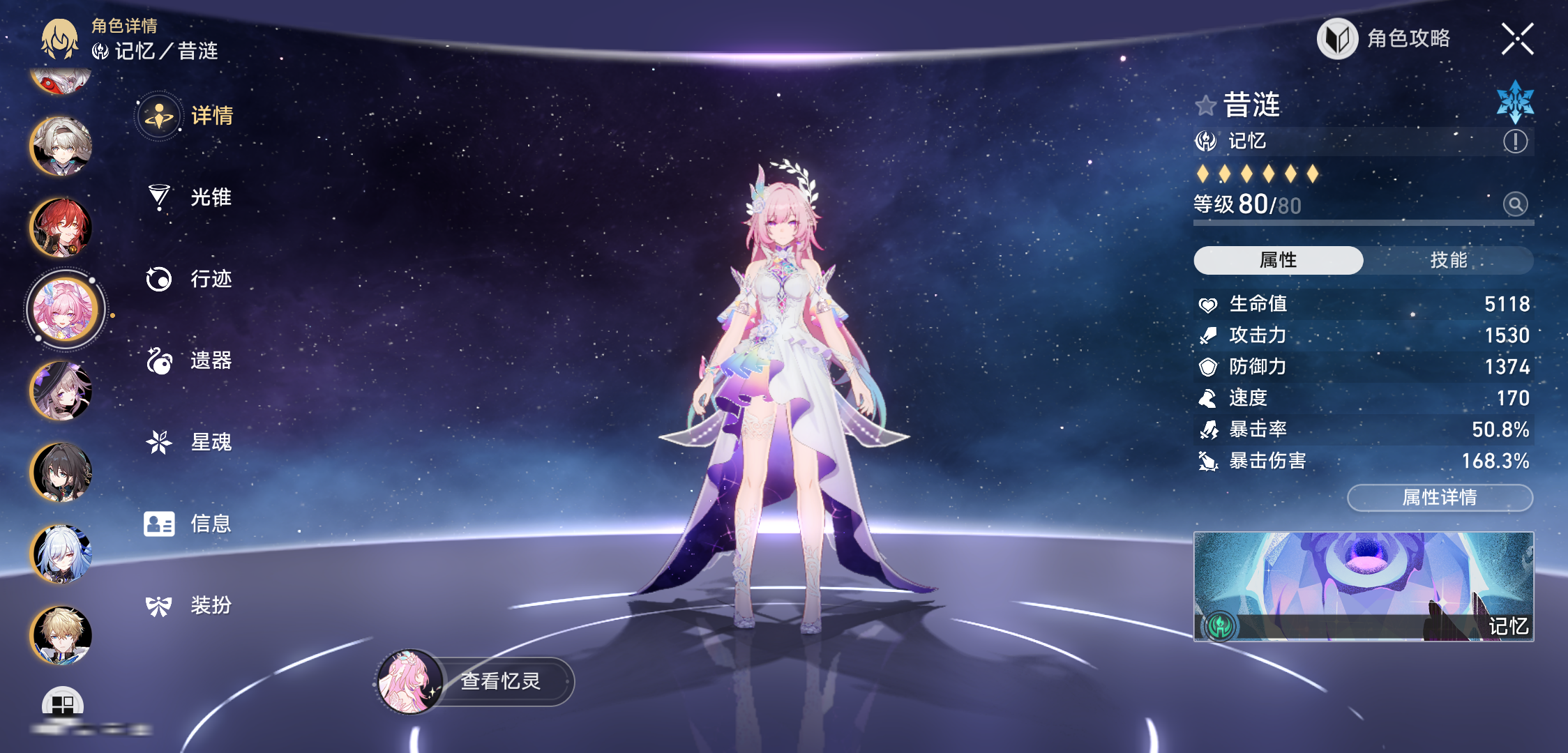 【崩坏·星穹铁道】【LYXQ6817】冒险等级:68,女主,五星数量:17,绑定情况:邮箱__五星角色:白厄 * 6命|Saber|阮·梅|刻律德菈|布洛妮娅|符玄|Archer|丹恒·腾荒|彦卿|杰帕德|真理医生__五星光锥:黎明恰如此燃烧 * 5精|记忆永不落幕 * 5精|时节不居 * 2精|无可取代的东西|理想燃烧的地狱|银河铁道之夜,【邮箱未实名】[13684071]m23836,70级,女主,36黄,梦华34,星琼90,星轨专票0,星轨通票3,16个五星角色:3命白厄,1命布洛妮娅,1命阮梅,1命白露,1命克拉拉,1命杰帕德,星期日,丹恒腾荒,刻律德菈,Archer,大黑塔,遐蝶,真理医生,姬子,彦卿,瓦尔特,8个五星光锥:精5不息的演算,精1黎明恰如此燃烧,精1星海巡航,精1理想燃烧的地狱,精1回到大地的飞行,精1记一位星神的陨落,精1记忆永不落幕,精1时节不居