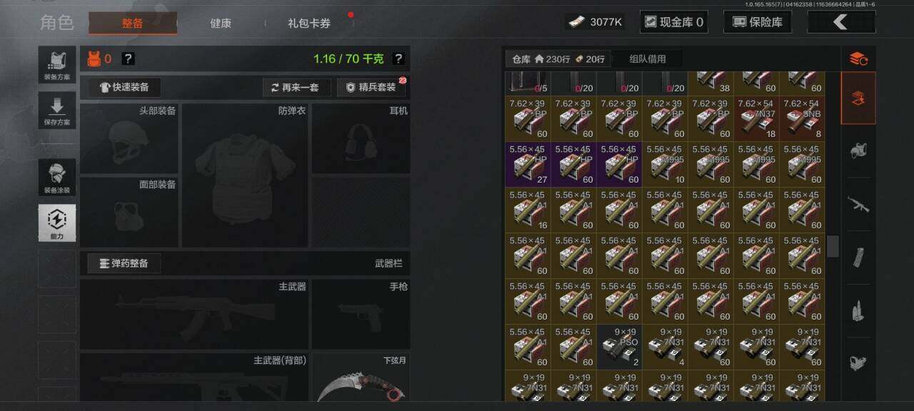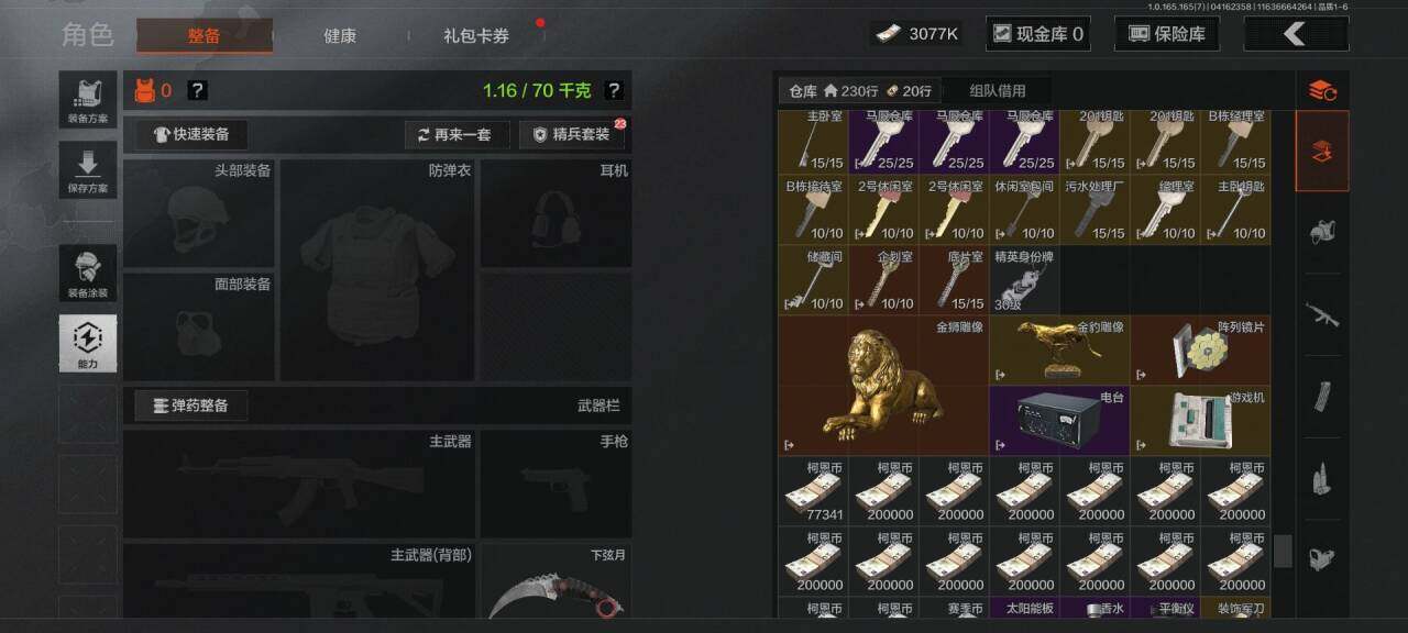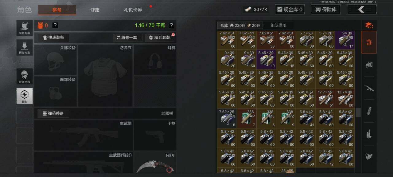 【AQD346】段位:新锐/仓库价值(百万):12/下弦月/收割者/地脉深处FAL/镀火熔金H416/告丧夜曲AR57/旧王圣谕QBZ191/利齿风暴MPX【AQZG2152】等级:30/段位:专家/仓库价值(百万):189.4/柯恩币:100000000/急袭弯刀/下弦月/寒牙手刺/裁决手杖剑/幽燕钛玄/苍穹利爪/盘牙彻甲短刃/深潜行者II/黑卡蒂/冥河/蝮蛇/白蔷薇斯黛拉/危崖魅影作战服/苍白隐者伪装服/长缨风擎AX50/棱光裂变QBU191/冰河碎影MK14/千炼铁阵MK14/黑金弹头P90/利齿风暴MPX/浮鳞影青QBZ192/旧王圣谕QBZ191/玉擎天工AN94/林中人FAL/竞技FAL/天工炉火A545/冲刺极限QBZ192