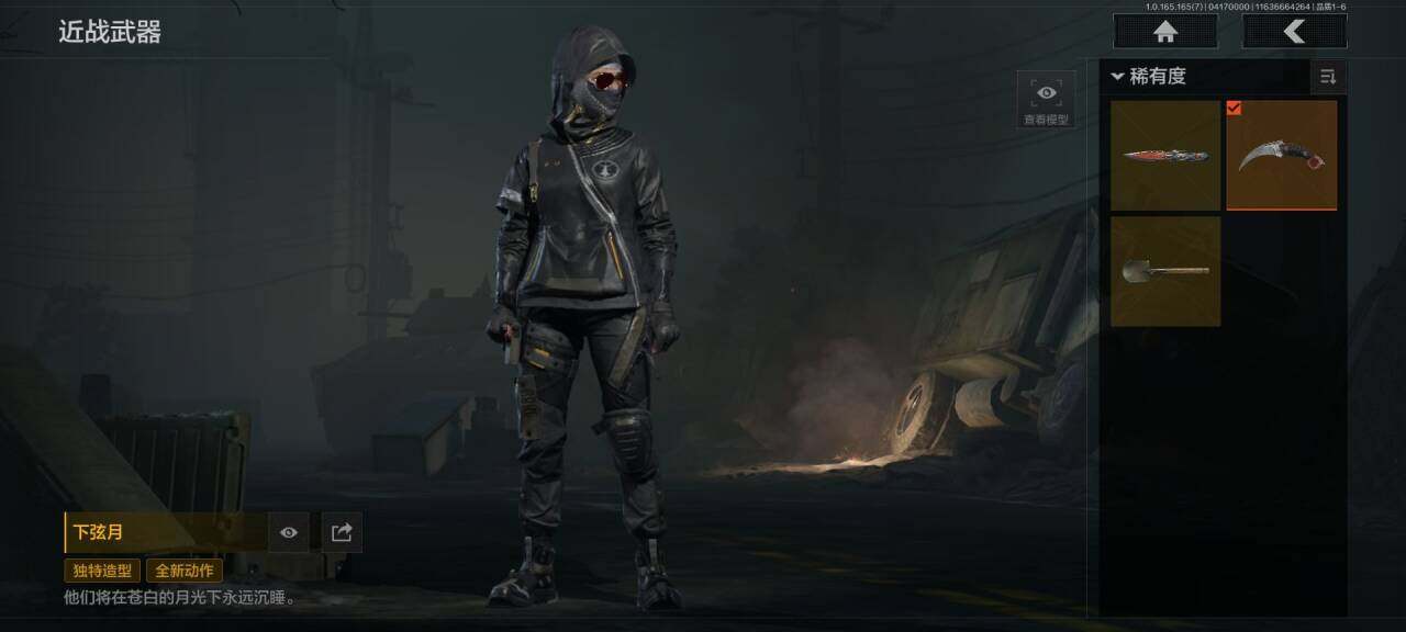 商品描述:【AQQH1239】段位:新锐/仓库价值(百万):22/下弦月/工兵铲/空腔战术