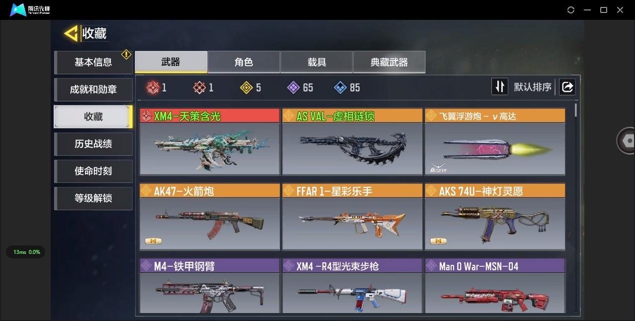 [14265730]307级 3神话 1典藏 10传说 135史诗 段位铂金 可二次 可修改实名 【典藏枪械】:AK47-炎舞慕雪·典藏 【神话枪械】:SMG5-潮海汐月,DLQ33-红莲天诛,EM2-苍穹 【传说枪械】:M4-皇家黑魂,Type25-赤焰复仇,RPD-一路悠扬,DLQ33-狂热祈愿,Kar98k-雷鸣光束,Fennec-终焉之光,唐刀-白月魁,Holger26-冥界提灯,Arctic50-青眸白虎[14086281]81级 1神话 5传说 65史诗 段位铂金 可二次 可修改实名 【神话枪械】:XM4-天策含光【传说枪械】:AK47-火箭炮,FFAR 1-星彩乐手