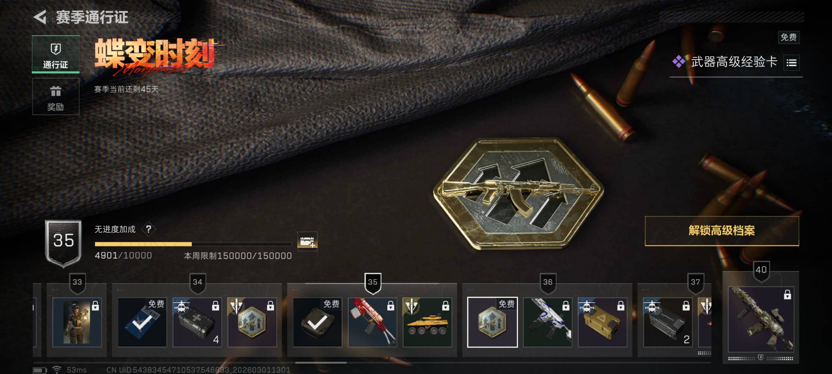 44m总资产-40490k哈伏币-36烽火等级-青铜-1战场等级-无军衔